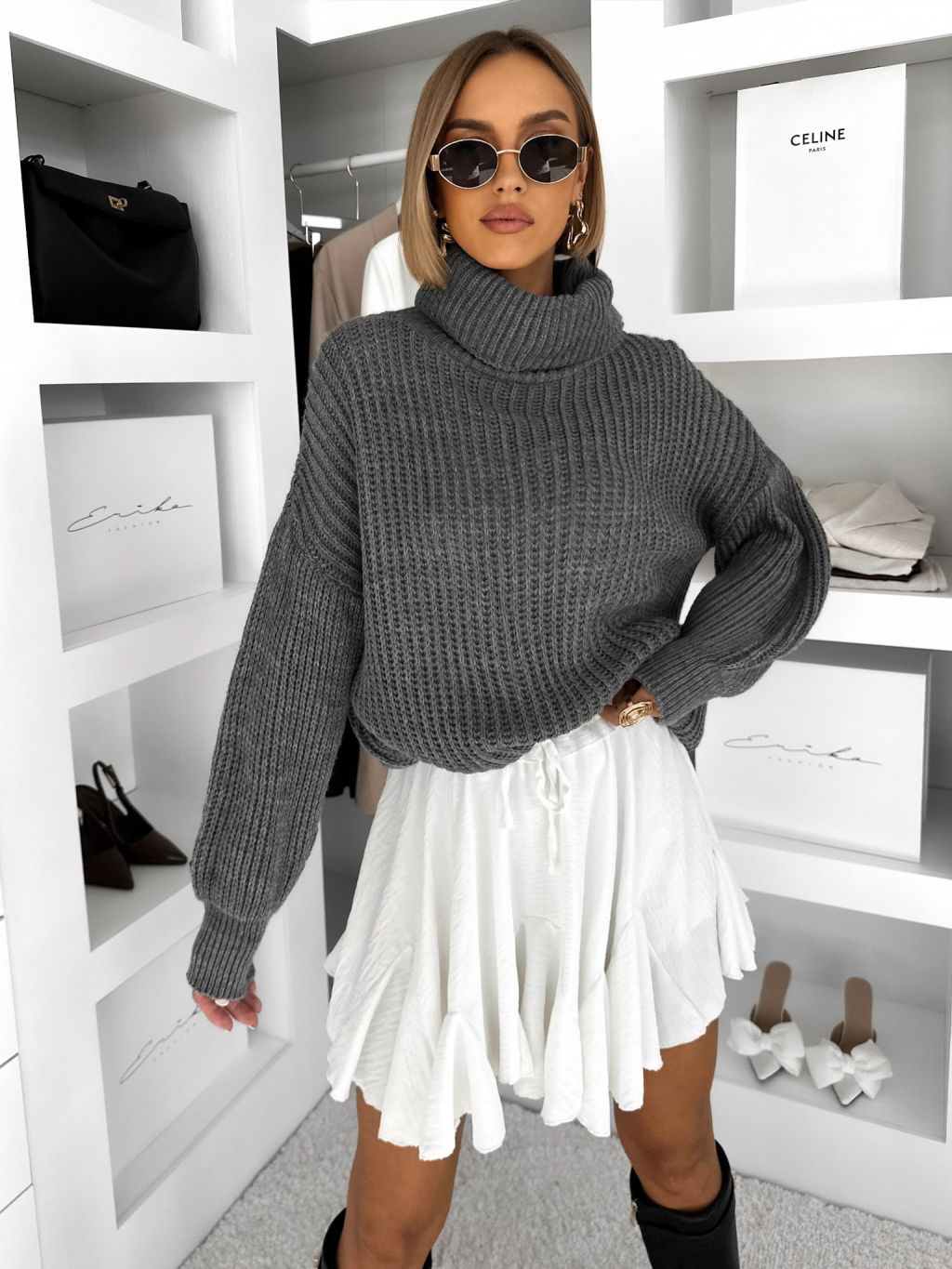 Šedý dlhý sveter CONSTANE