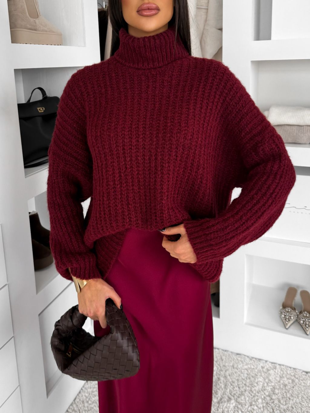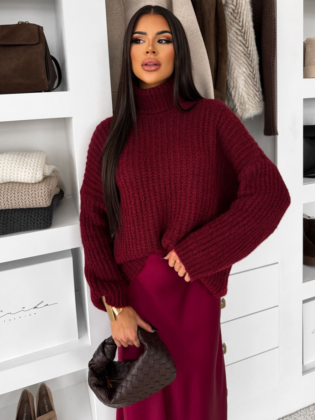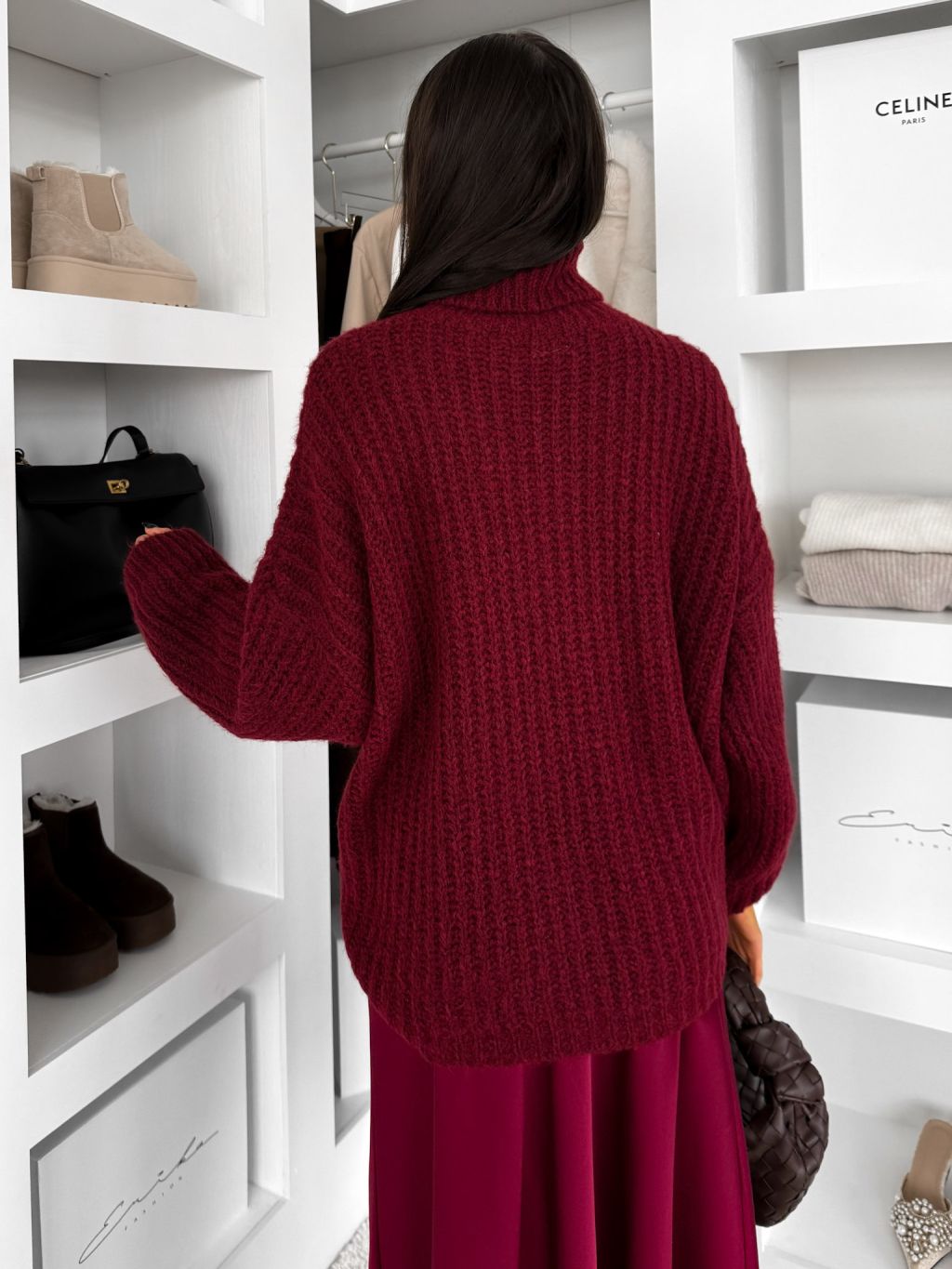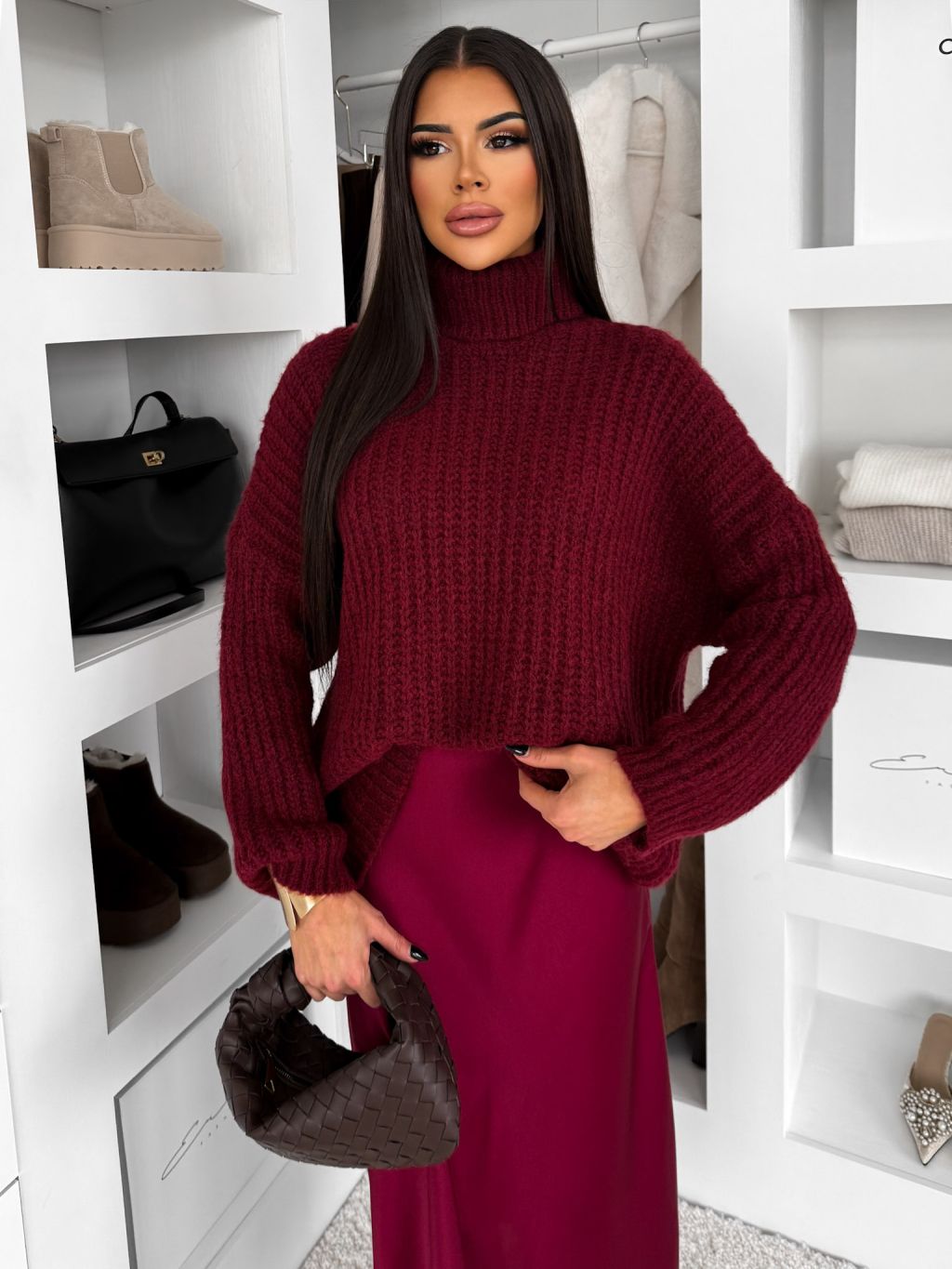 Vínový oversized sveter BELVURA s vlnou