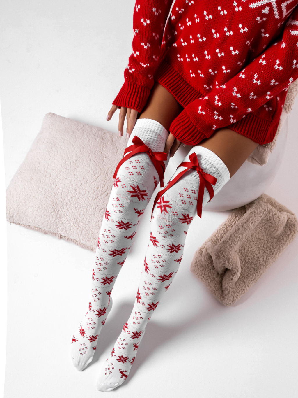 Bieločervené vzorované nadkolienky SLUMBER s mašľou