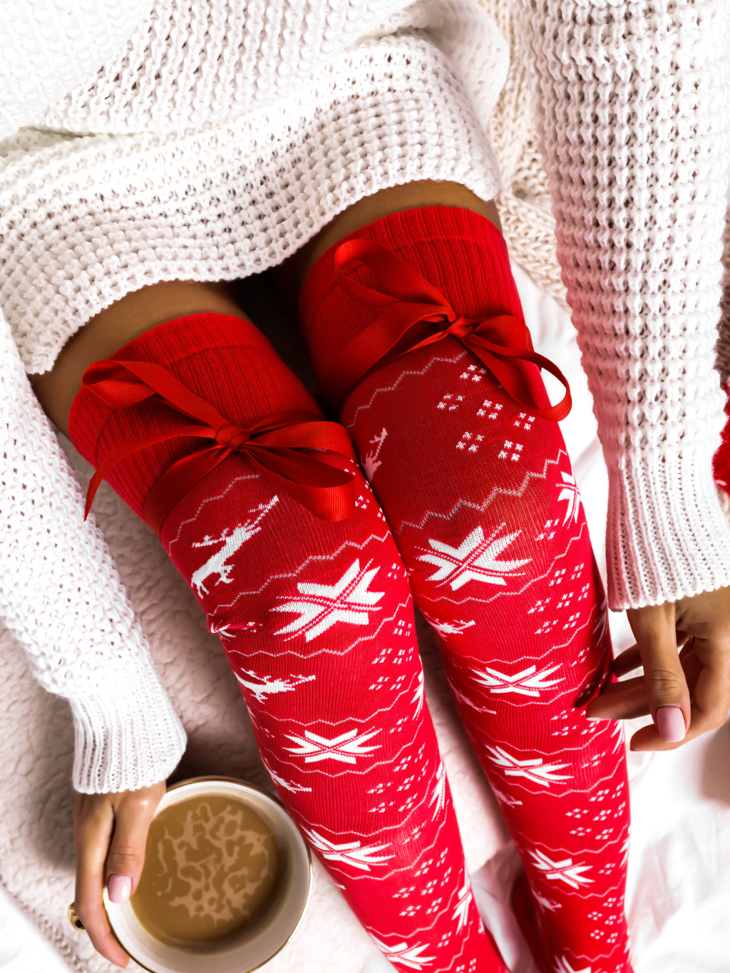 Červené vzorované nadkolienky SLUMBER s mašľou