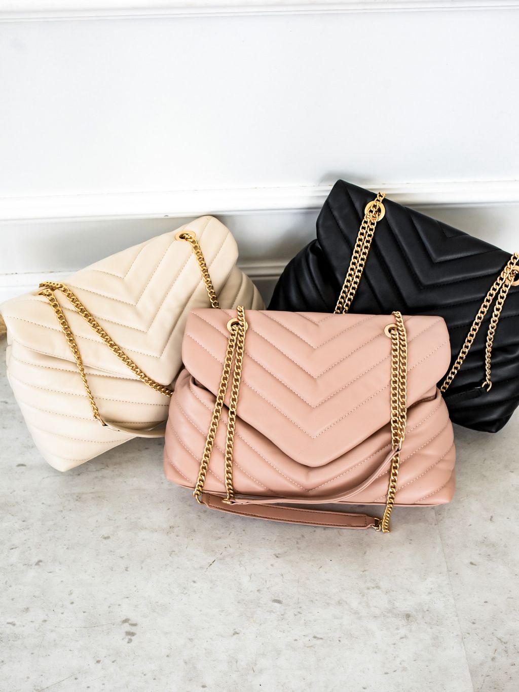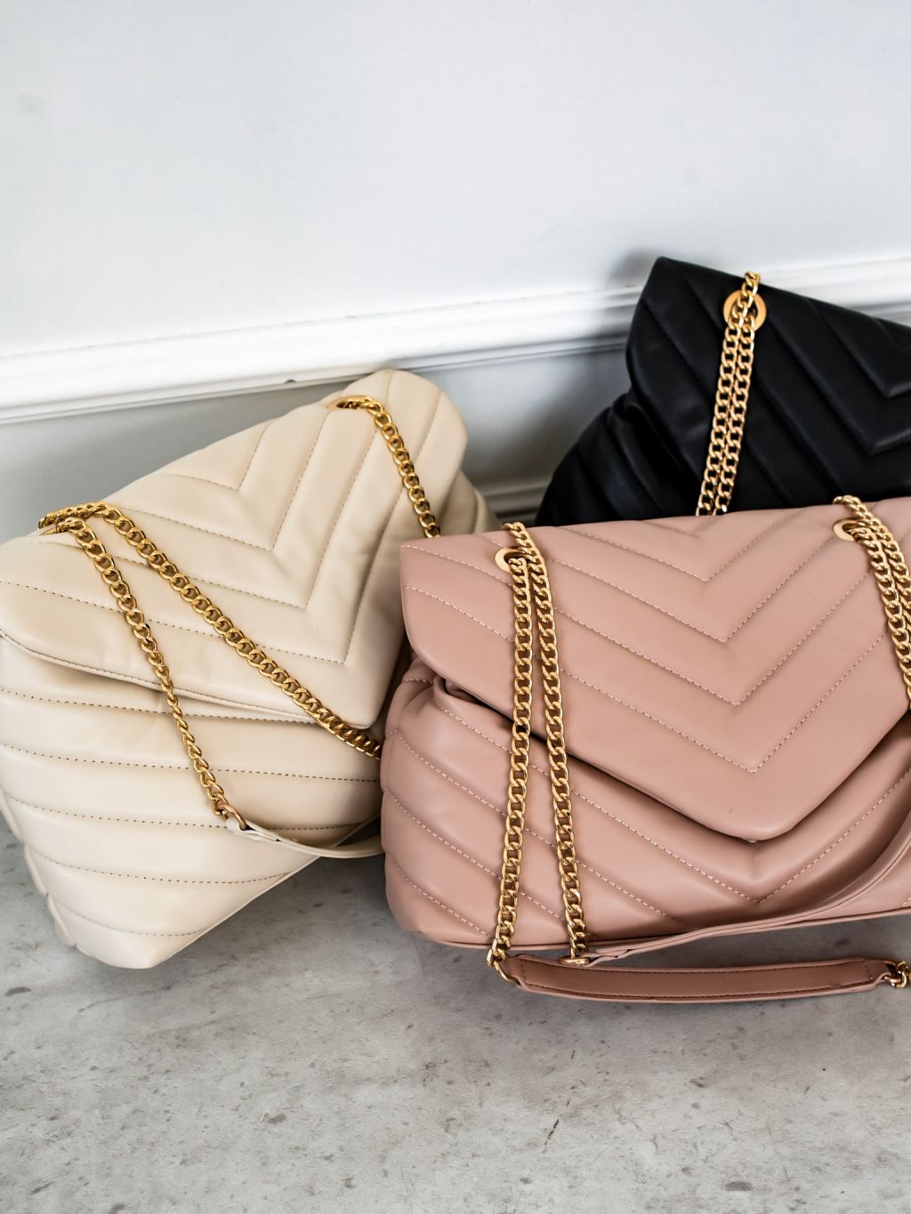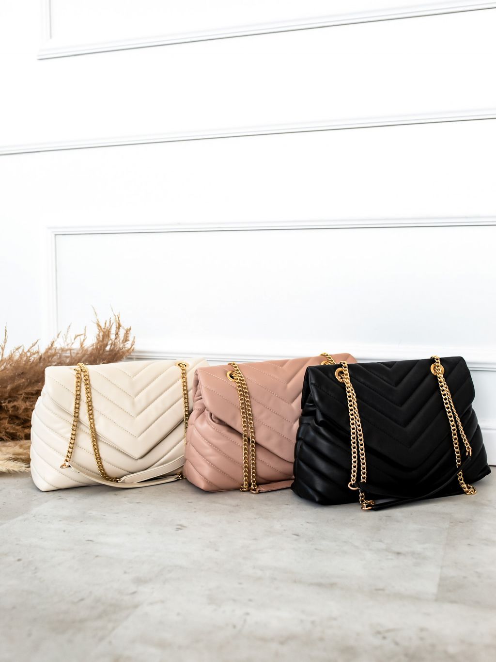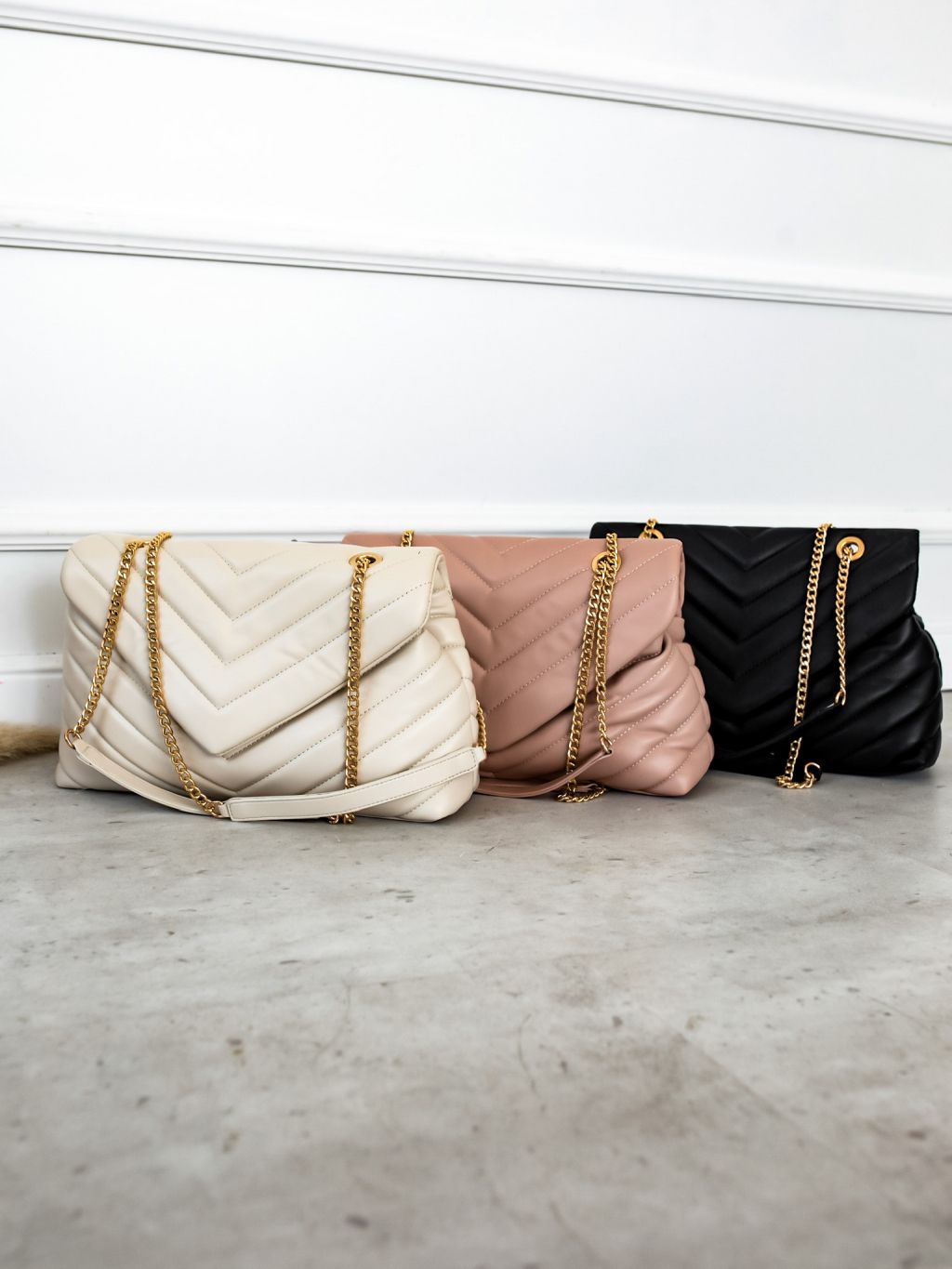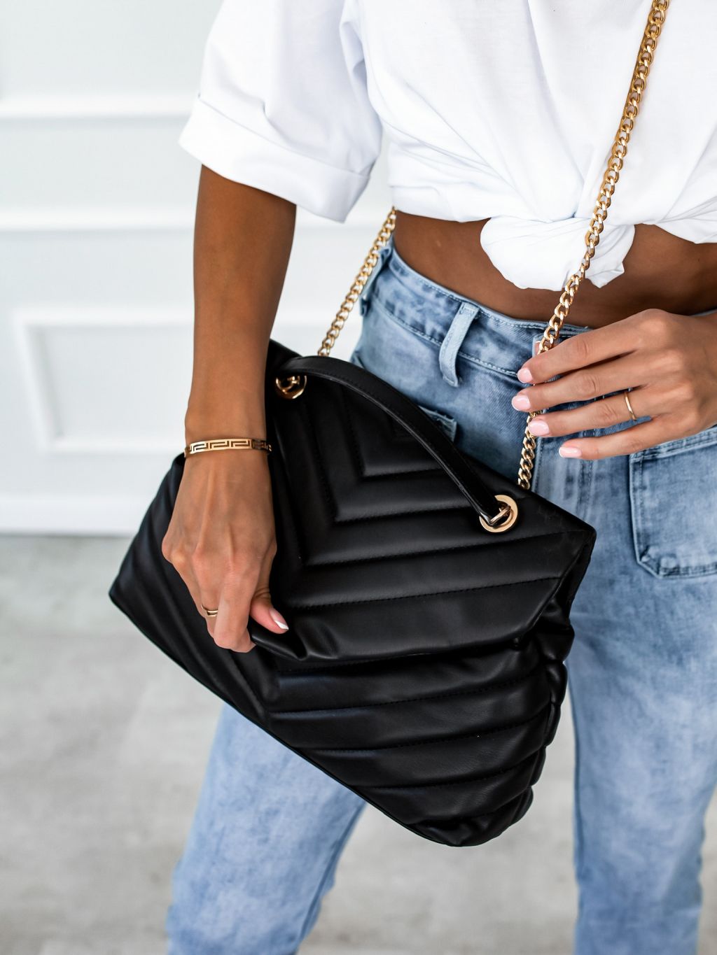Čierna prešívaná kabelka STORMI so zlatým retiazkou
