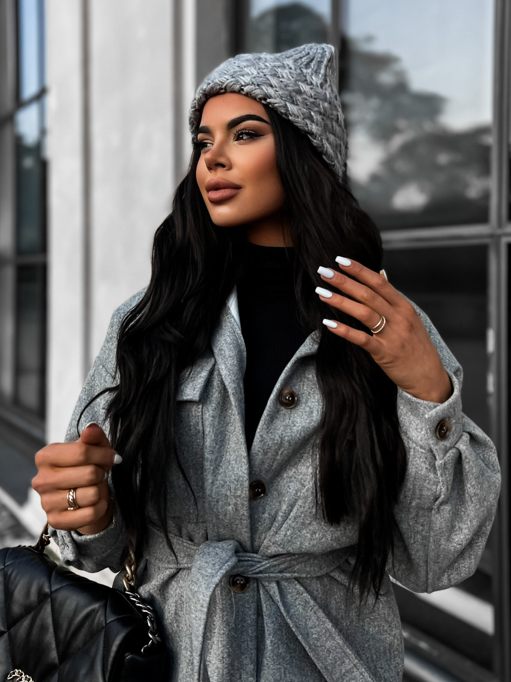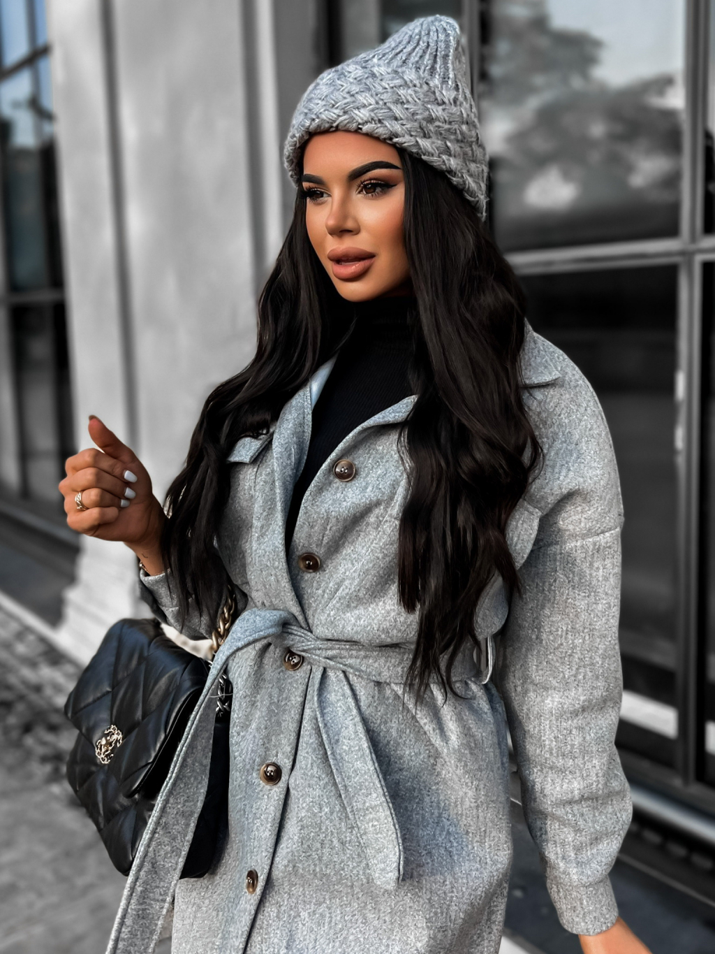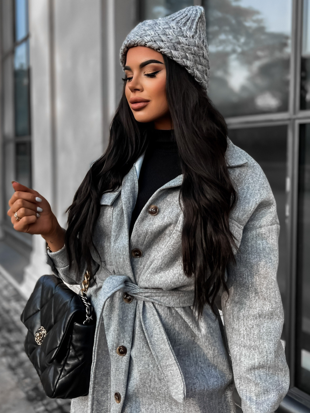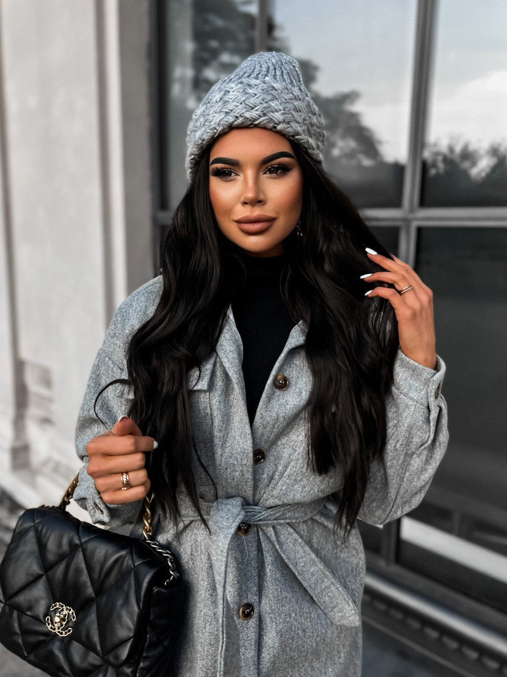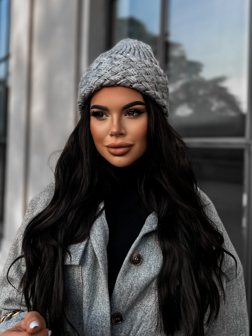 Sivá zimná čiapka BASAL so vzormi