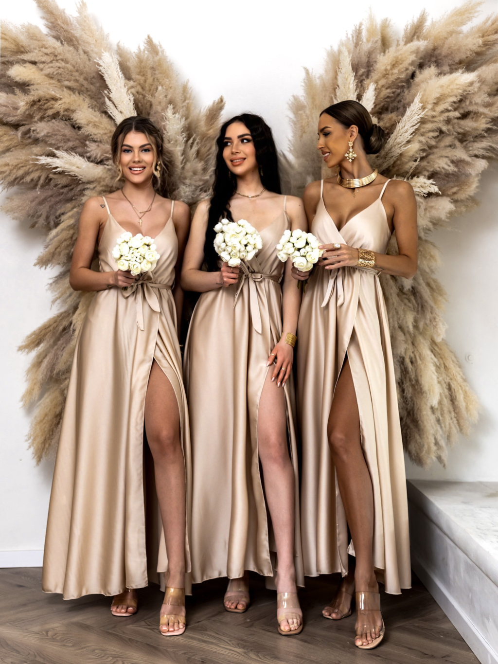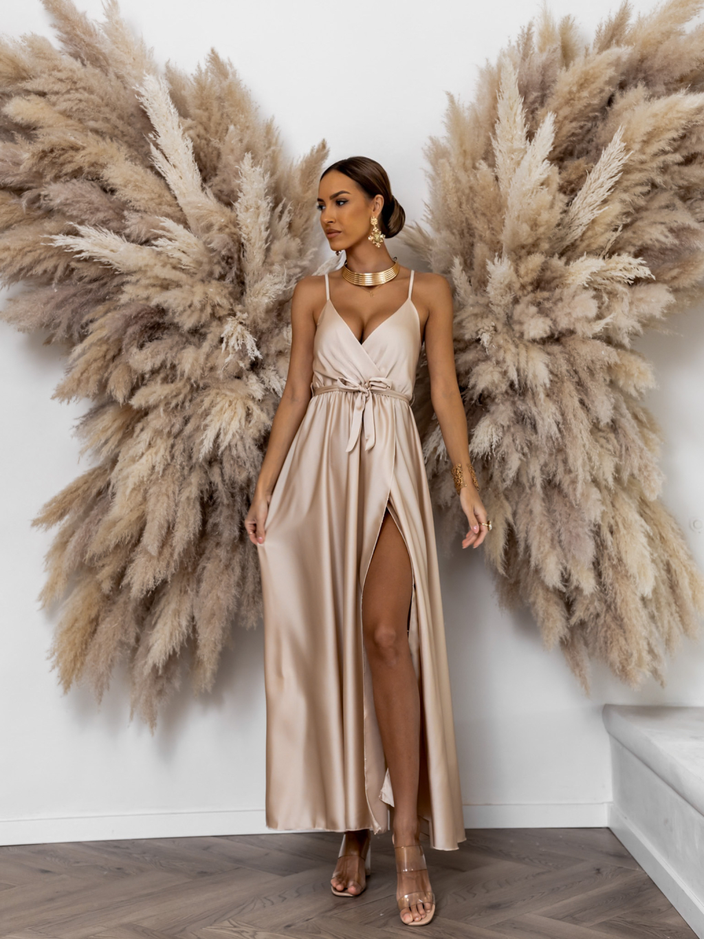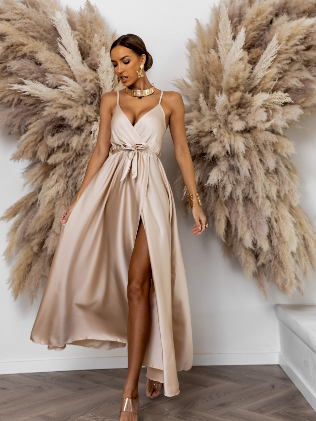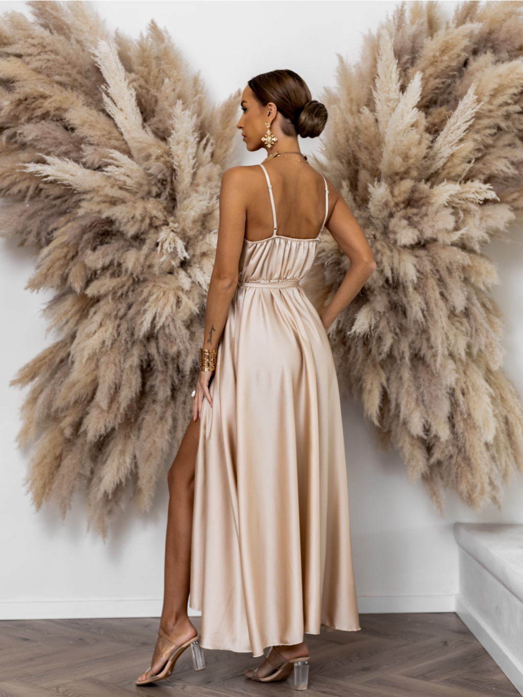 Béžové dlhé šaty FAIRYTALE s rázporkom
