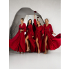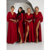Bordó saténové šaty WOMAN pre družičky s dlhým rukávom