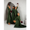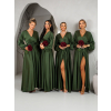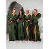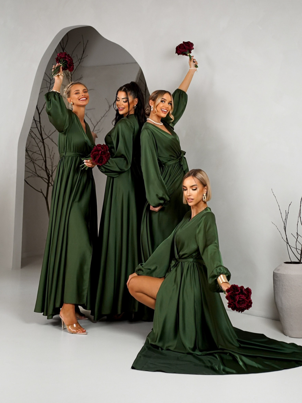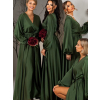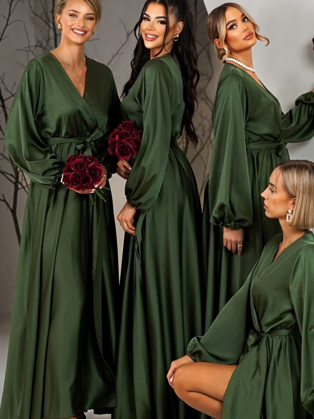 Kaki saténové šaty WOMAN pre družičky s dlhým rukávom