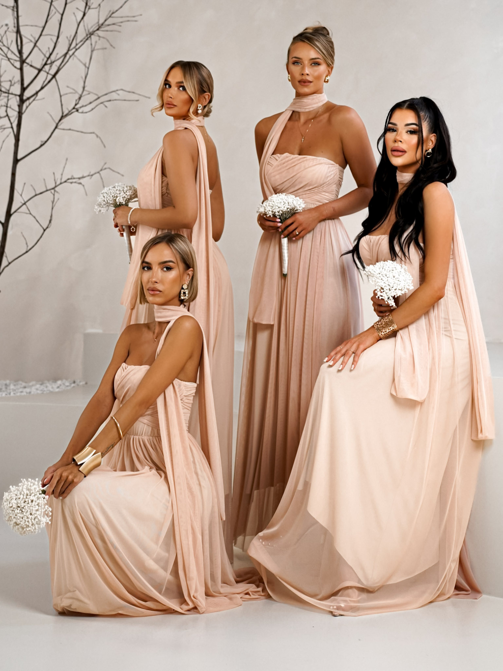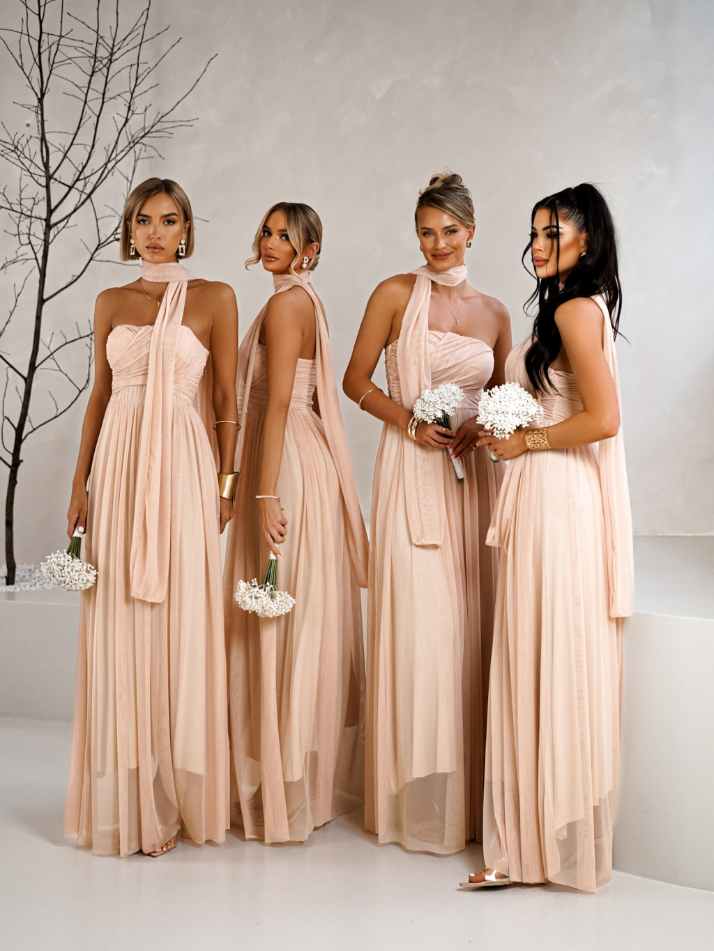 Púdrové tylové šaty BOLEMIR pre družičky s vlečkou