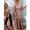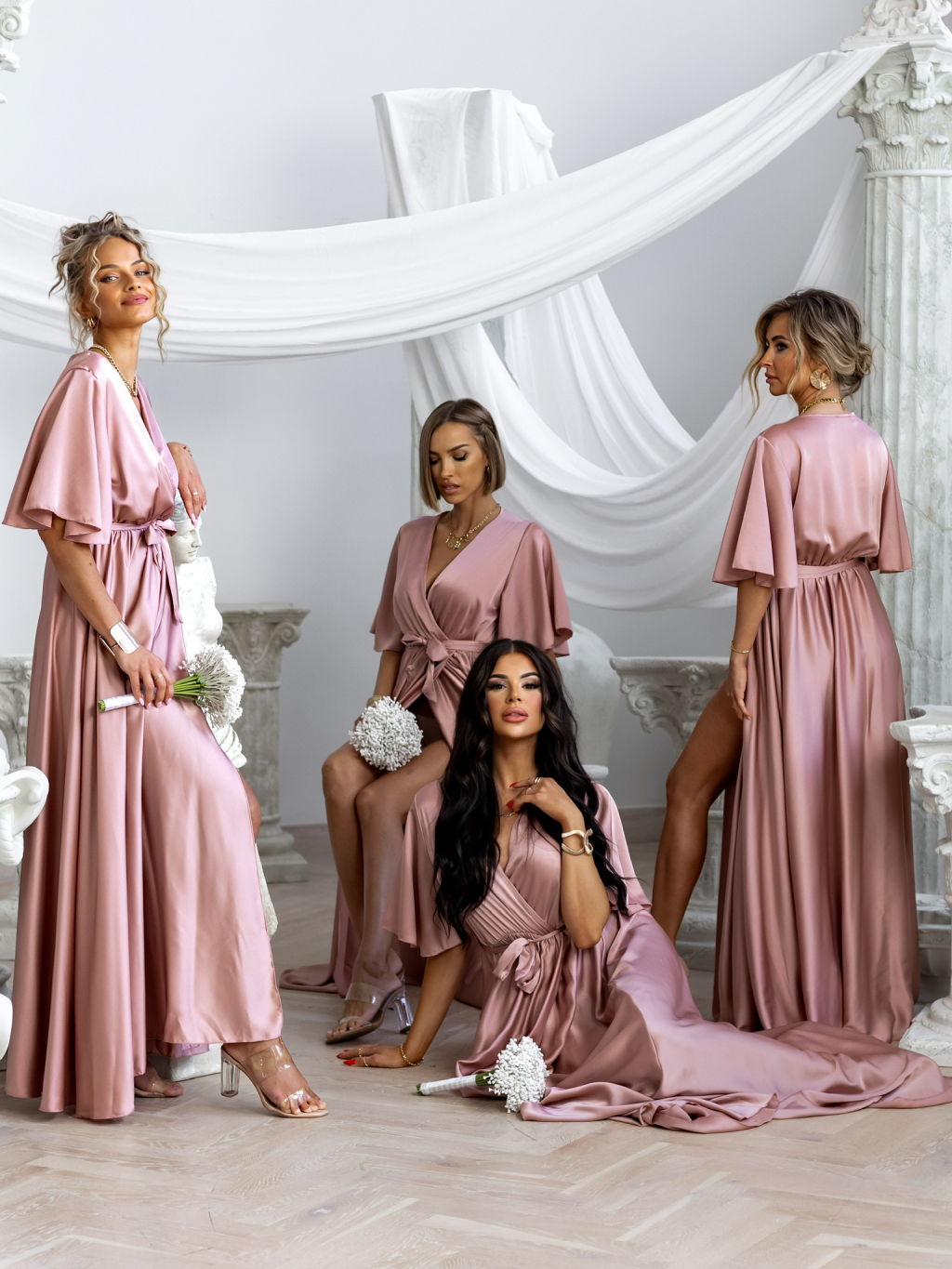 Staroružové dlhé saténové šaty GO HOME pre družičky s krátkym rukávom