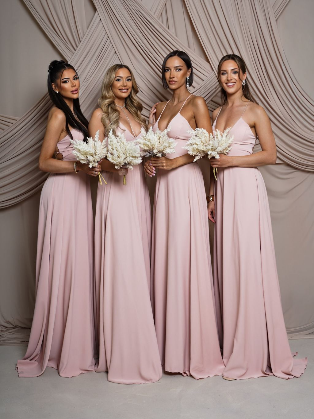 Staroružové dlhé splývavé šaty DAMIANO pre družičky