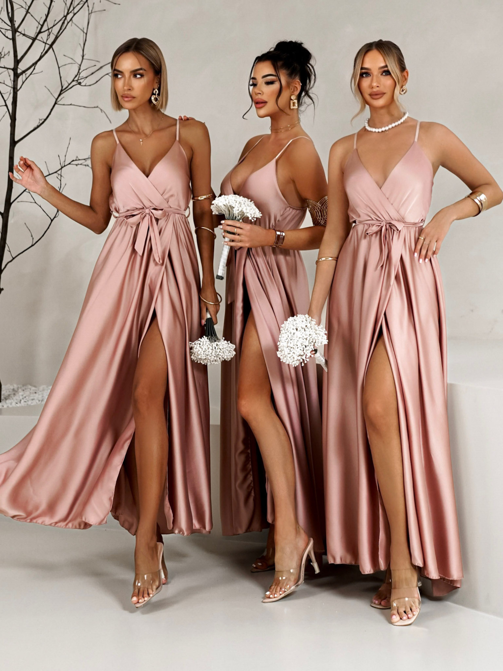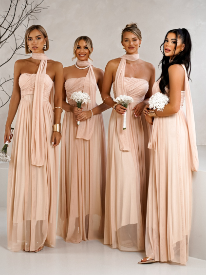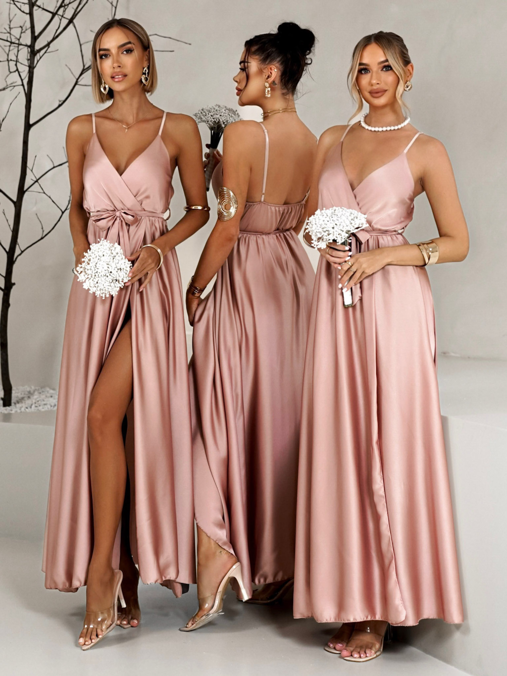 Staroružové saténové dlhé šaty FAIRYTALE pre družičky