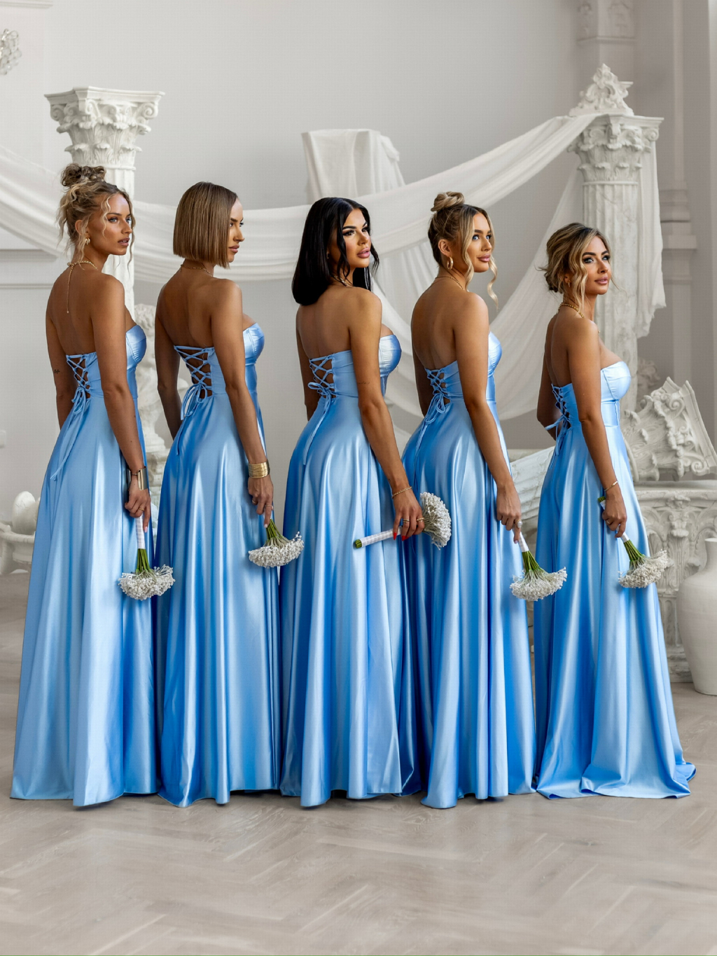 Svetlomodré saténové dlhé šaty GYBRAL s korzetom