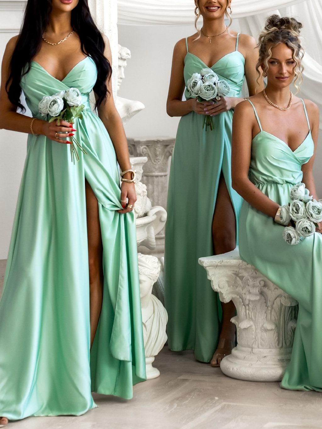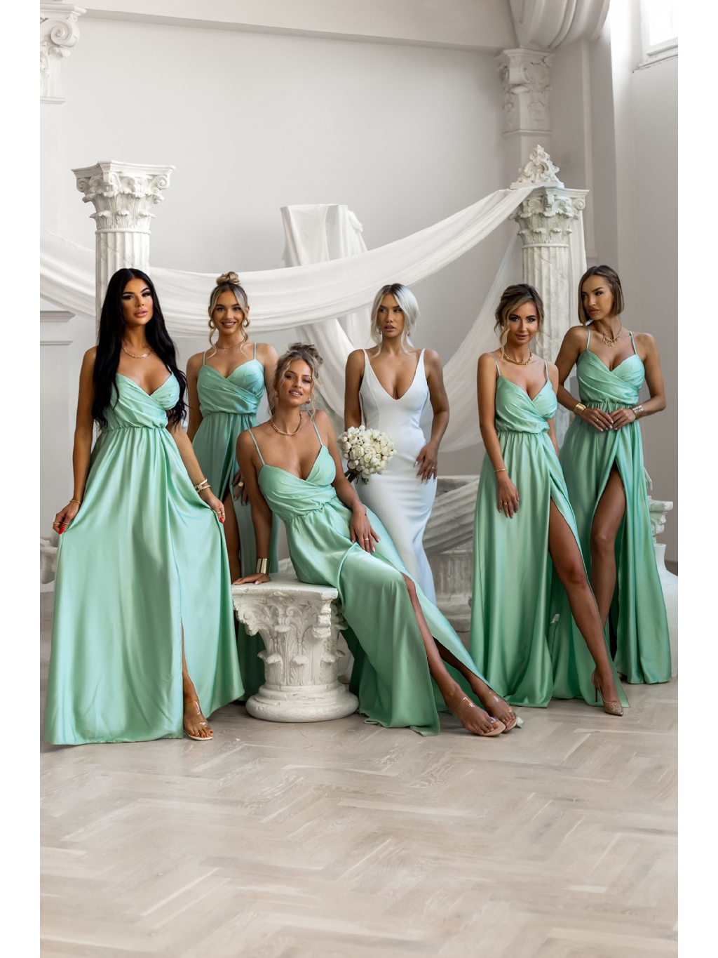 Svetlozelené dlhé saténové šaty PATILLA pre družičky