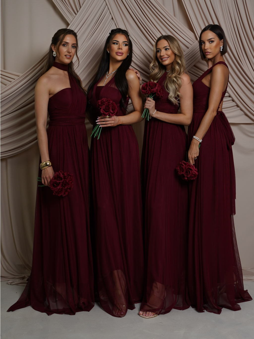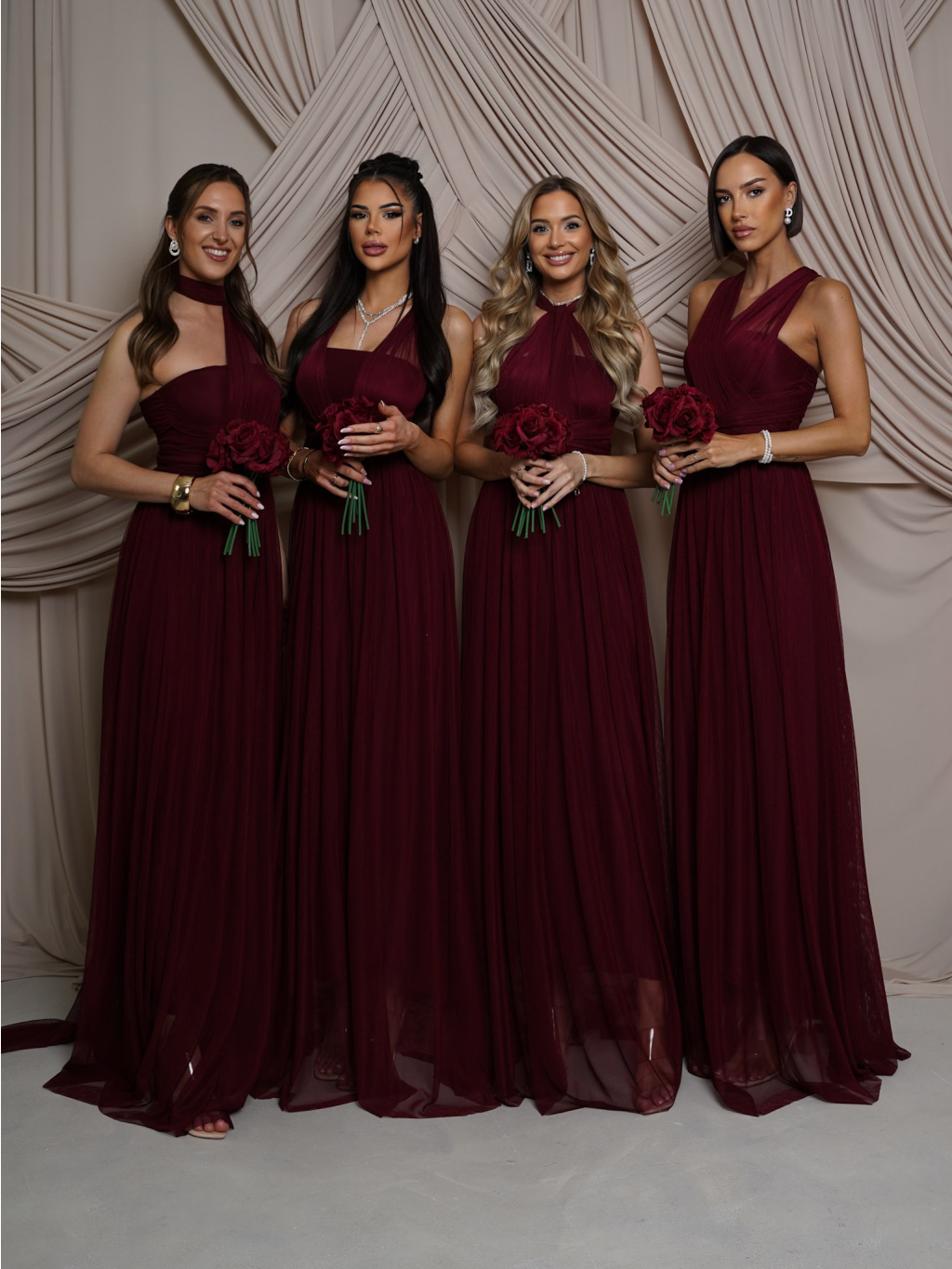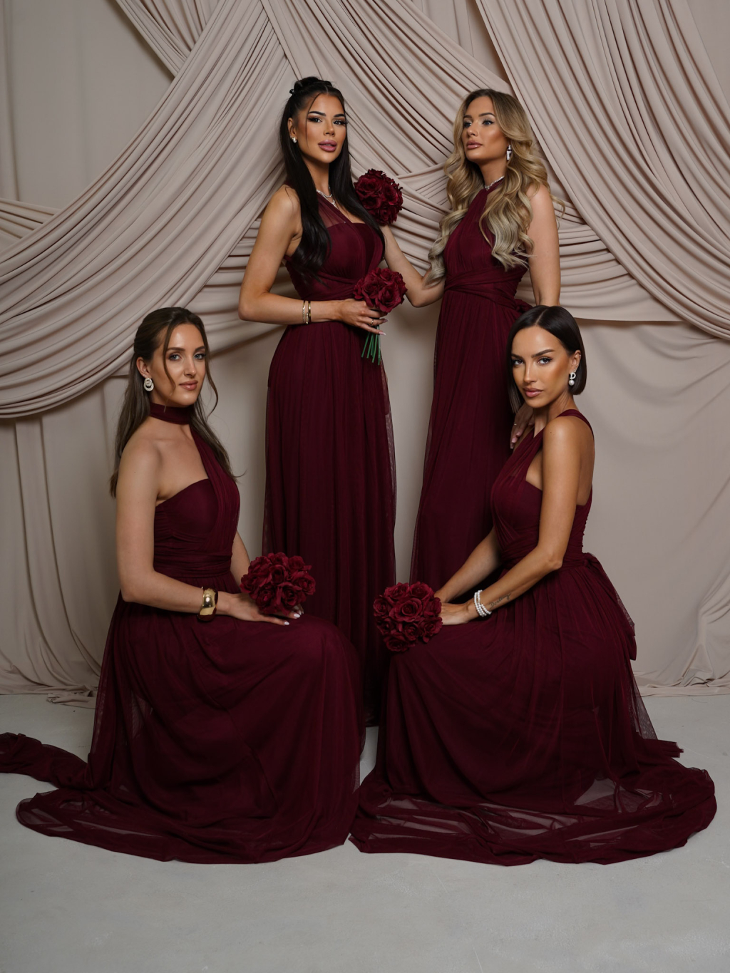 Vínové variabilné spoločenské tylové plesové šaty OBSIYA pre družičky