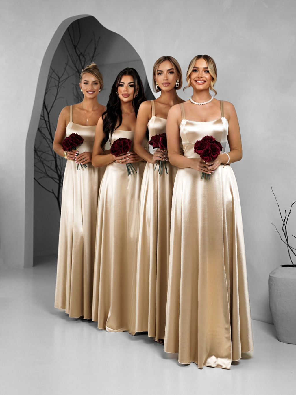 Zlaté dlhé saténové šaty HELSIN pre družičky