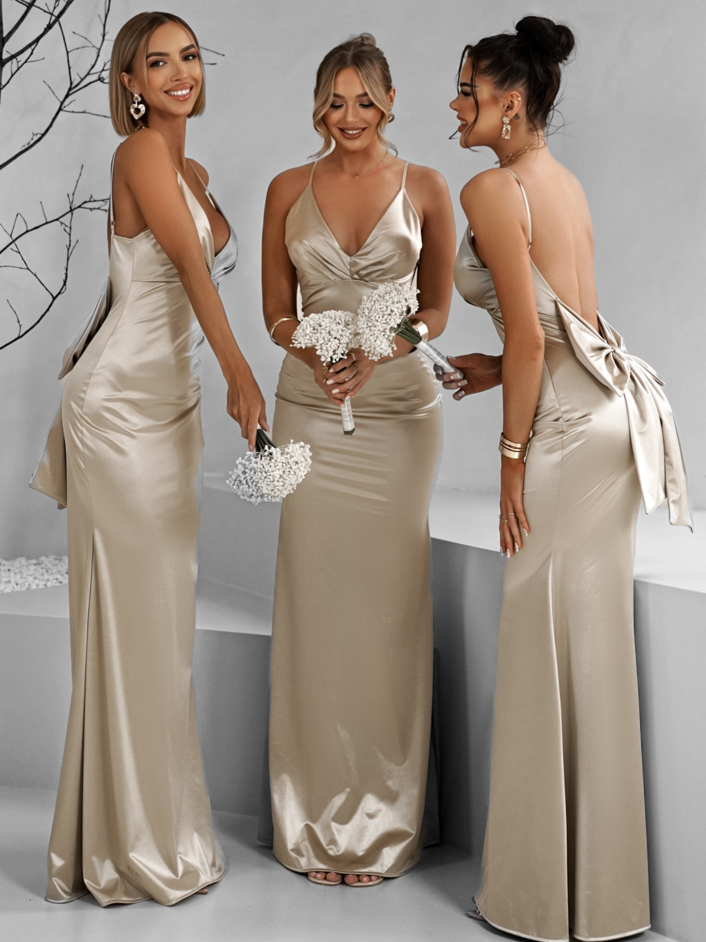 Zlaté dlhé šaty LIFOSA pre družičky na ramienka