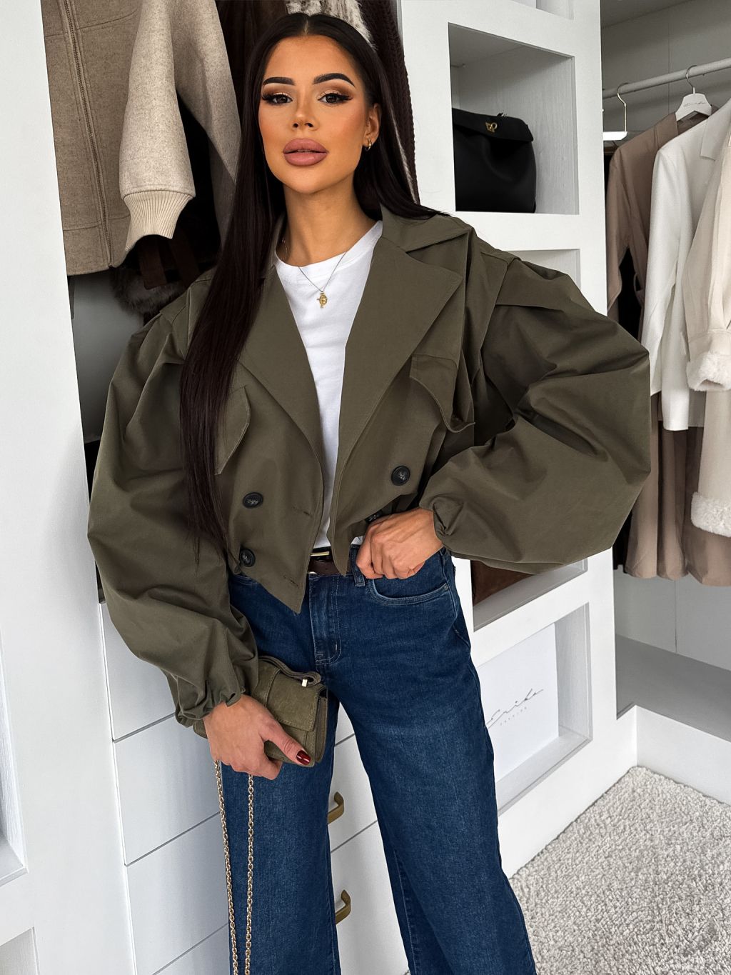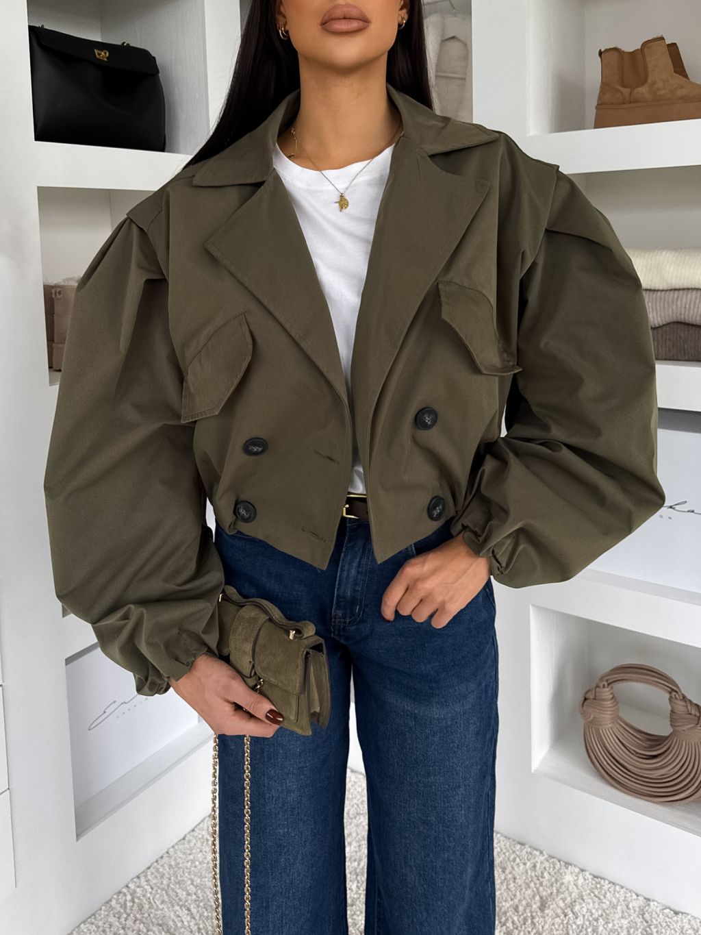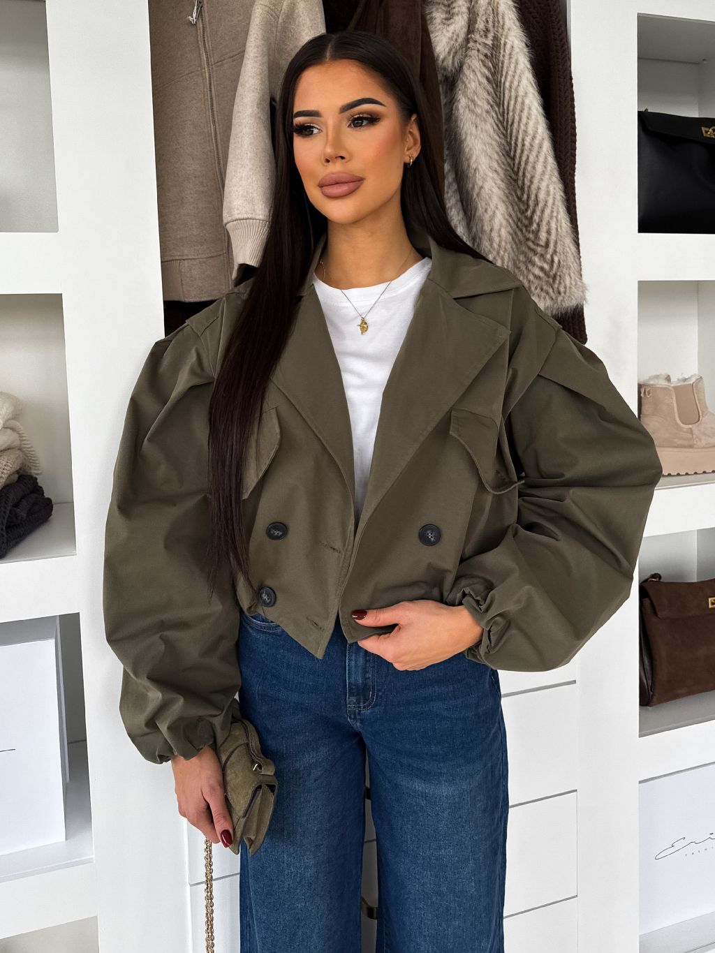 Kaki krátka balónová bunda RIVOYA