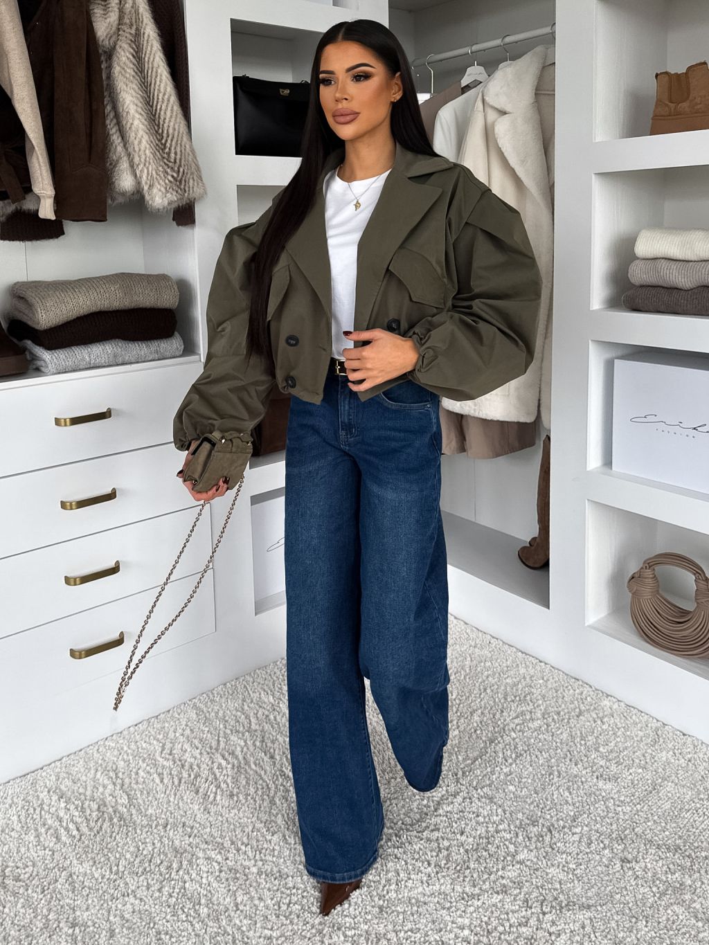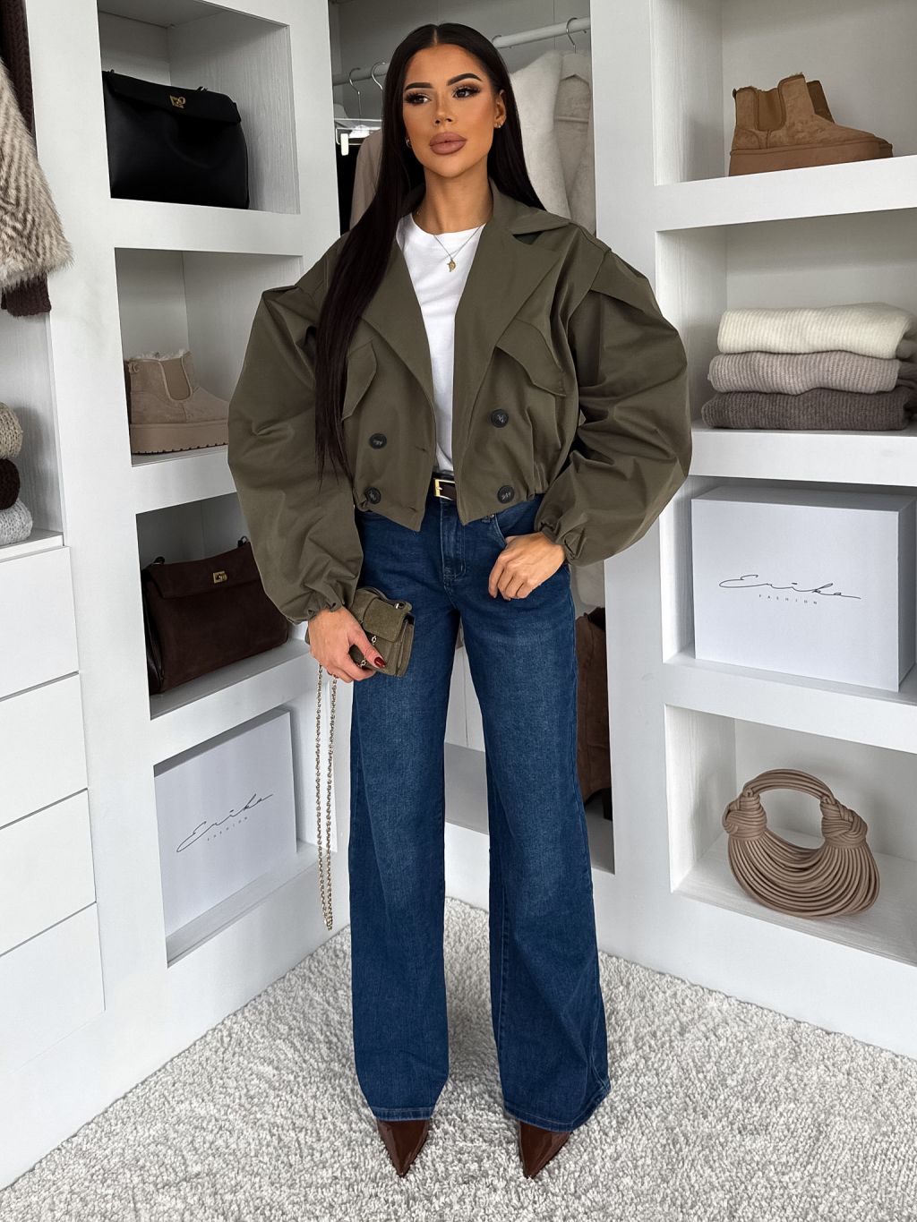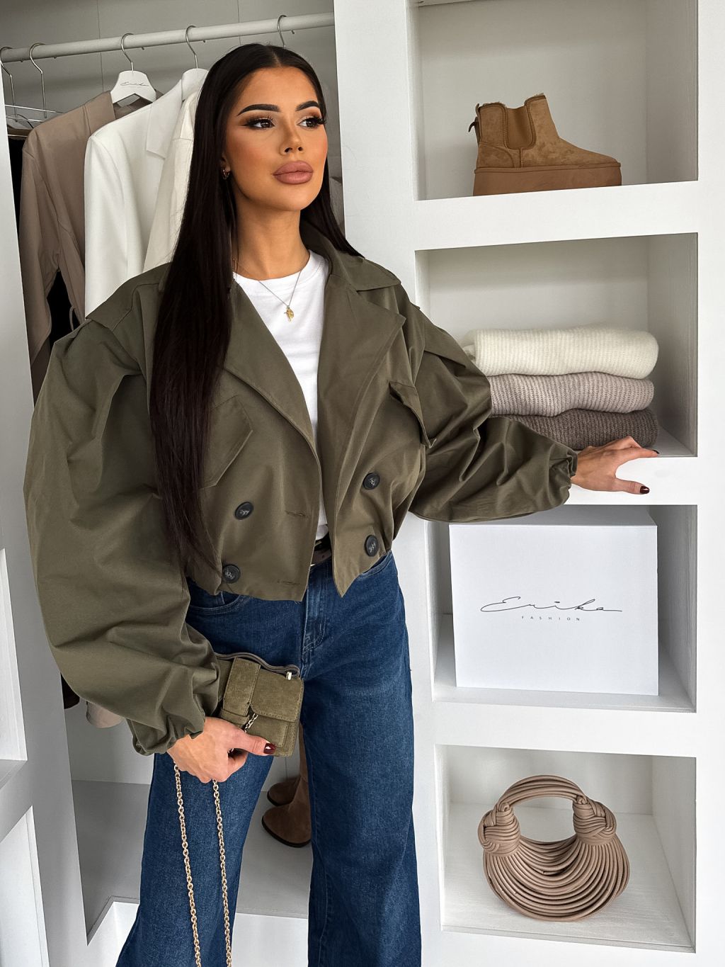 Kaki krátka balónová bunda RIVOYA