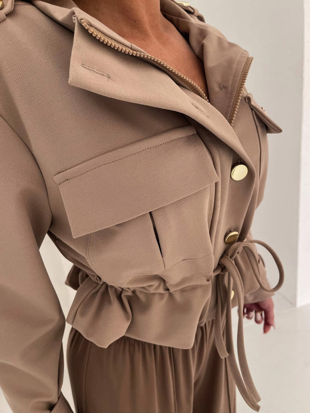 Svetlo hnedá luxusná krátka bundička AGOLOT