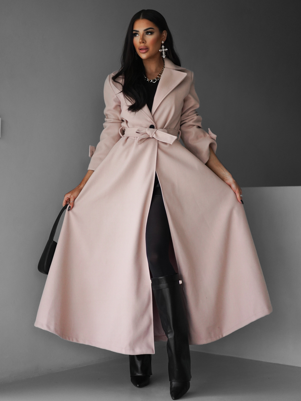 Béžový dlhý kabát YALENA