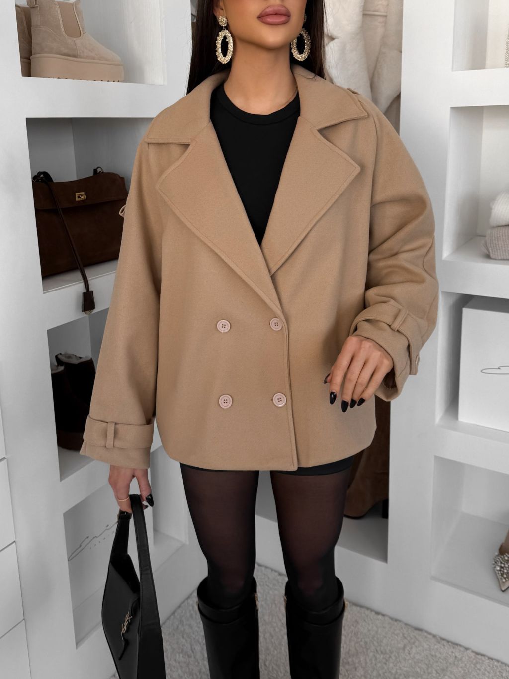 Béžový krátky elegantný kabát VELINNE s gombíkmi
