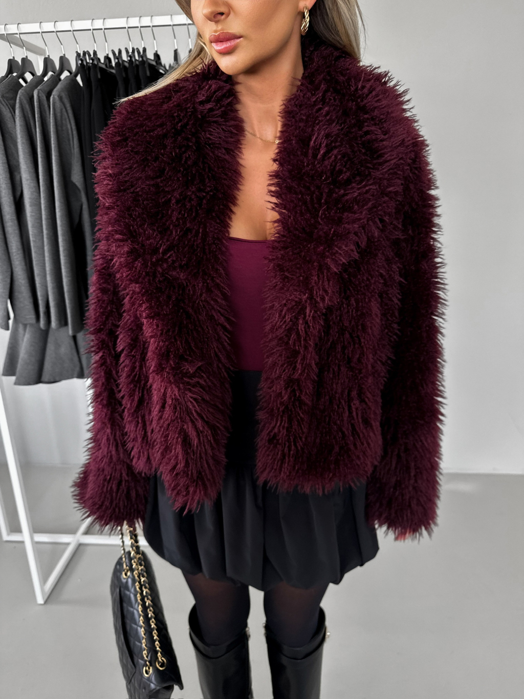 Bordó kožušinový faux fur krátky kabátik VOLORYN