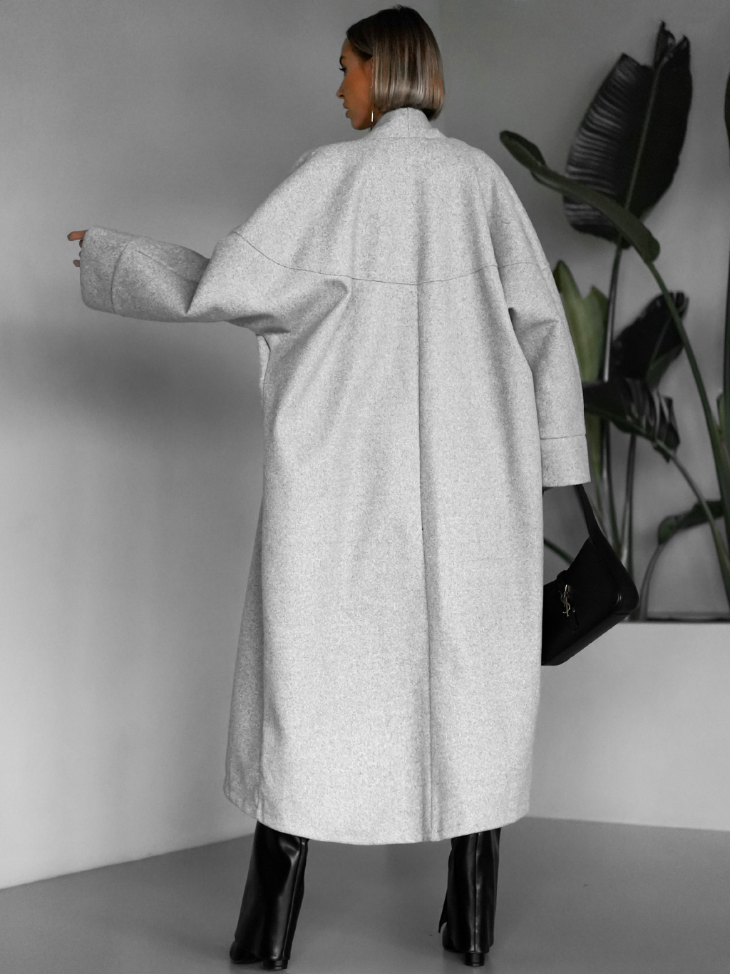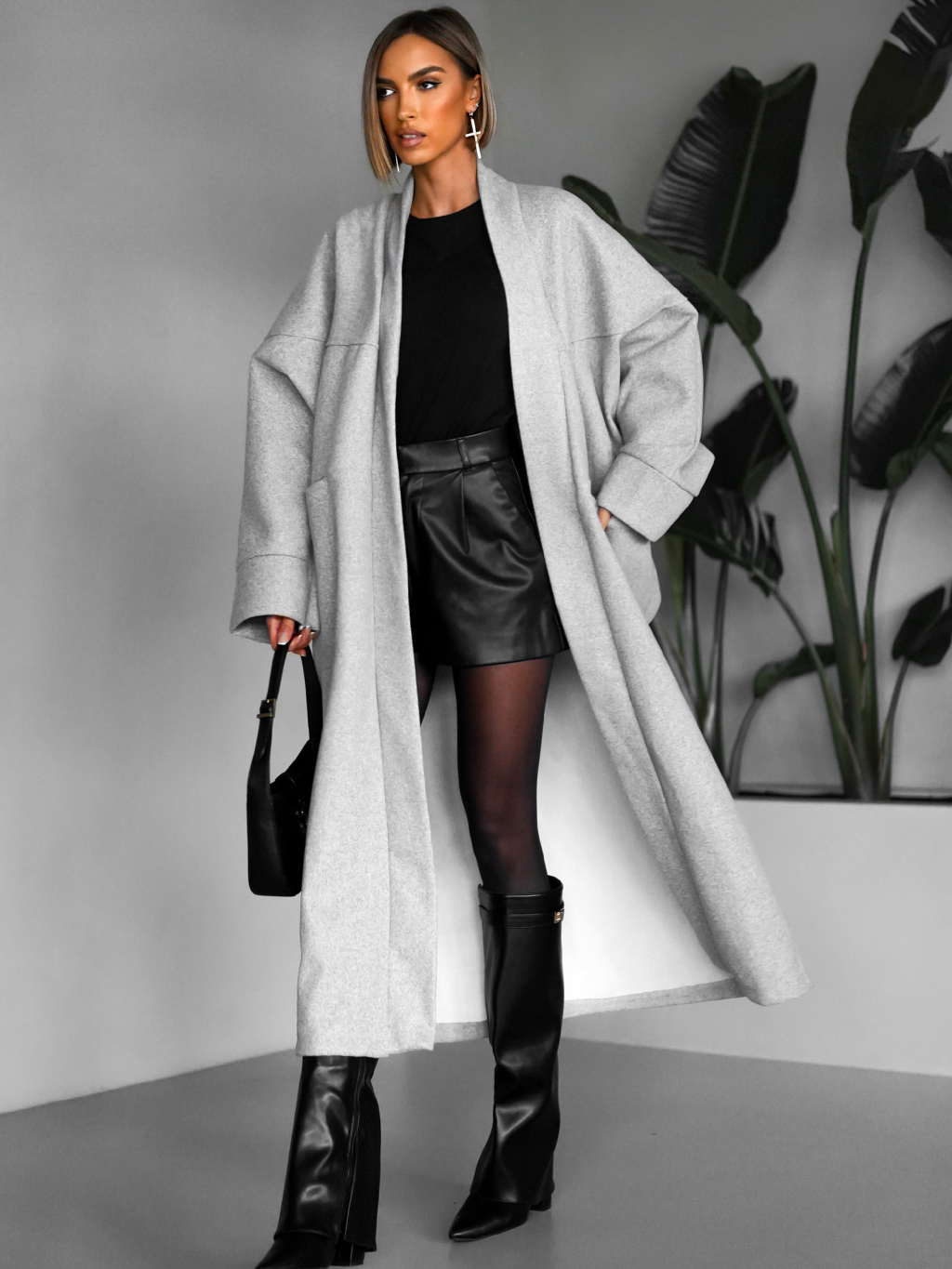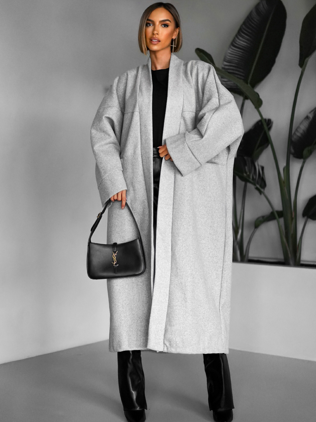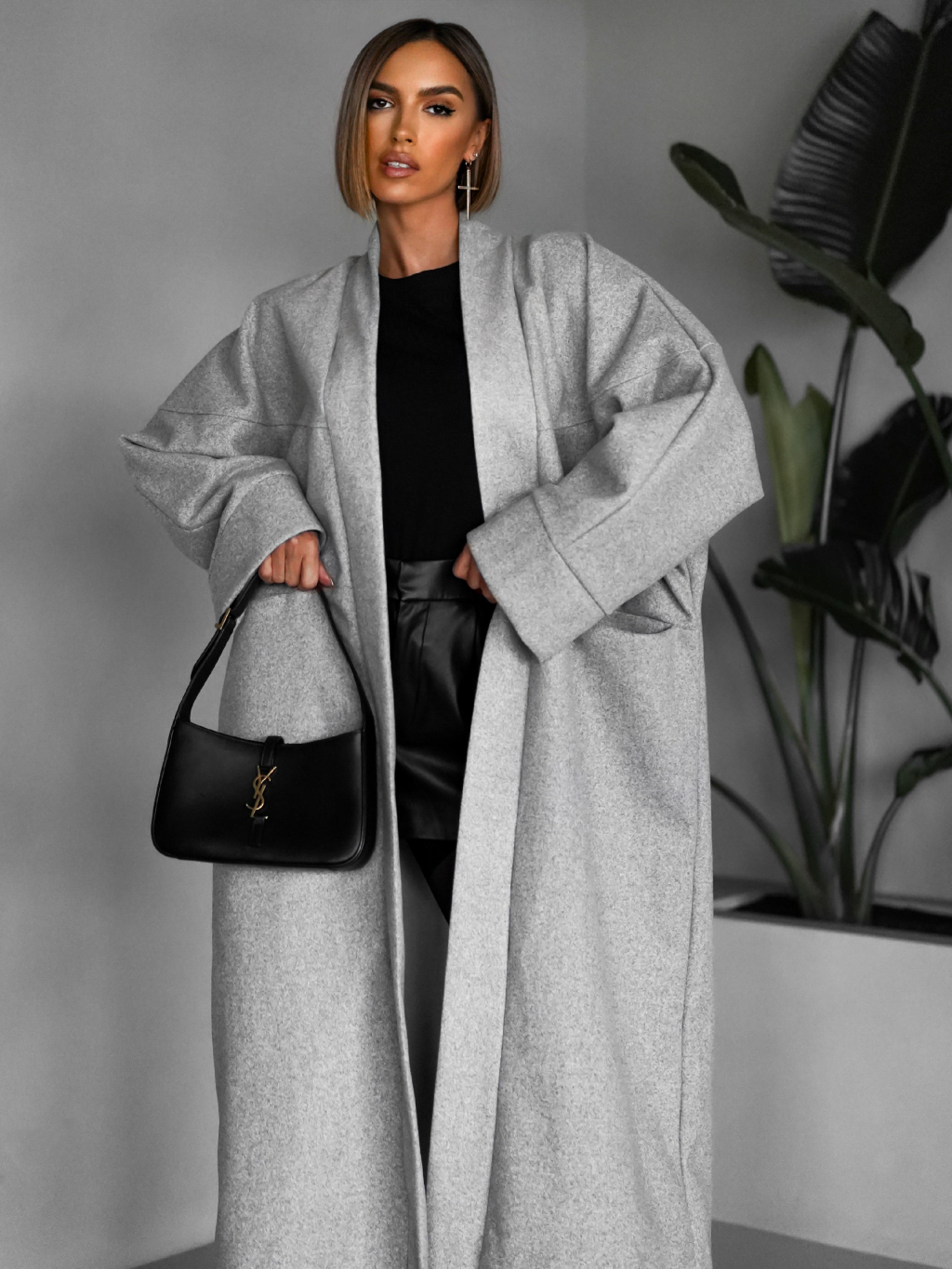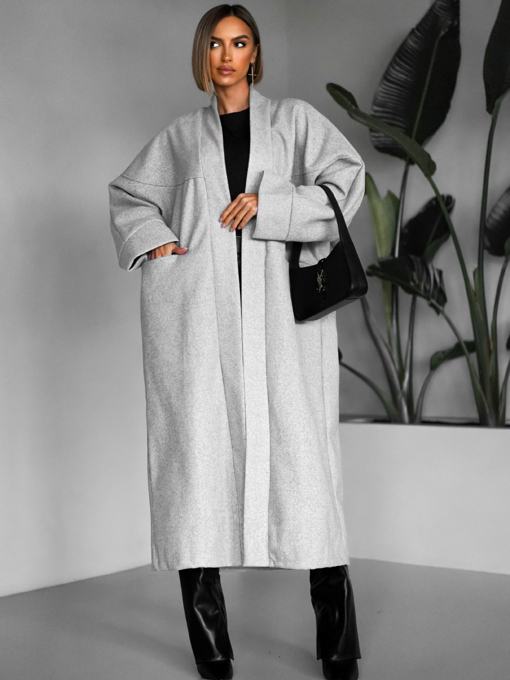 Šedý dlhý kabátik kardigán THADY bez zapínania