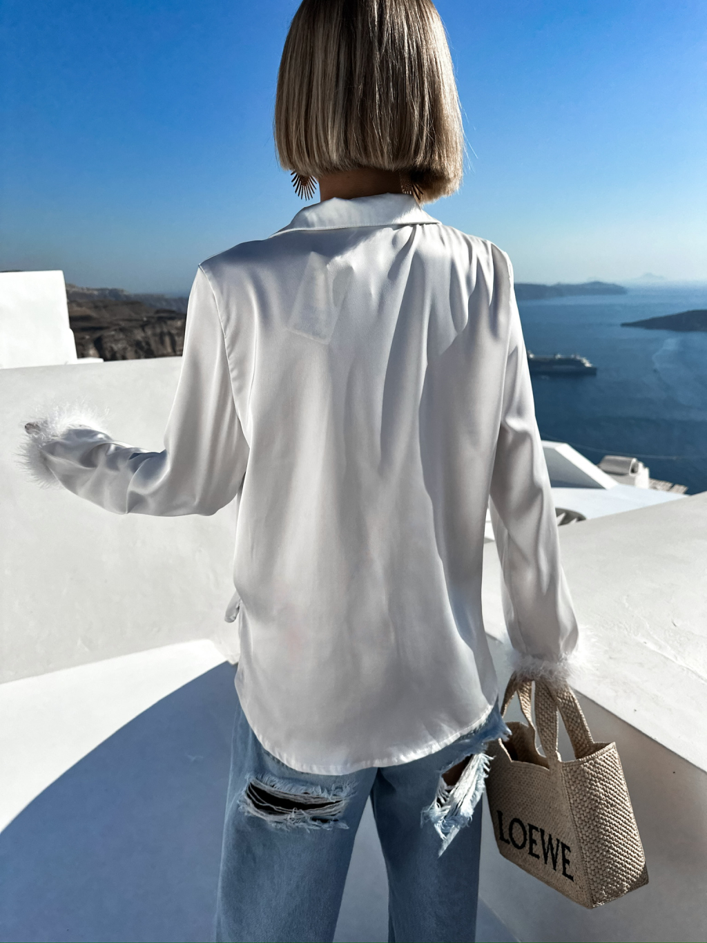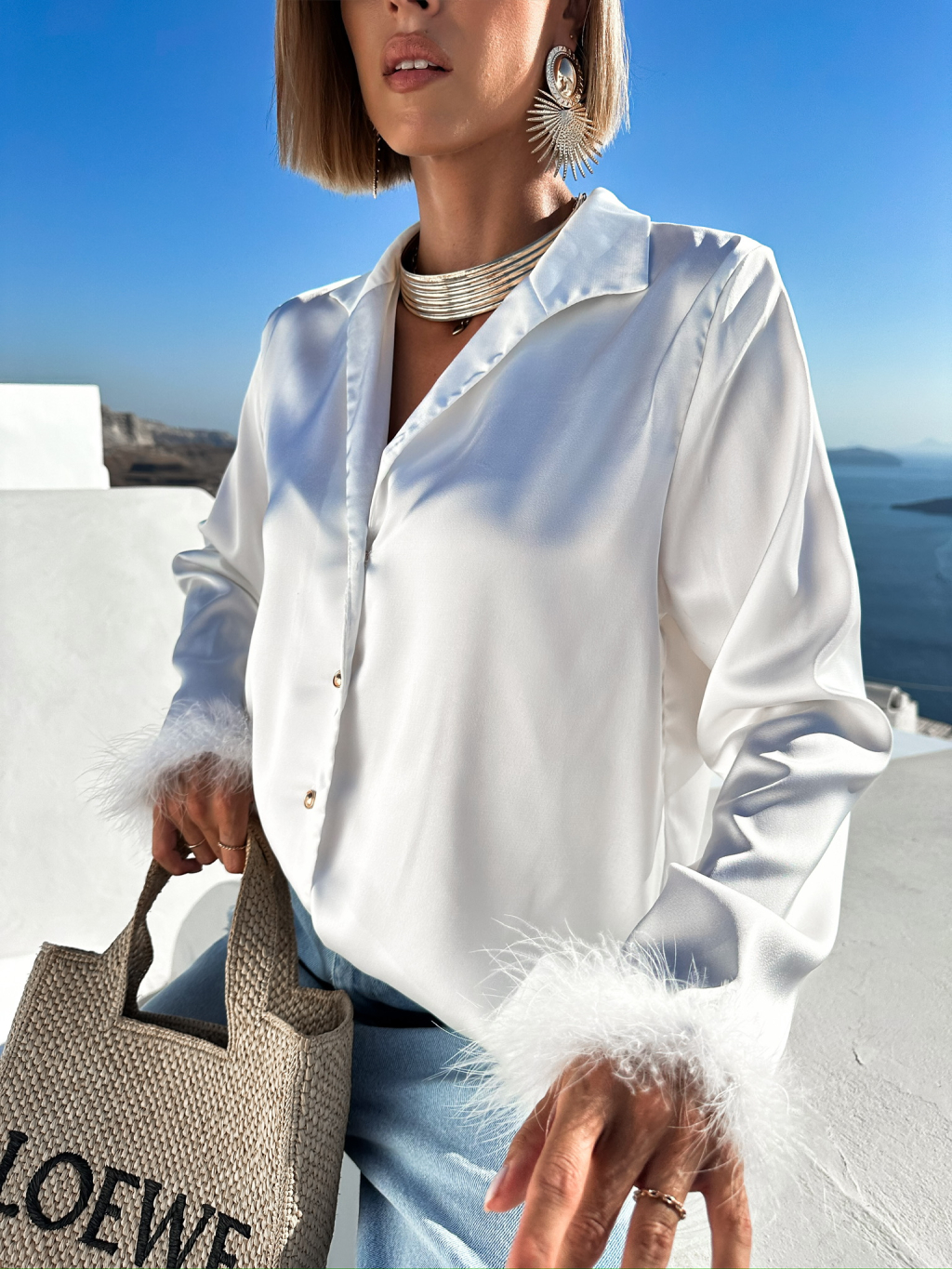 Biela elegantná košeľa DURGEL s pierkami na rukávoch