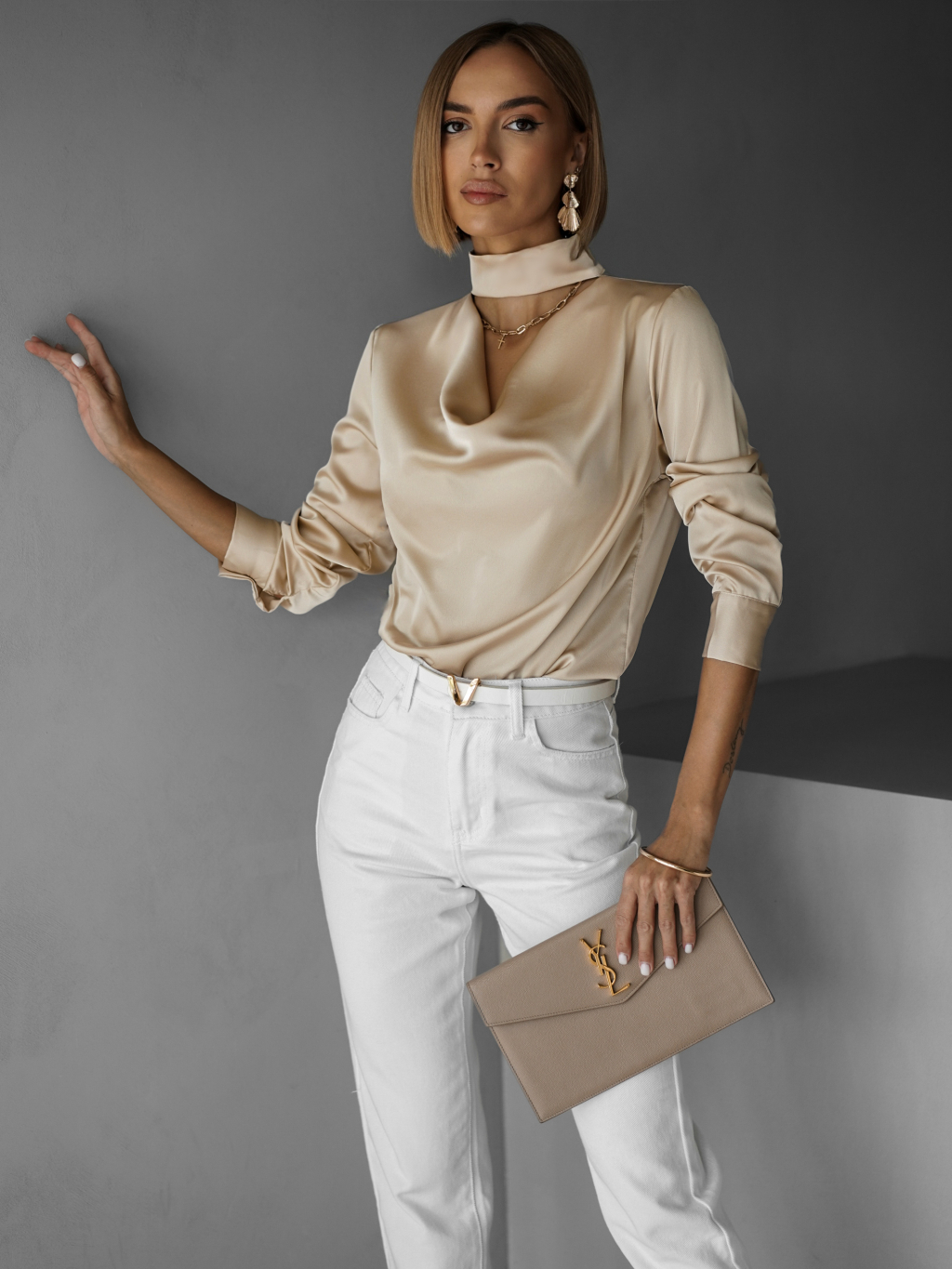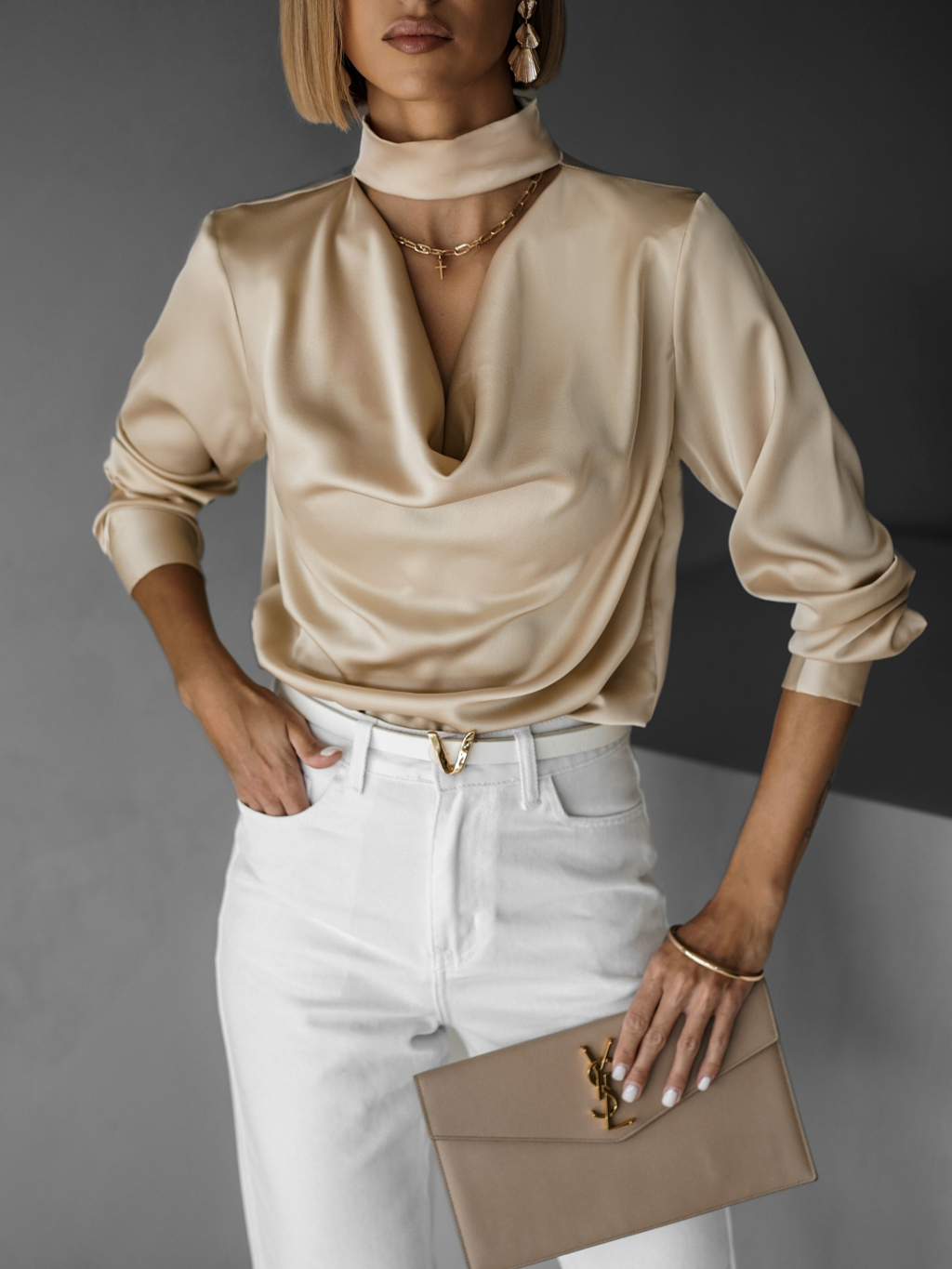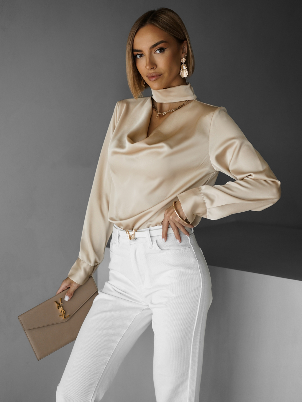 Krémová elegantná saténová blúzka MELMUSA