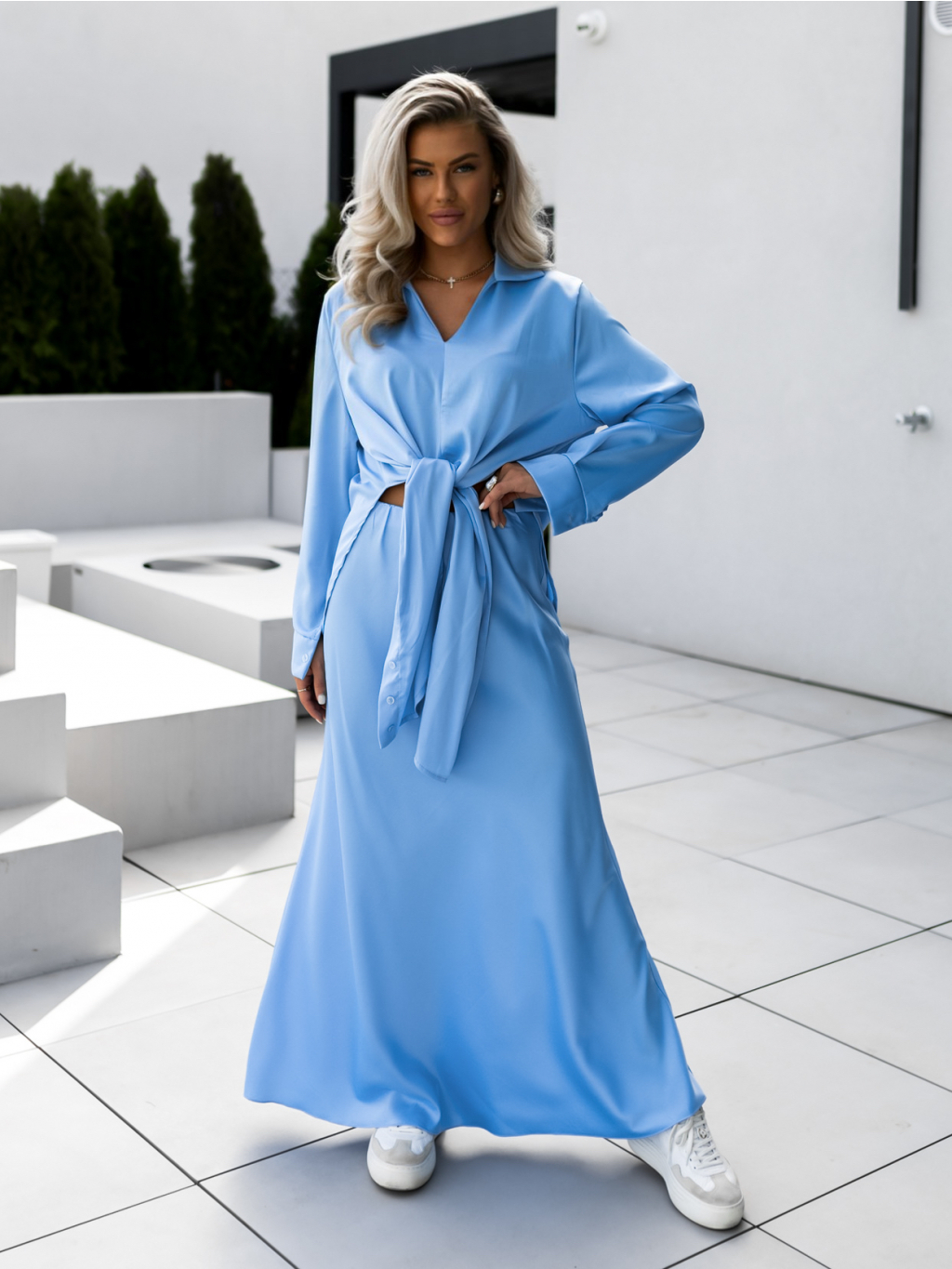 Modrá elegantná blúzka NIRON na zaväzovanie