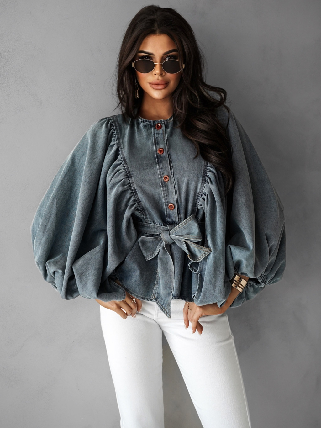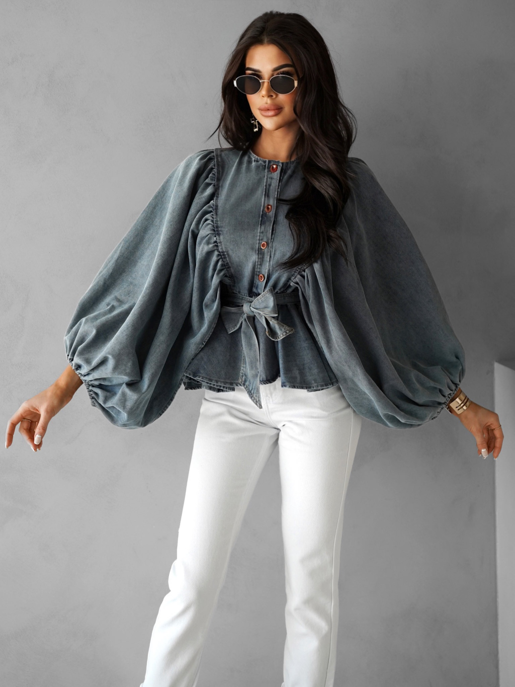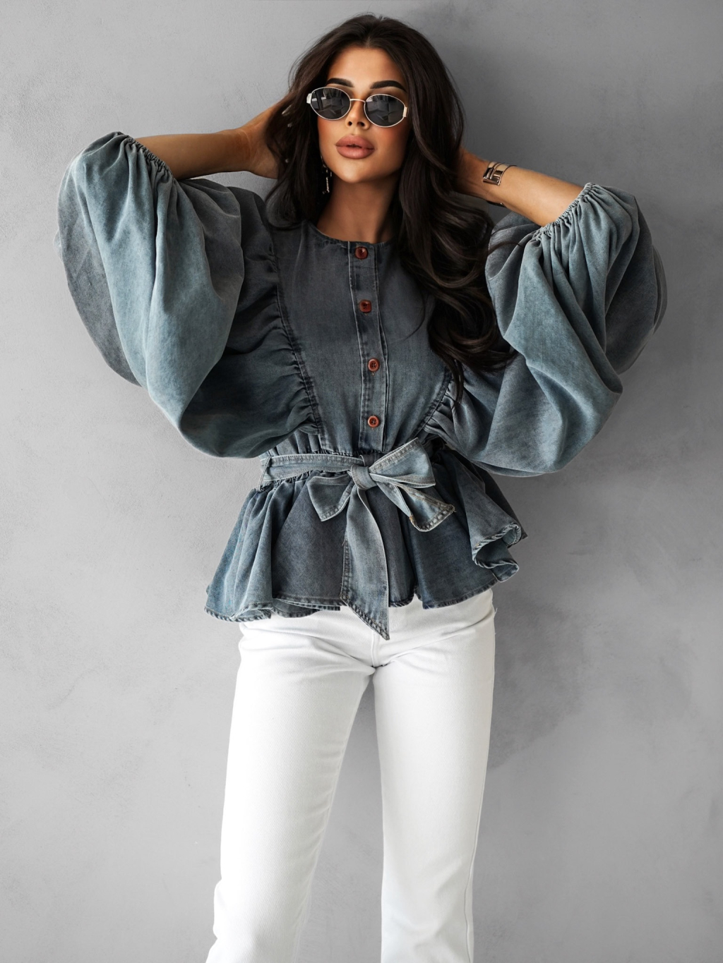 Modrá luxusná džínsová blúzka CHIMELY s opaskom