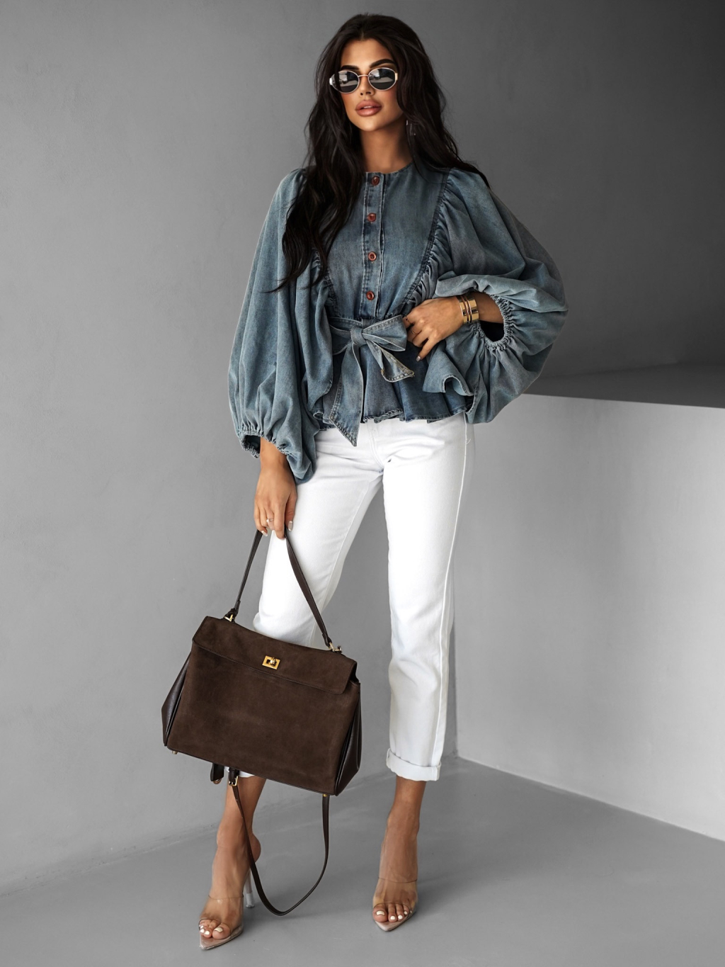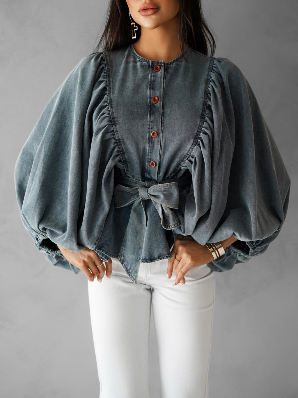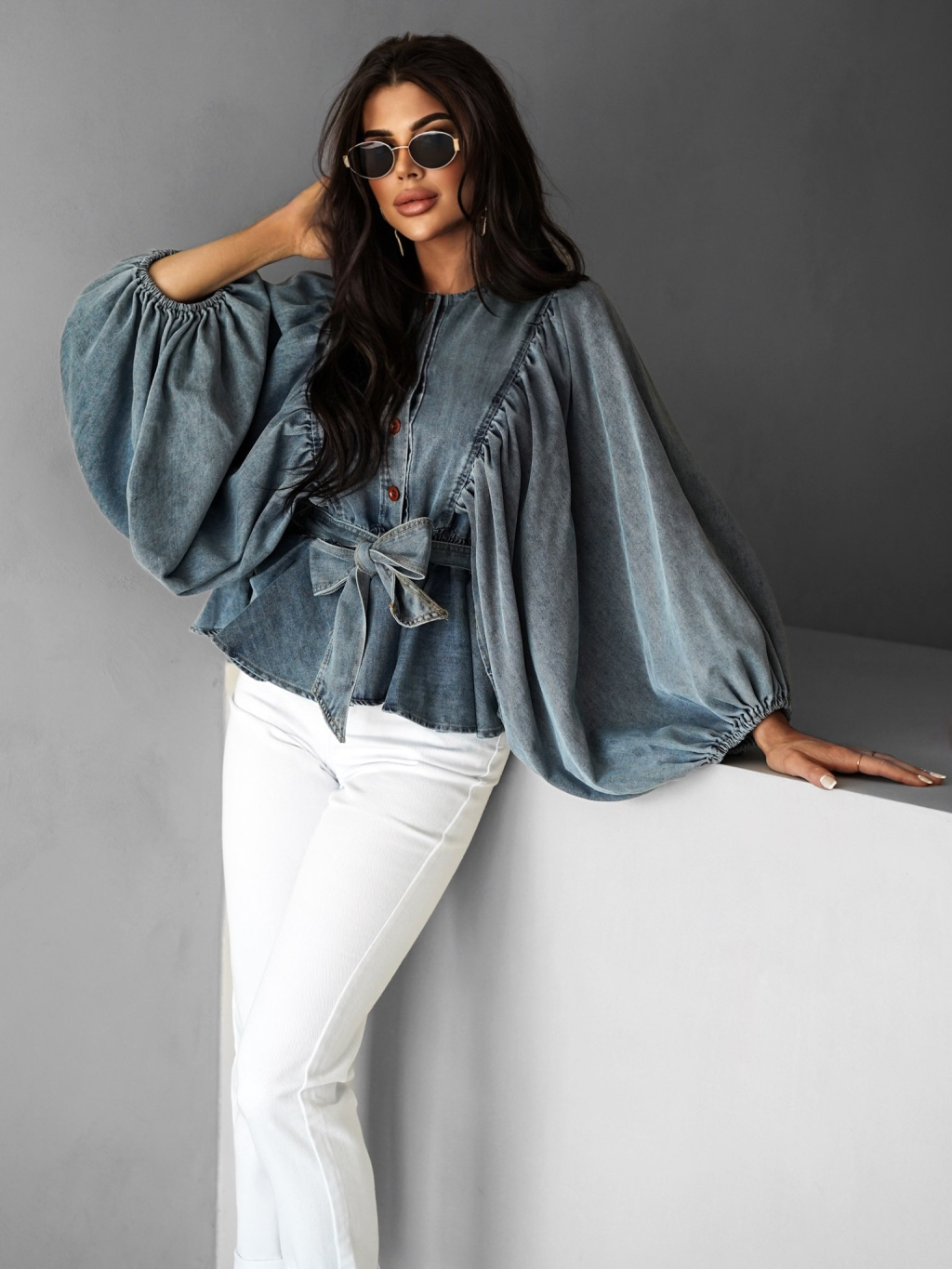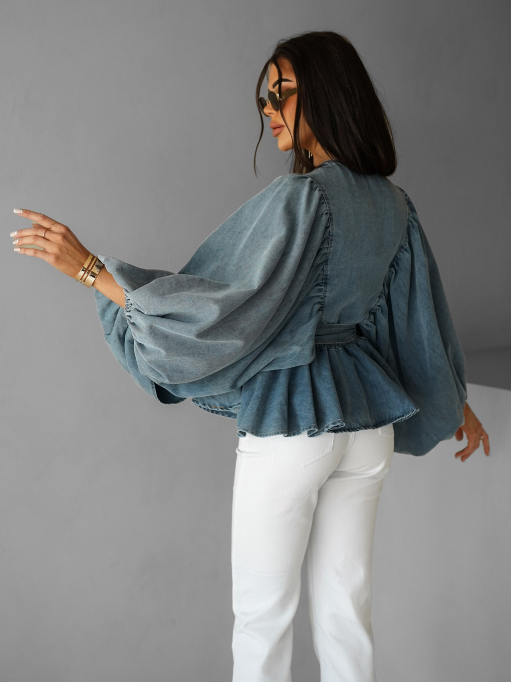 Modrá luxusná džínsová blúzka CHIMELY s opaskom