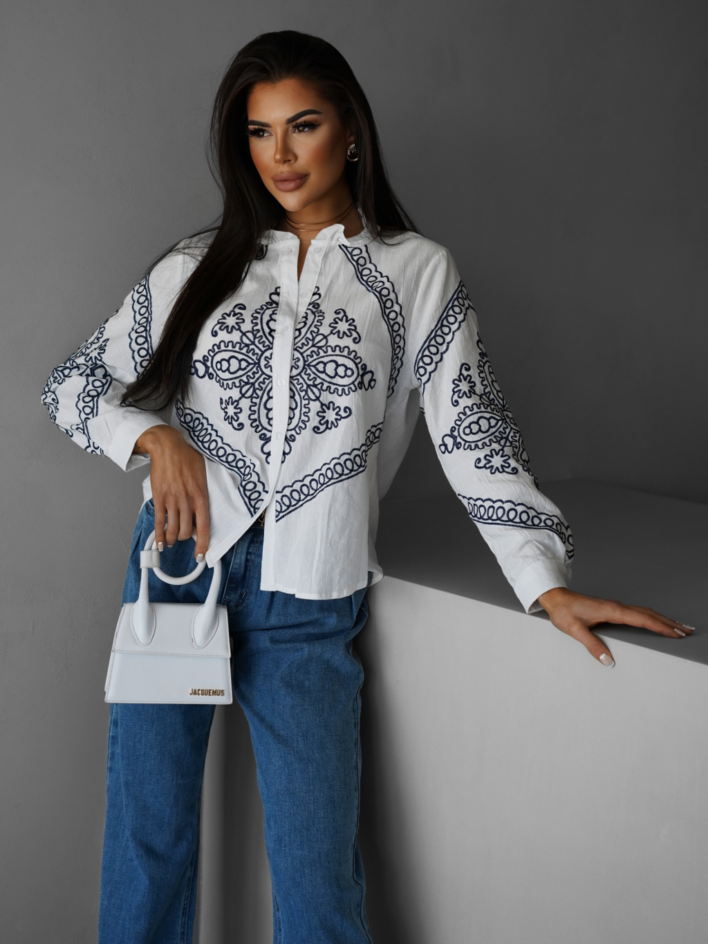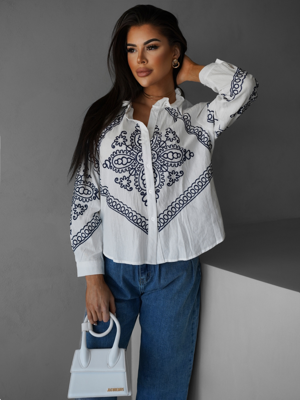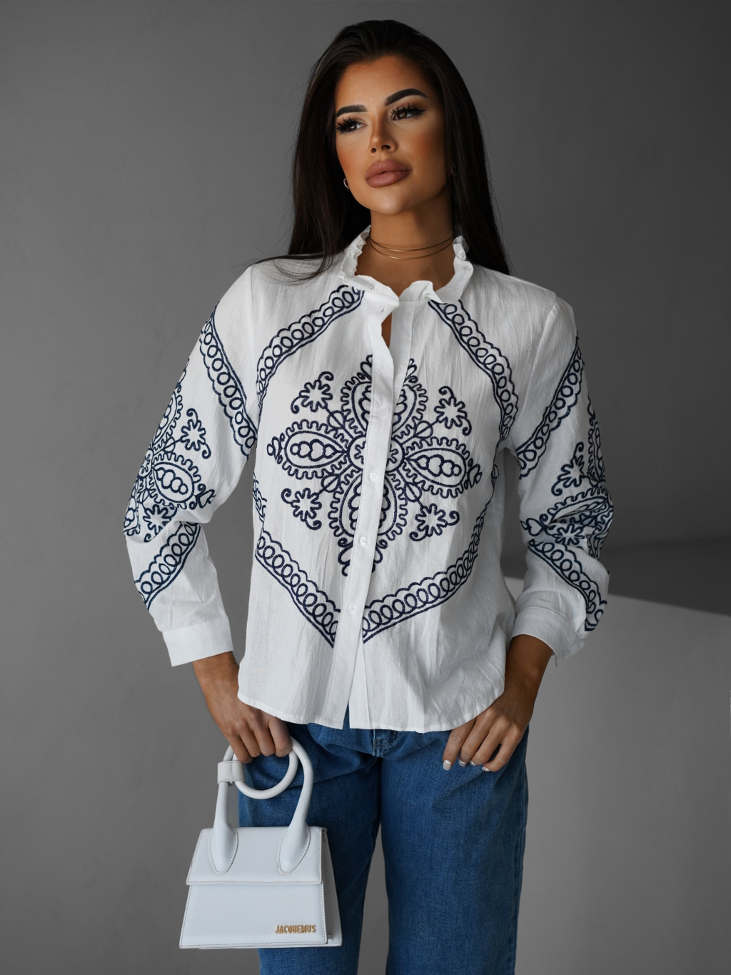 Biela bavlnená košeľa ALETTE s ornamentom