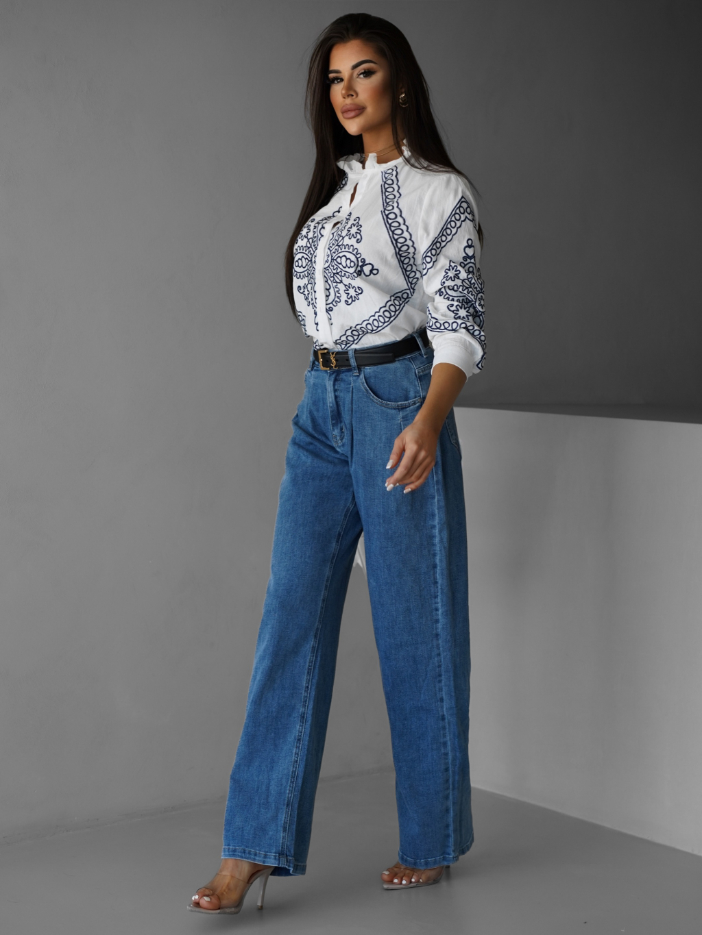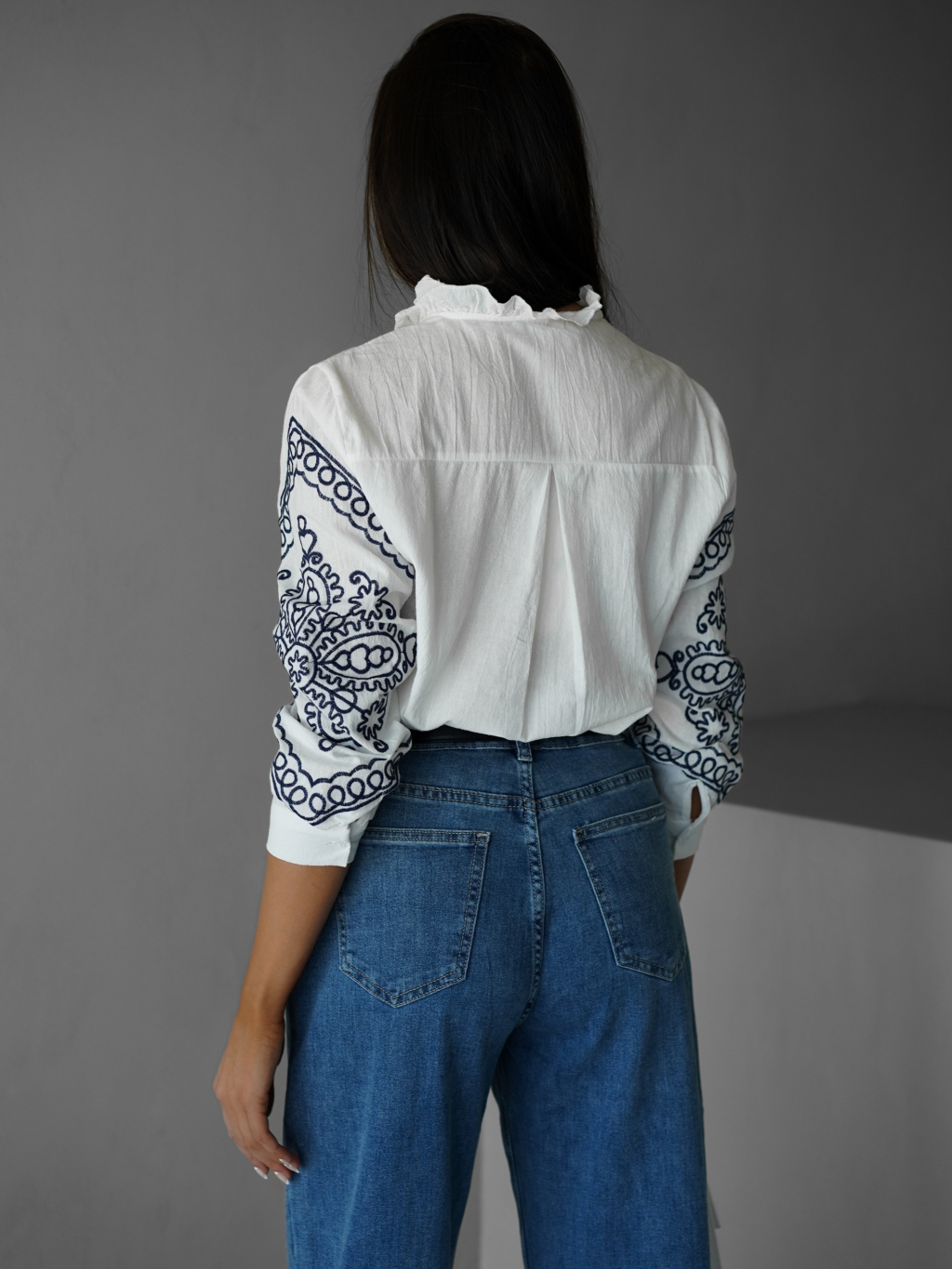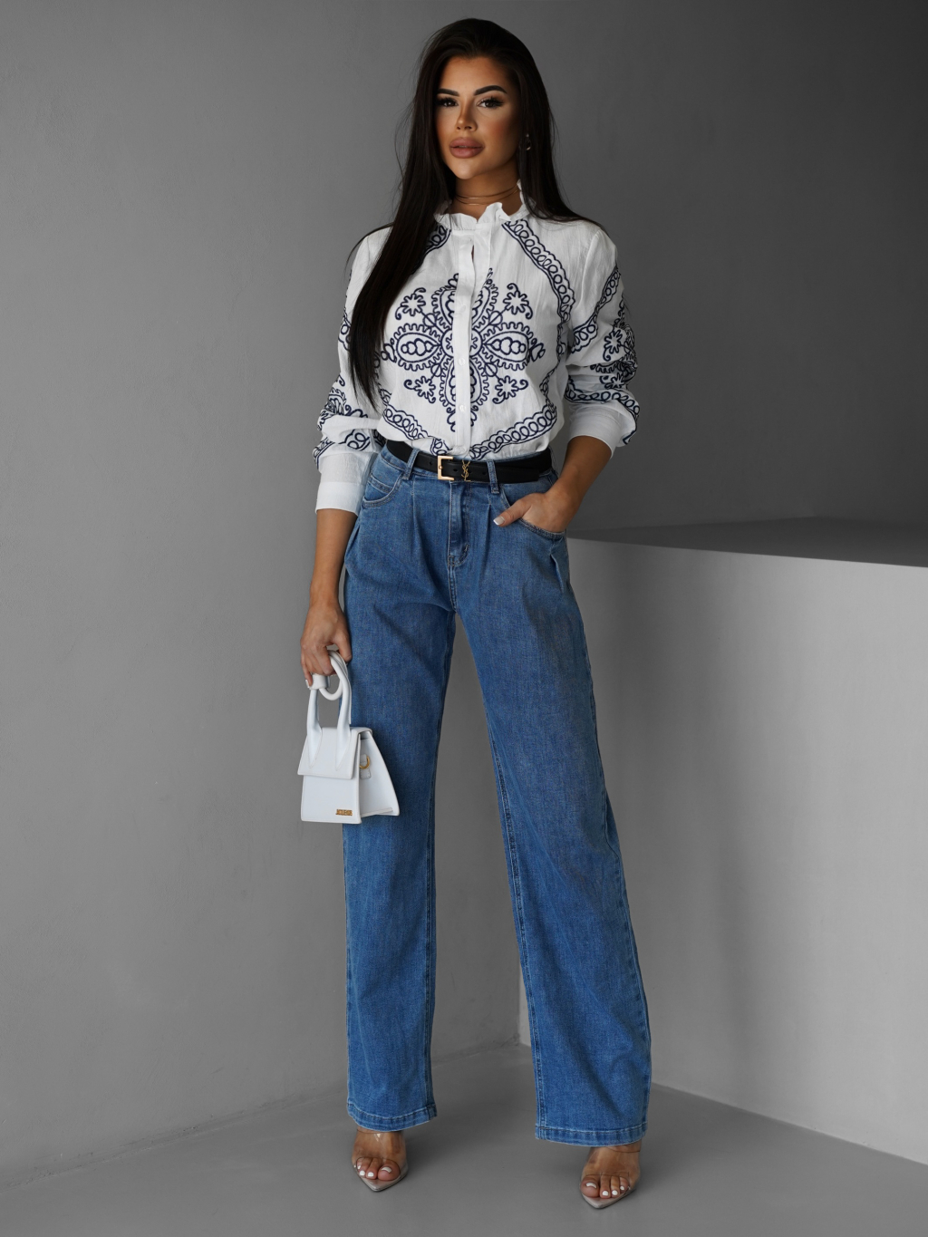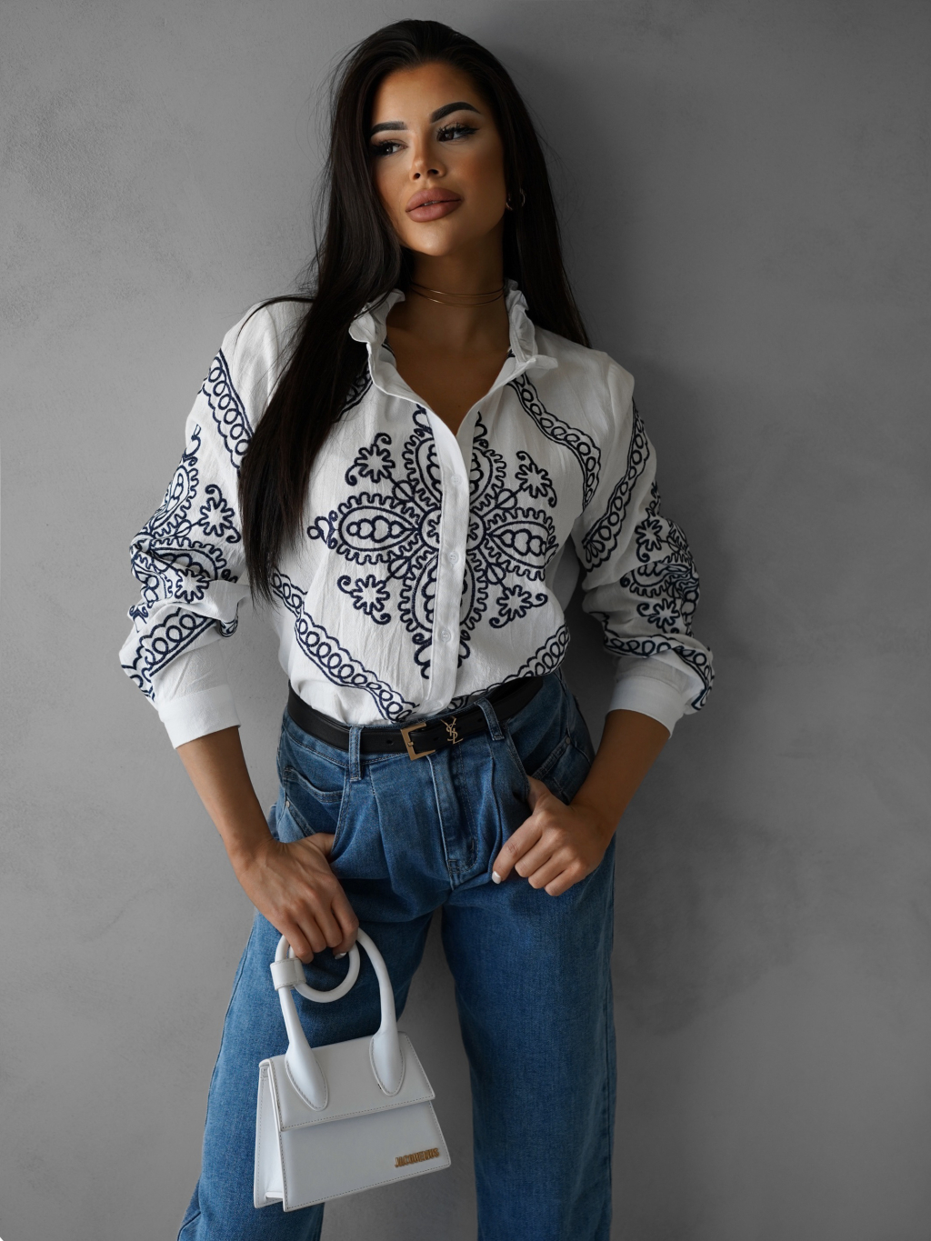 Biela bavlnená košeľa ALETTE s ornamentom