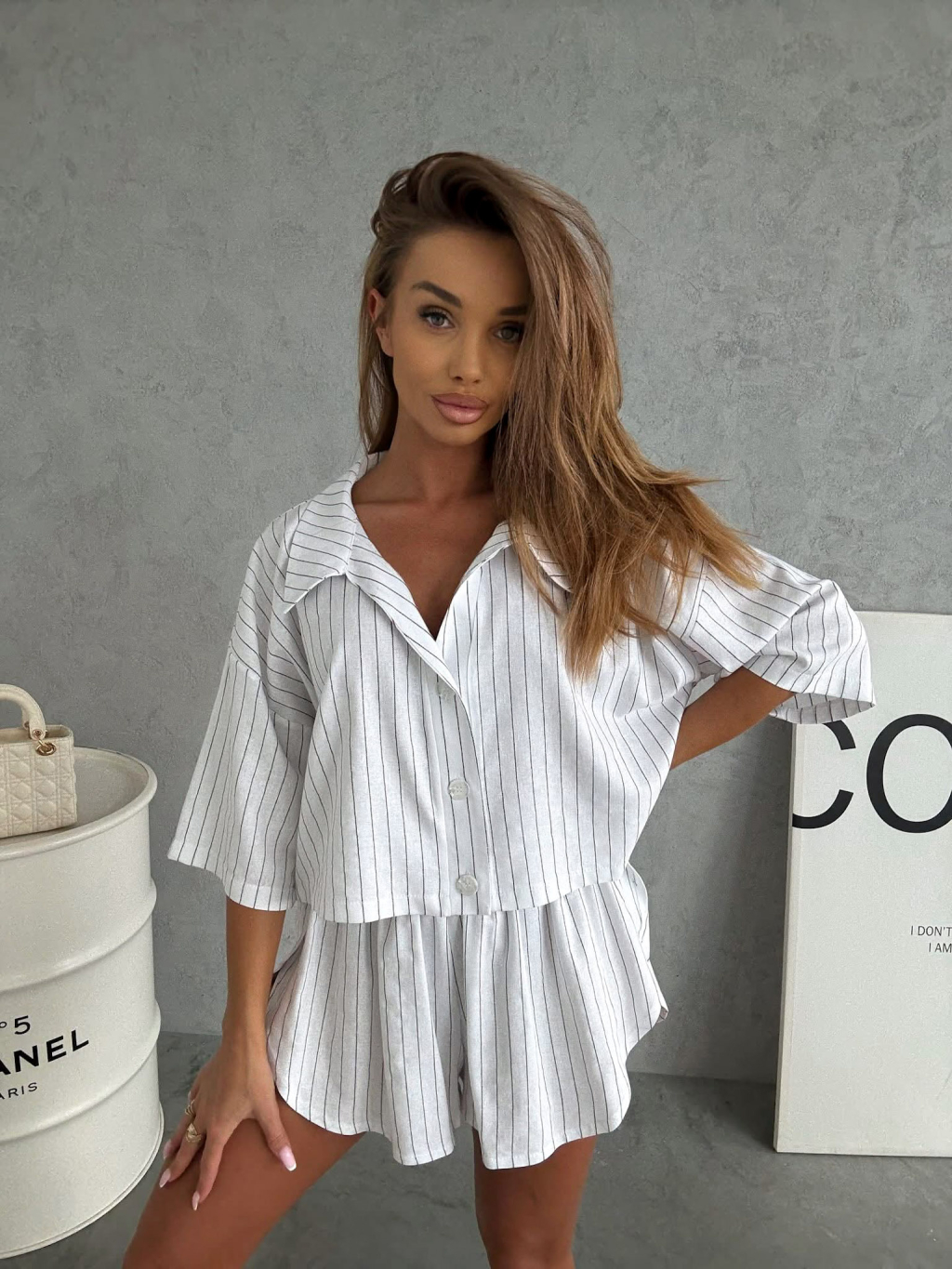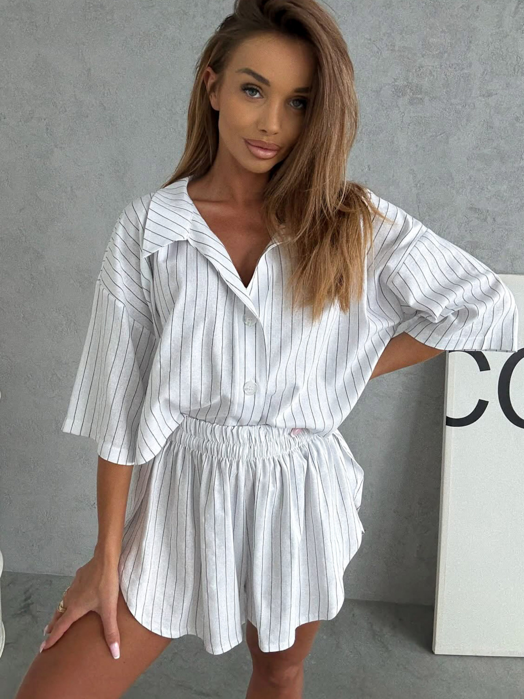 Biely ľanový pruhovaný košeľový komplet MERONA