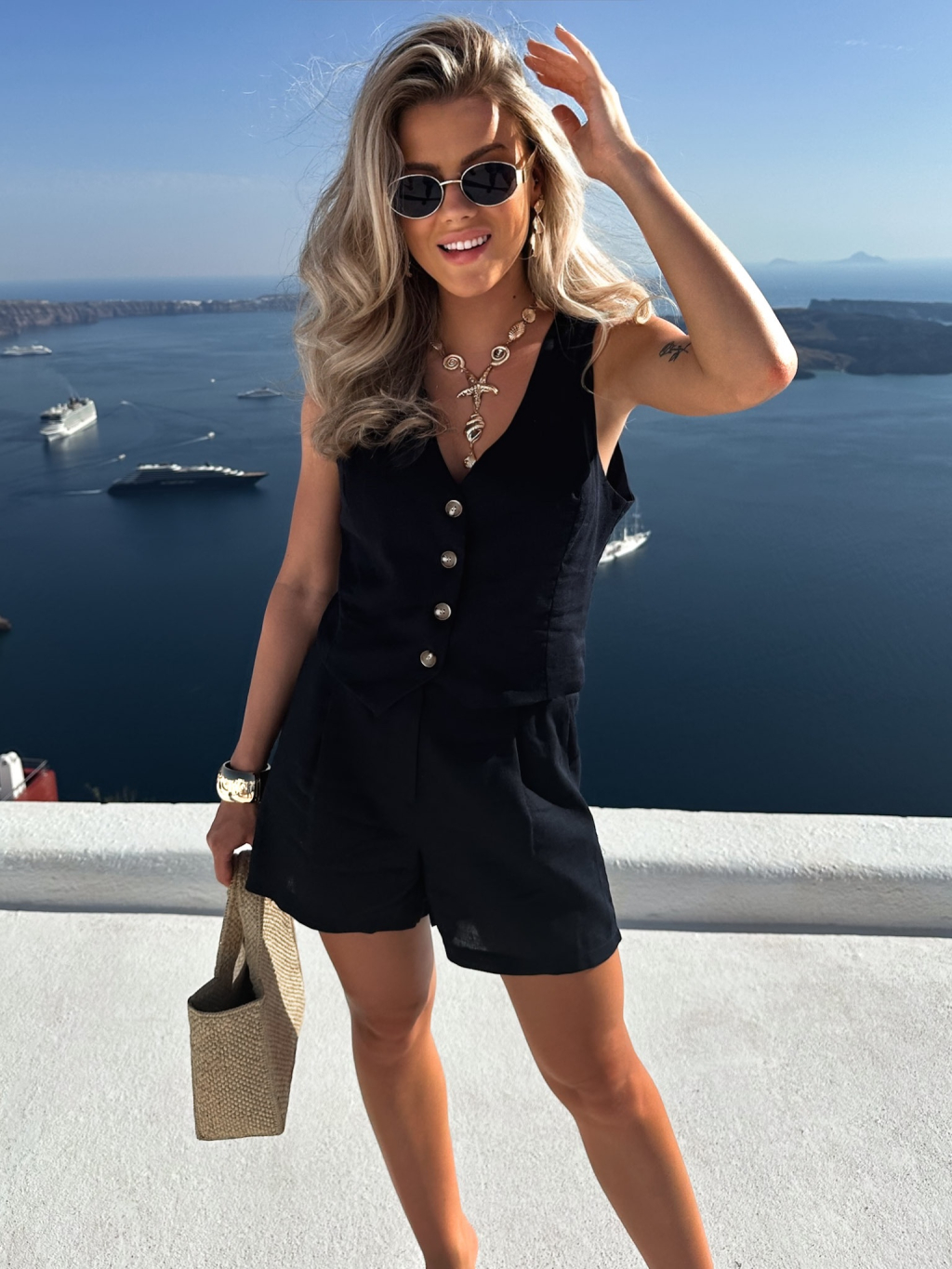 Tmavomodré letné krátke ľanové kraťasy NAILOT