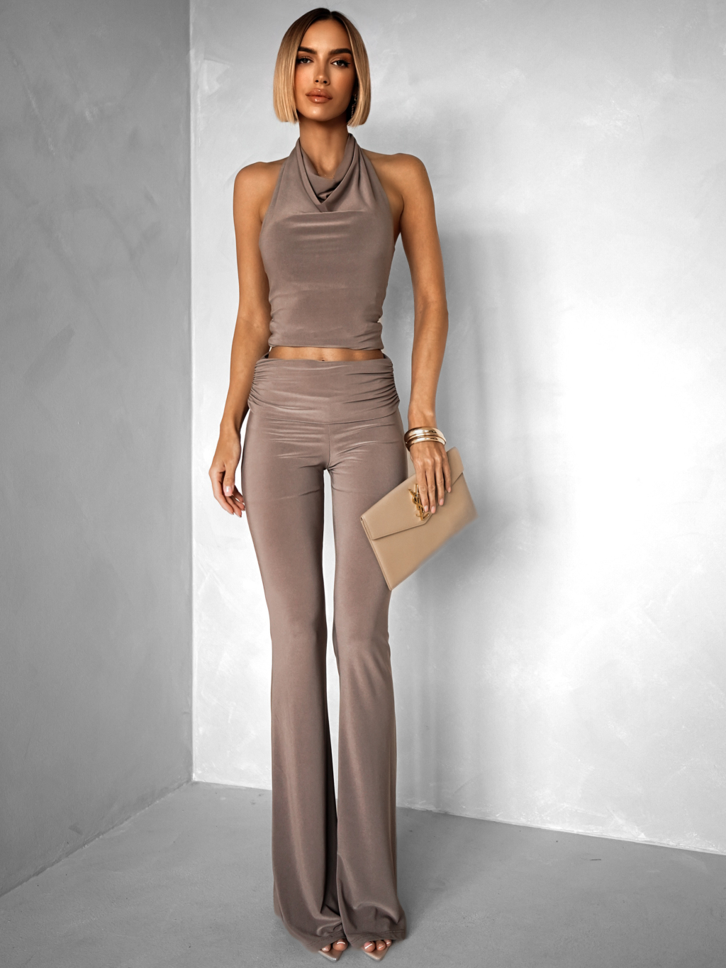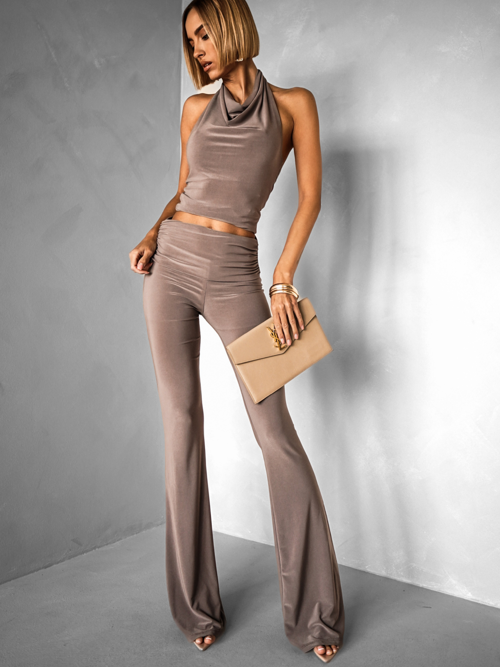 Béžové elastické nohavice CARIDAD
