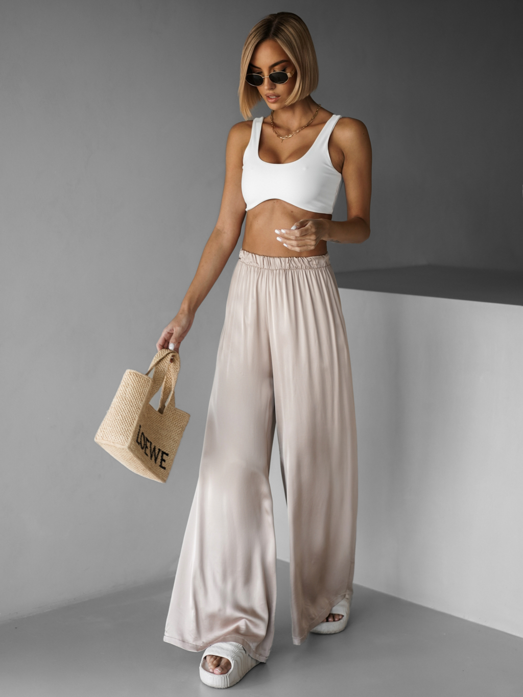 Elegantný kúsok, ktorý využijete ako v lete na akciách, tak v zime na ples. Ľahký a príjemný materiál s jemným leskom pôsobí luxusne, zatiaľ čo pohodlný strih zaistí voľnosť pri každom kroku. Dostupné v štandardnej, predĺženej aj extra predĺženej dĺžke pre perfektné padnutie každej postave.