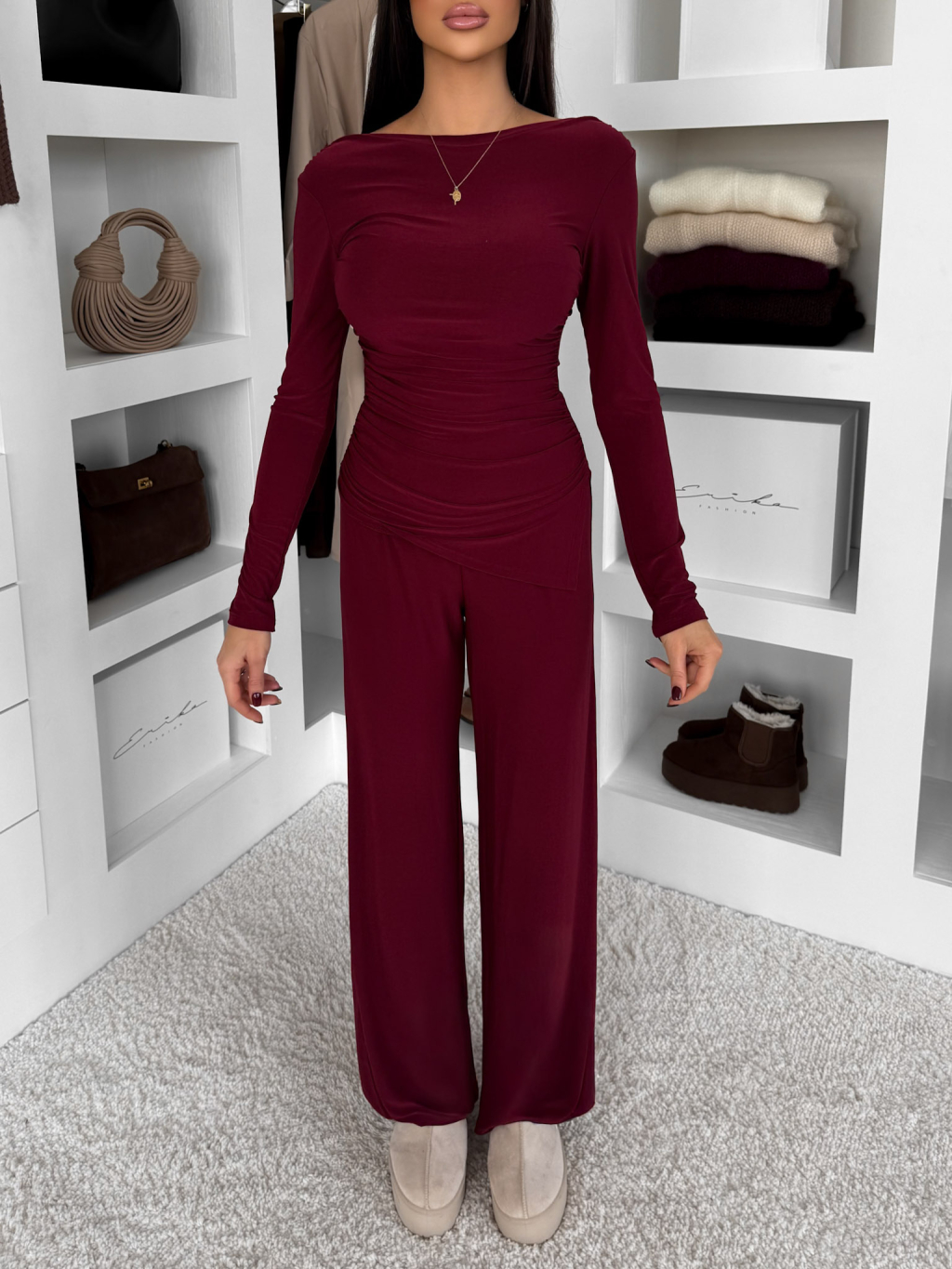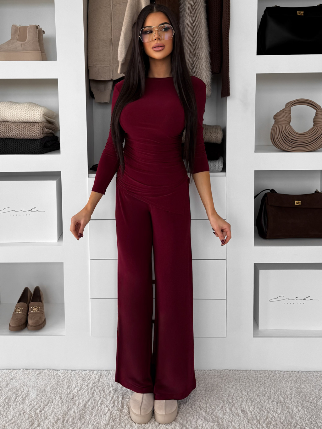 Bordó elastický nohavicový komplet FELUREATY