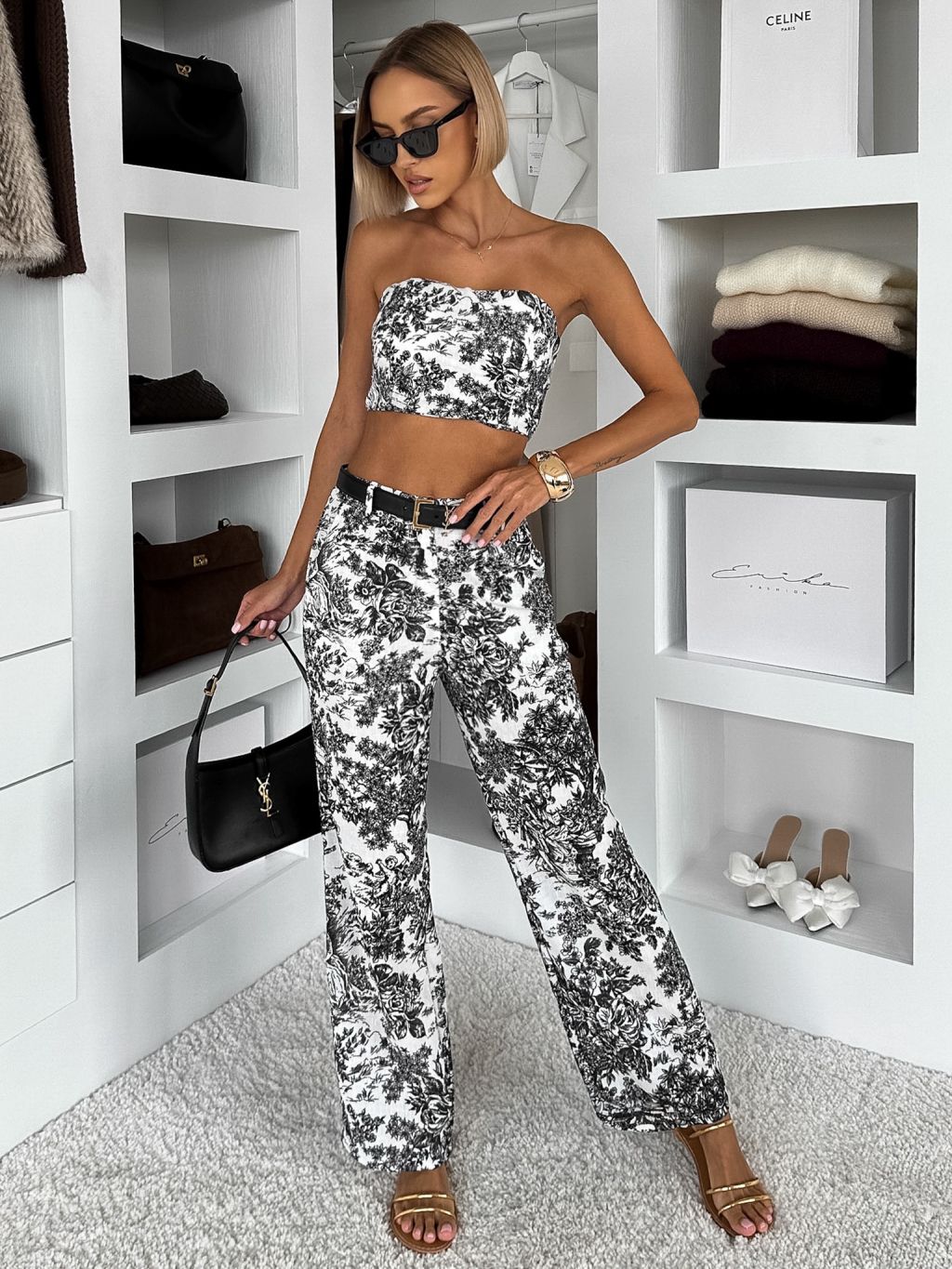 Čiernobiely elegantný nohavicový komplet TAURIN