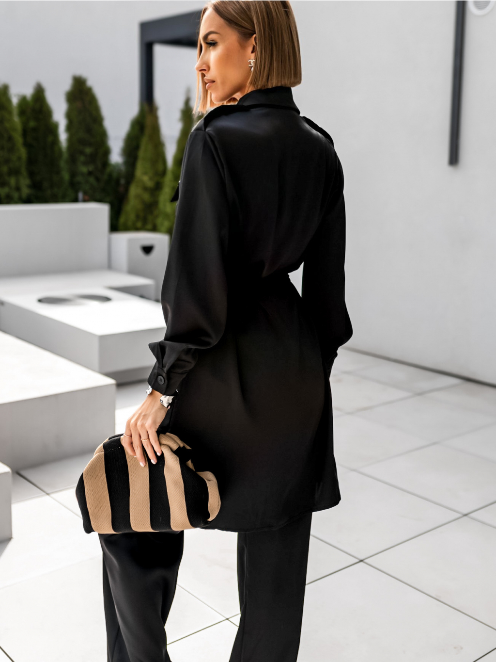 Čierny elegantný saténový nohavicový komplet RAEKA