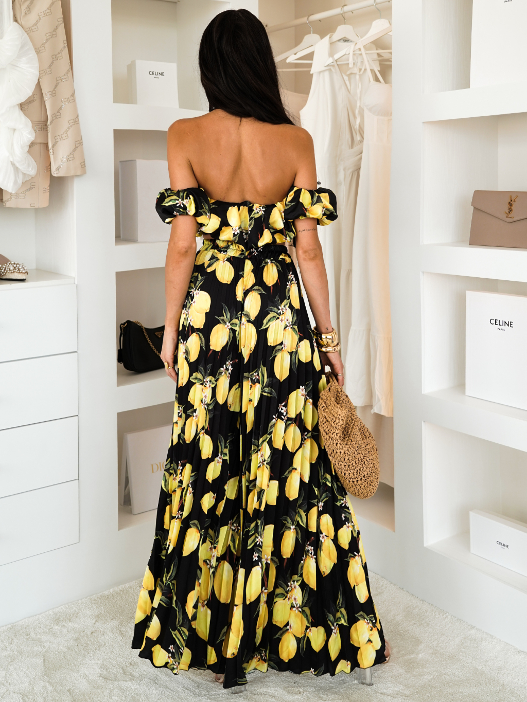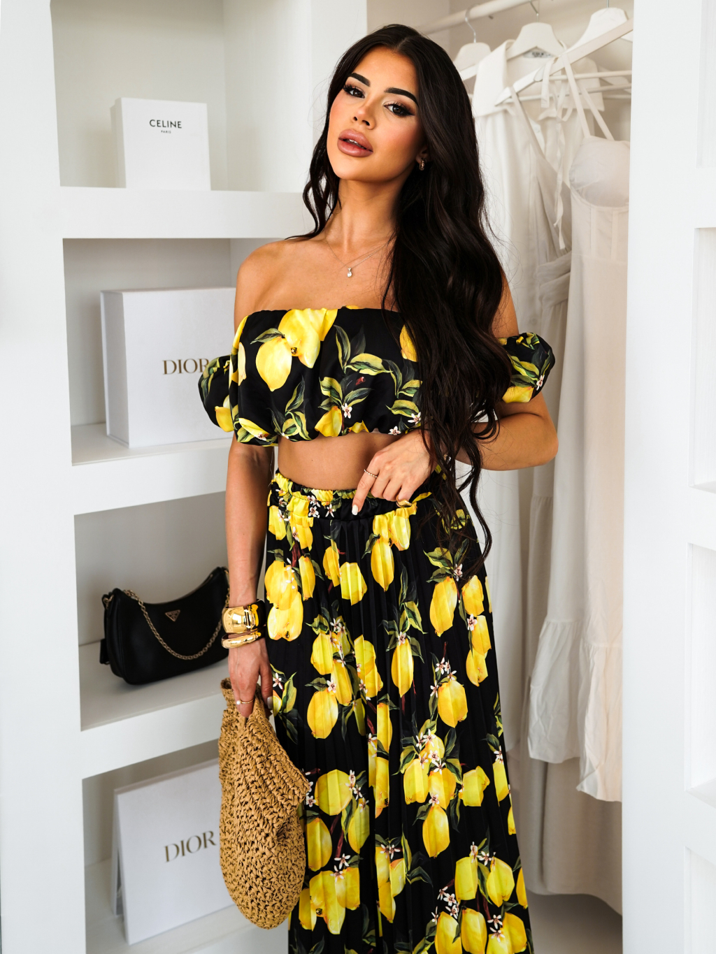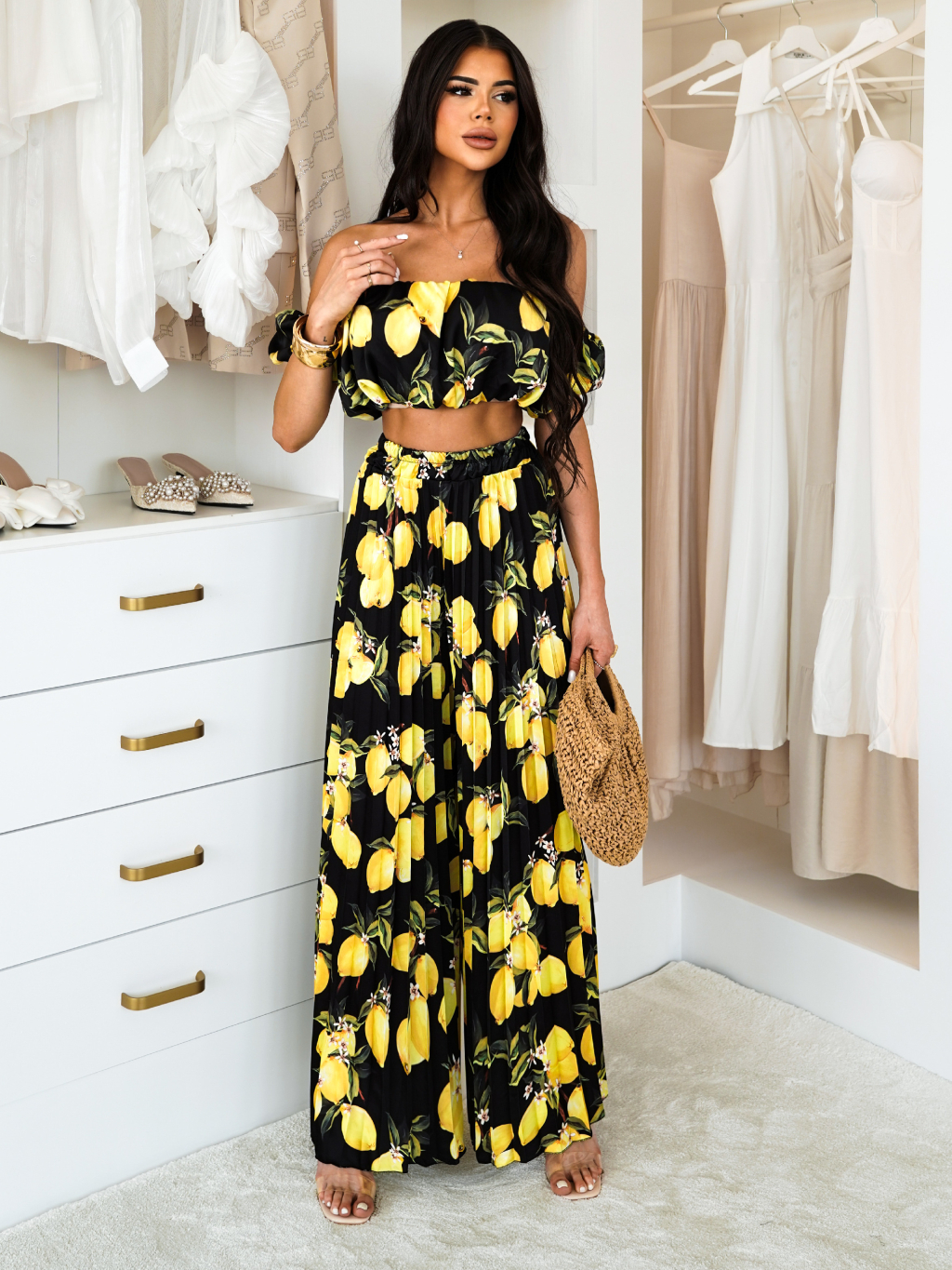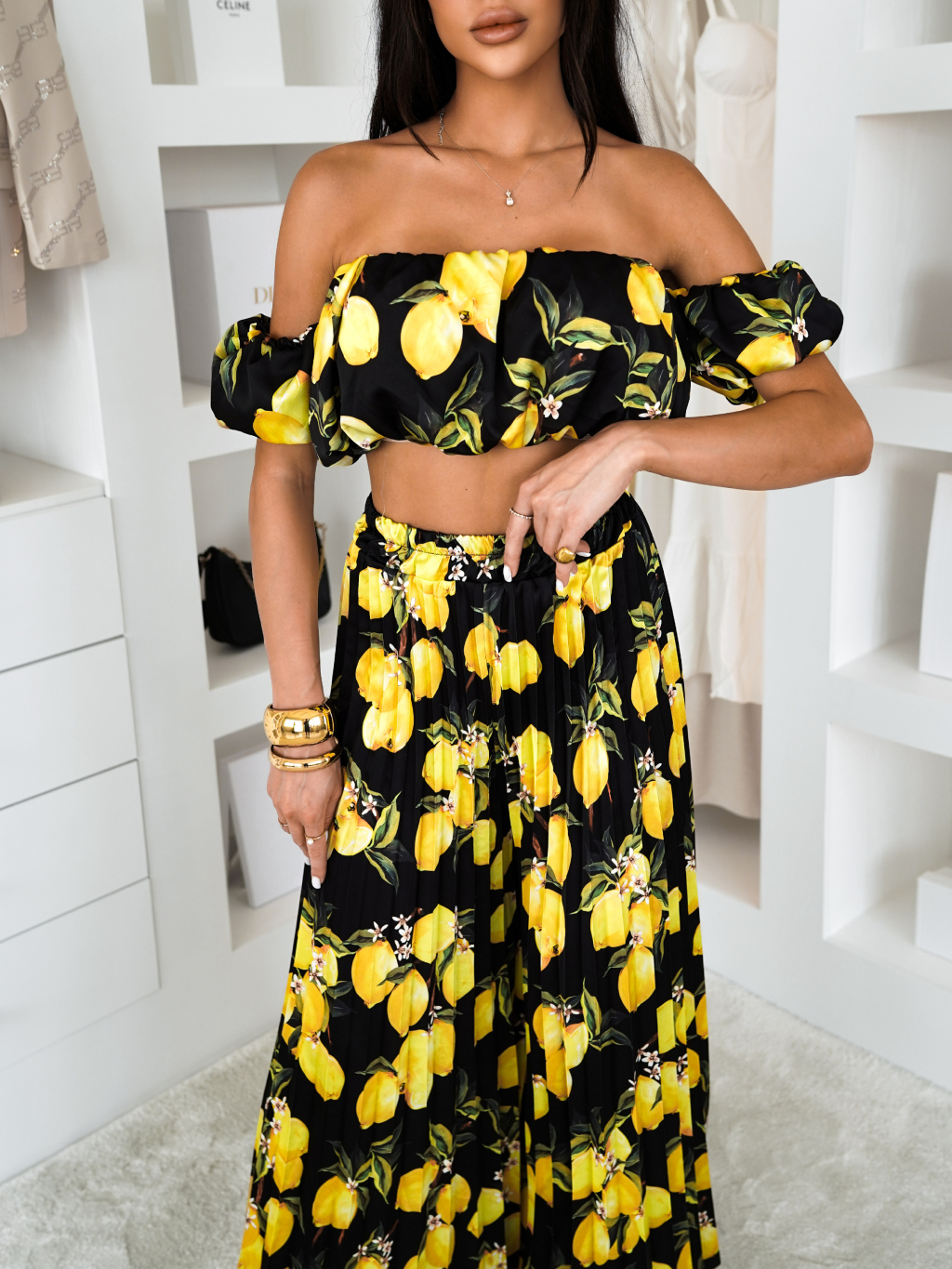 Čierny nohavicový komplet ENYSSA s citrónmi