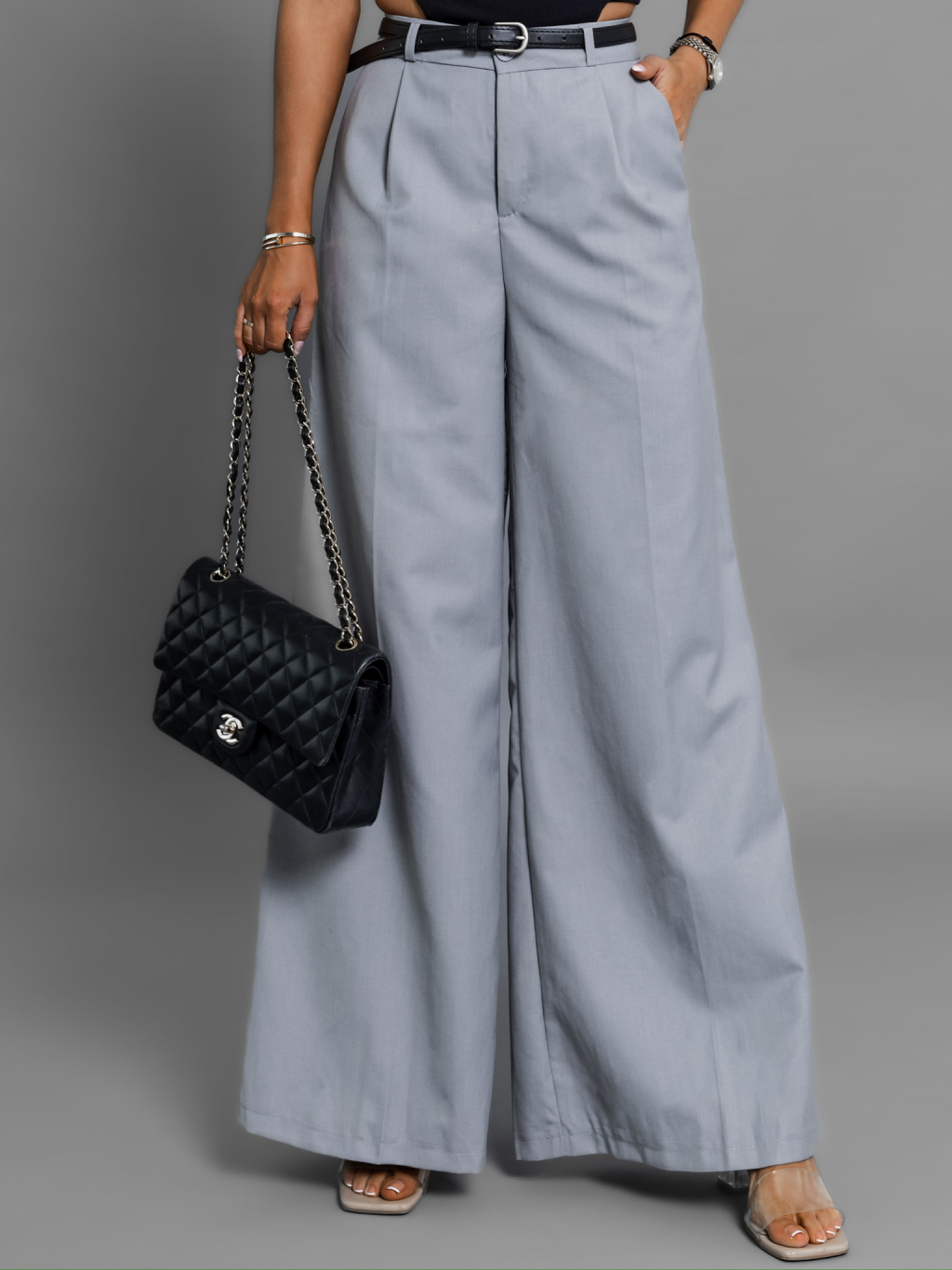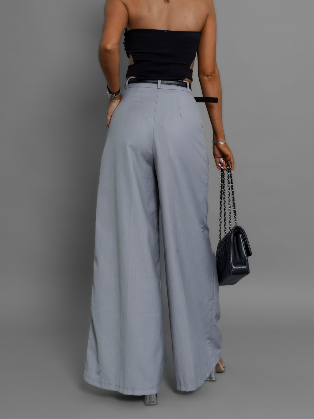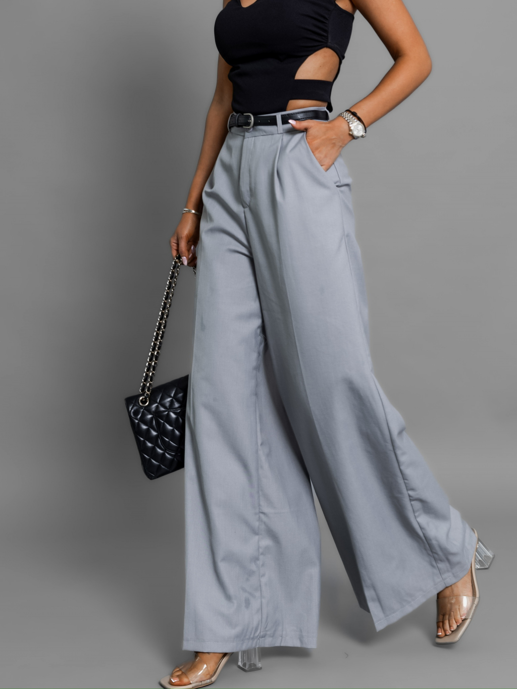 Šedé spoločenské široké nohavice BERGAMOT s opaskom