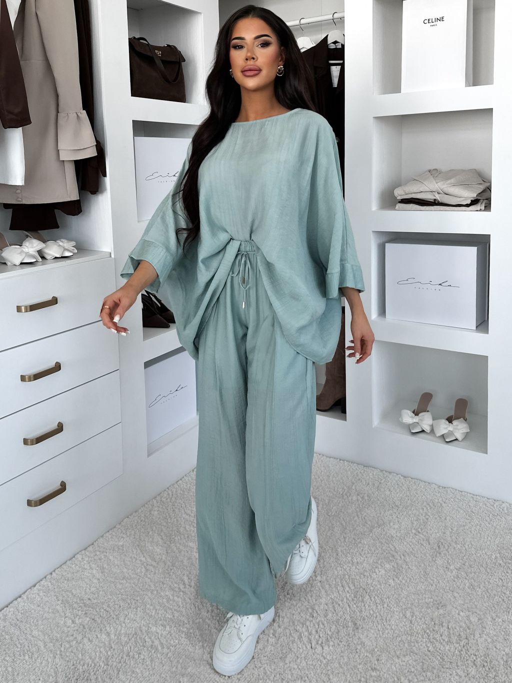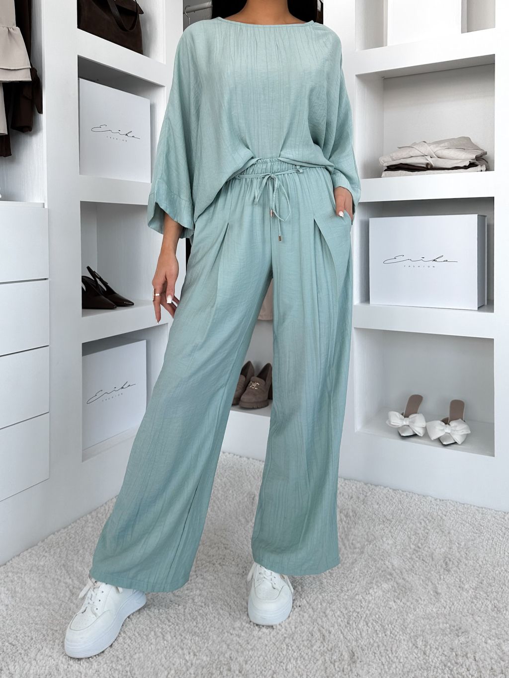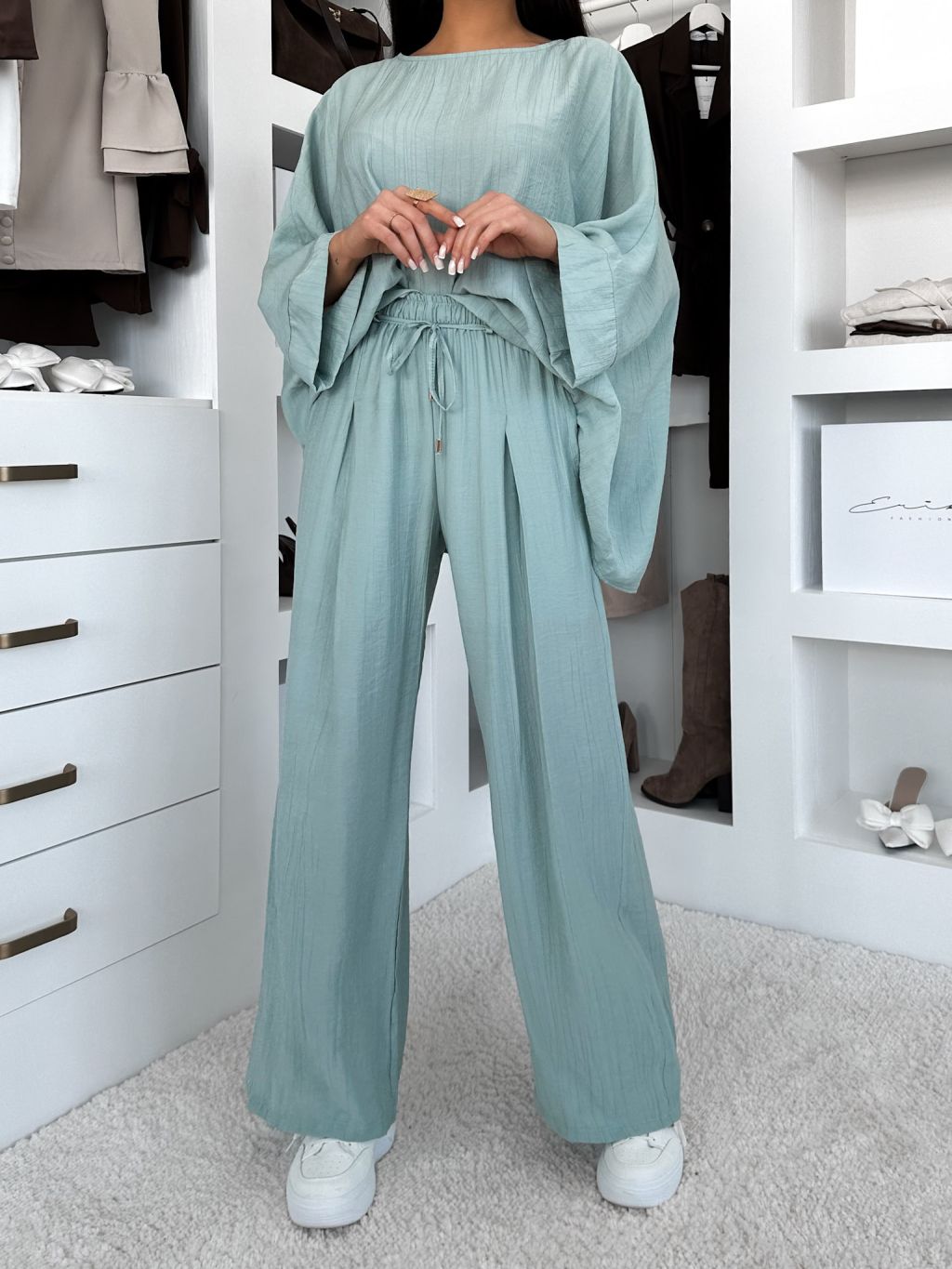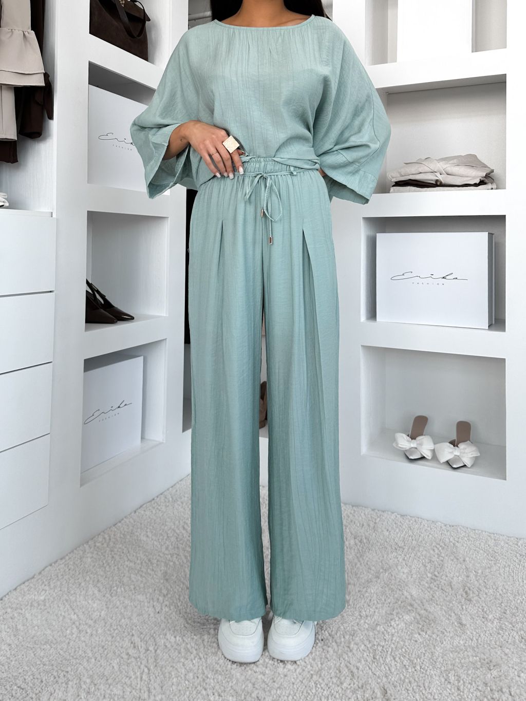 Svetlo tyrkysové ľahké nohavice LARYS