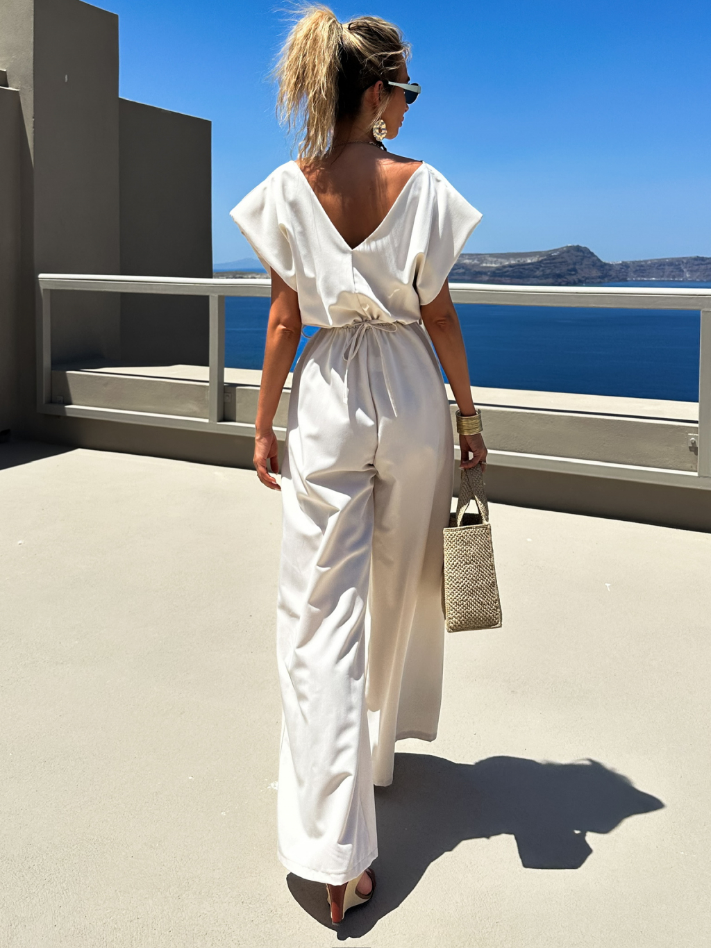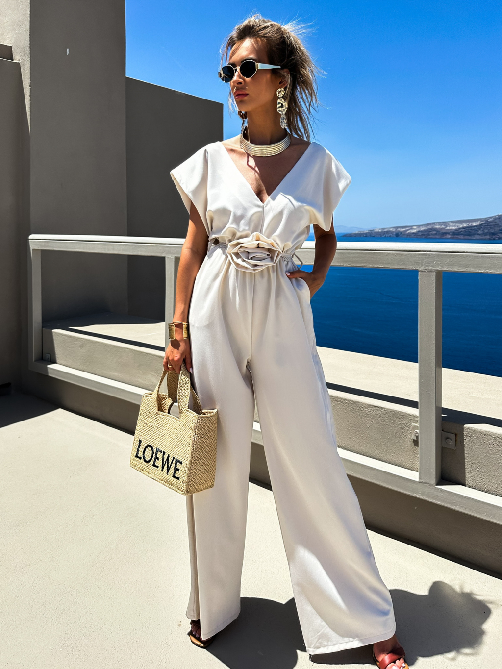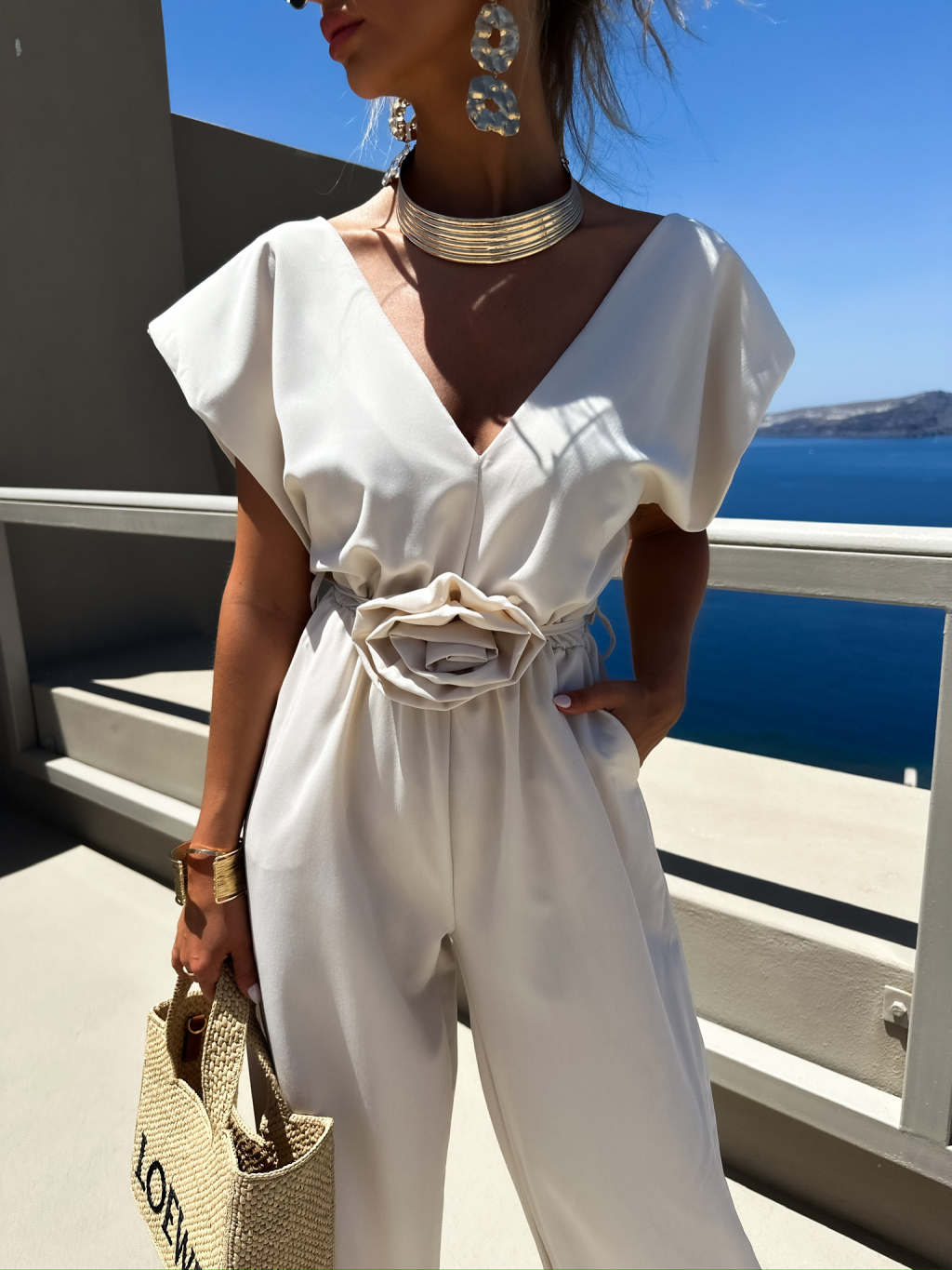 Béžový dlhý overal KOSMAS s vreckami
