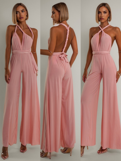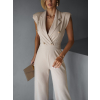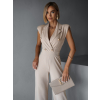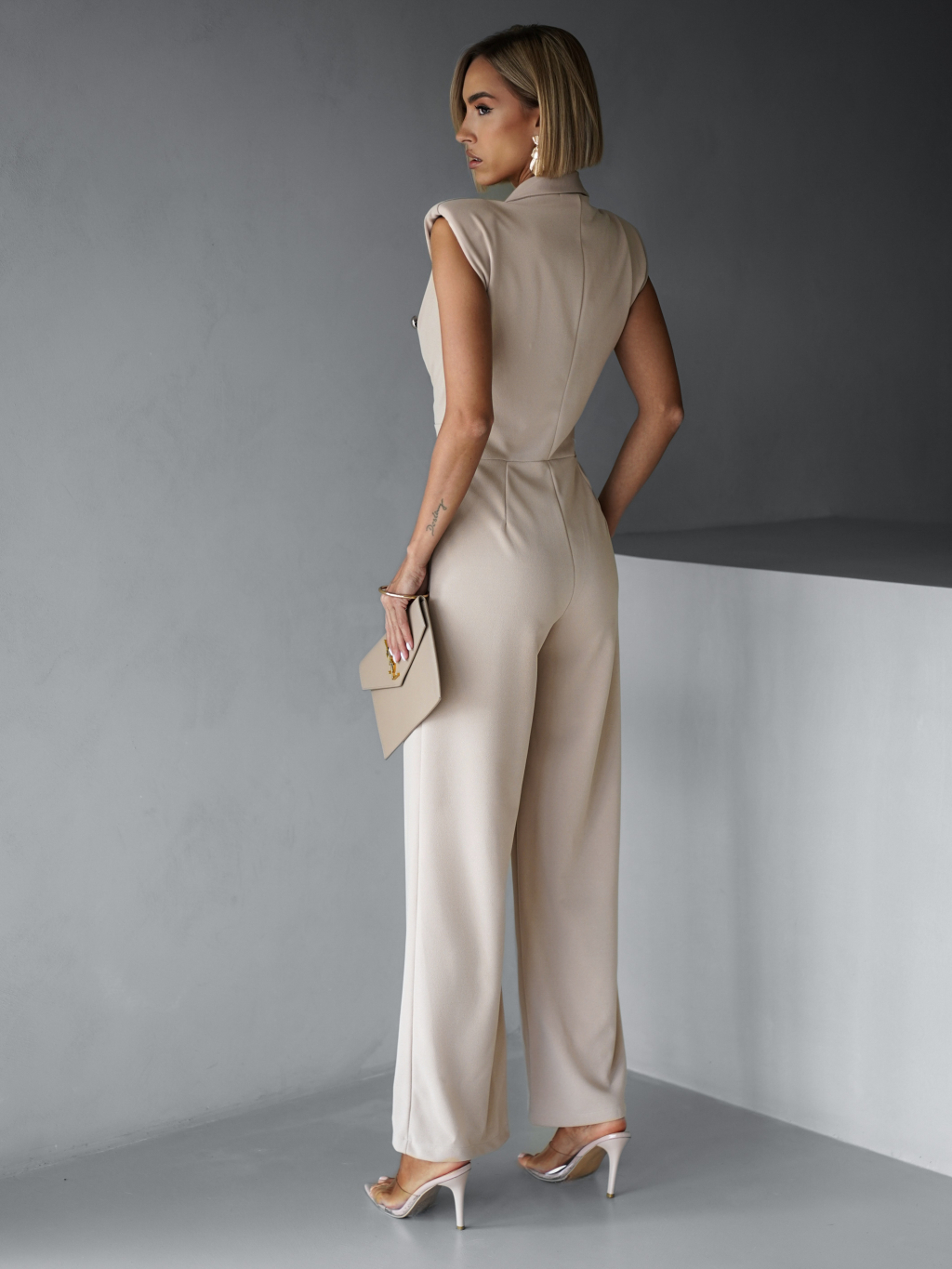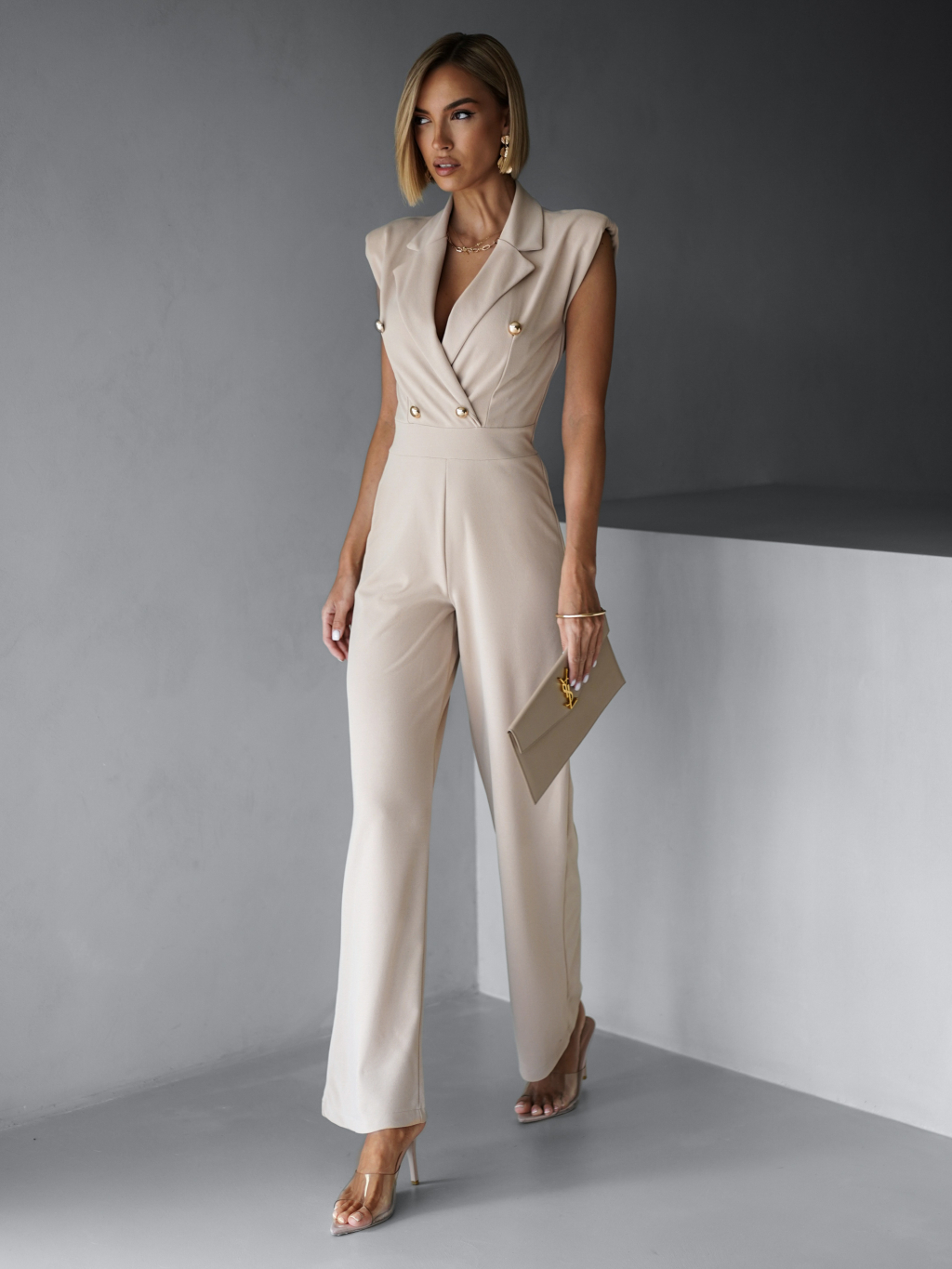 Béžový elegantný dlhý overal FREDENA s gombíkmi