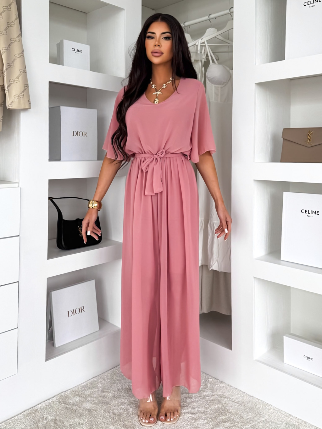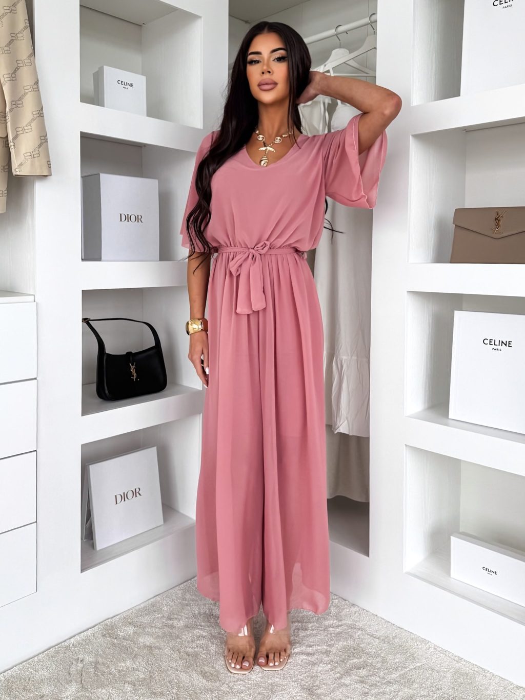 Staroružový elegantný dlhý spoločenský overal LEIRIA