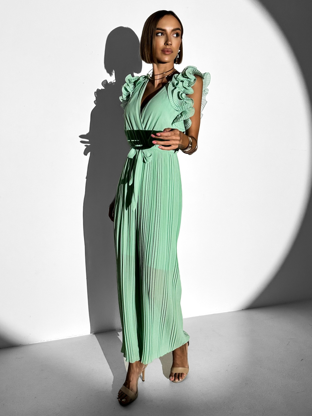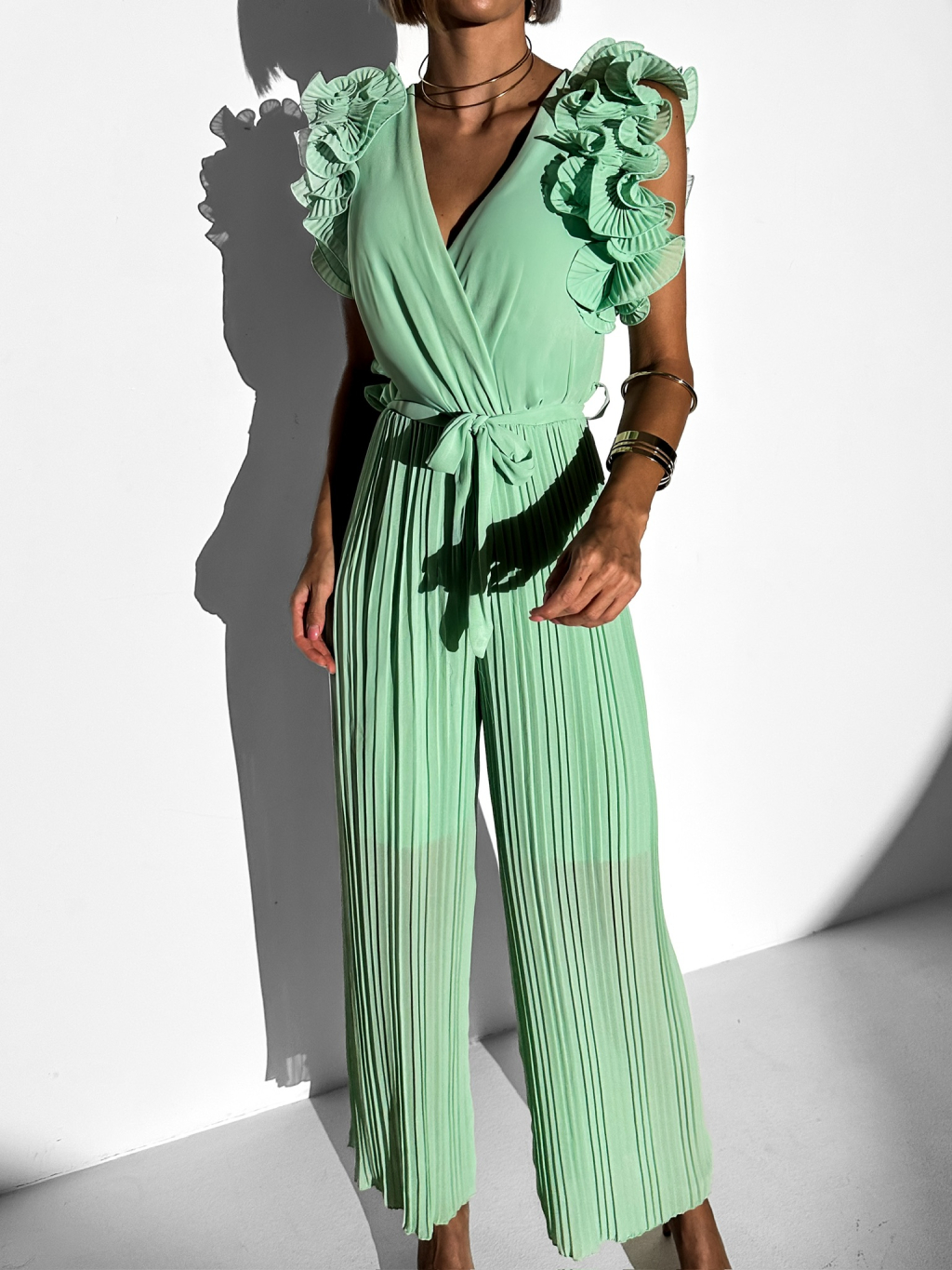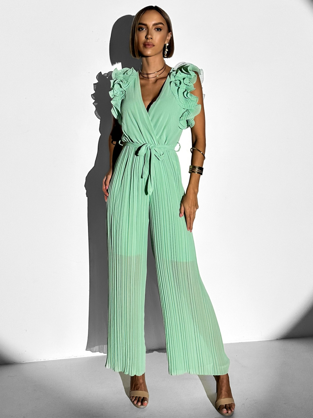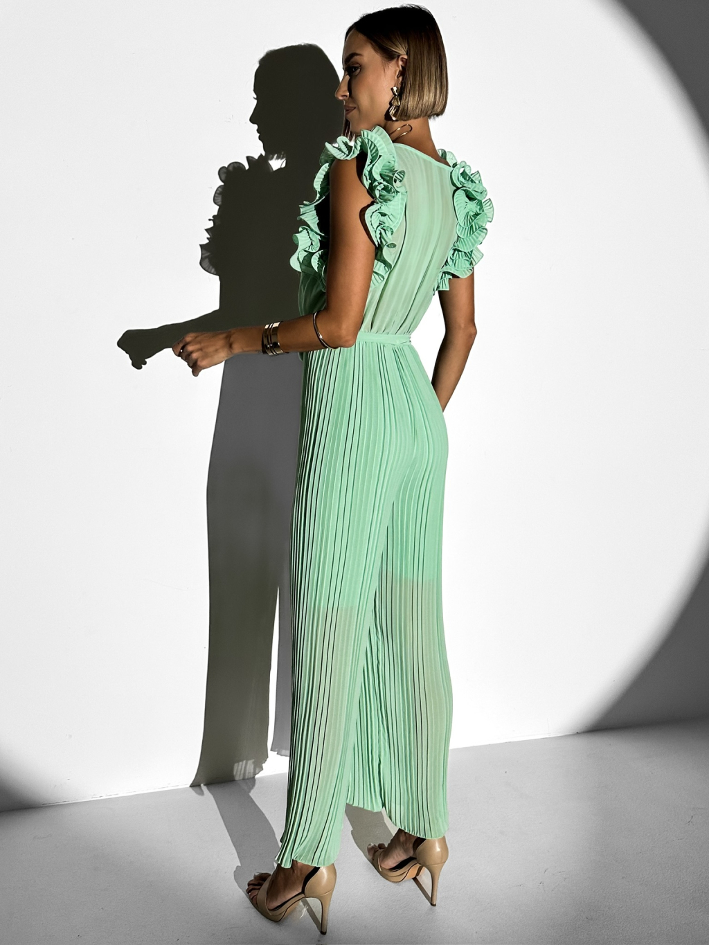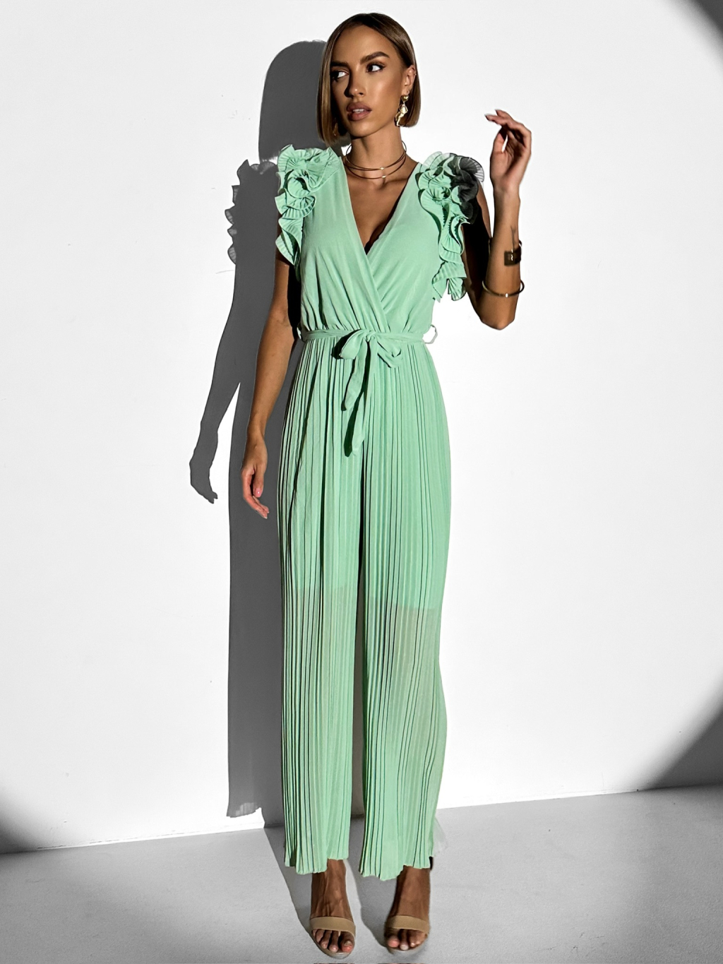 Zelený plisovaný overal TAUTRIS s volánikovými rukávmi