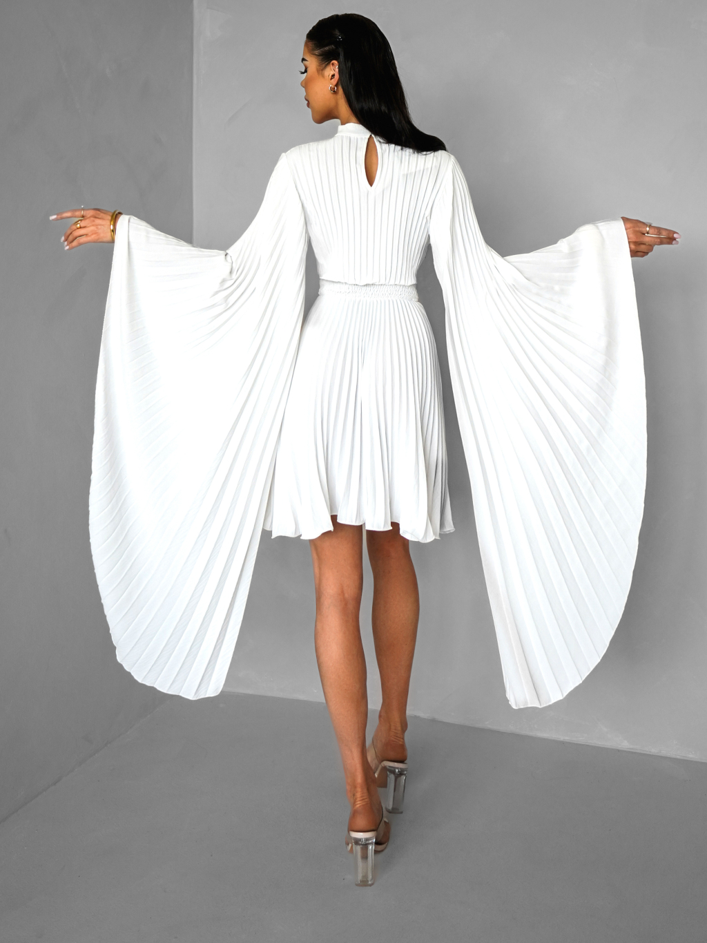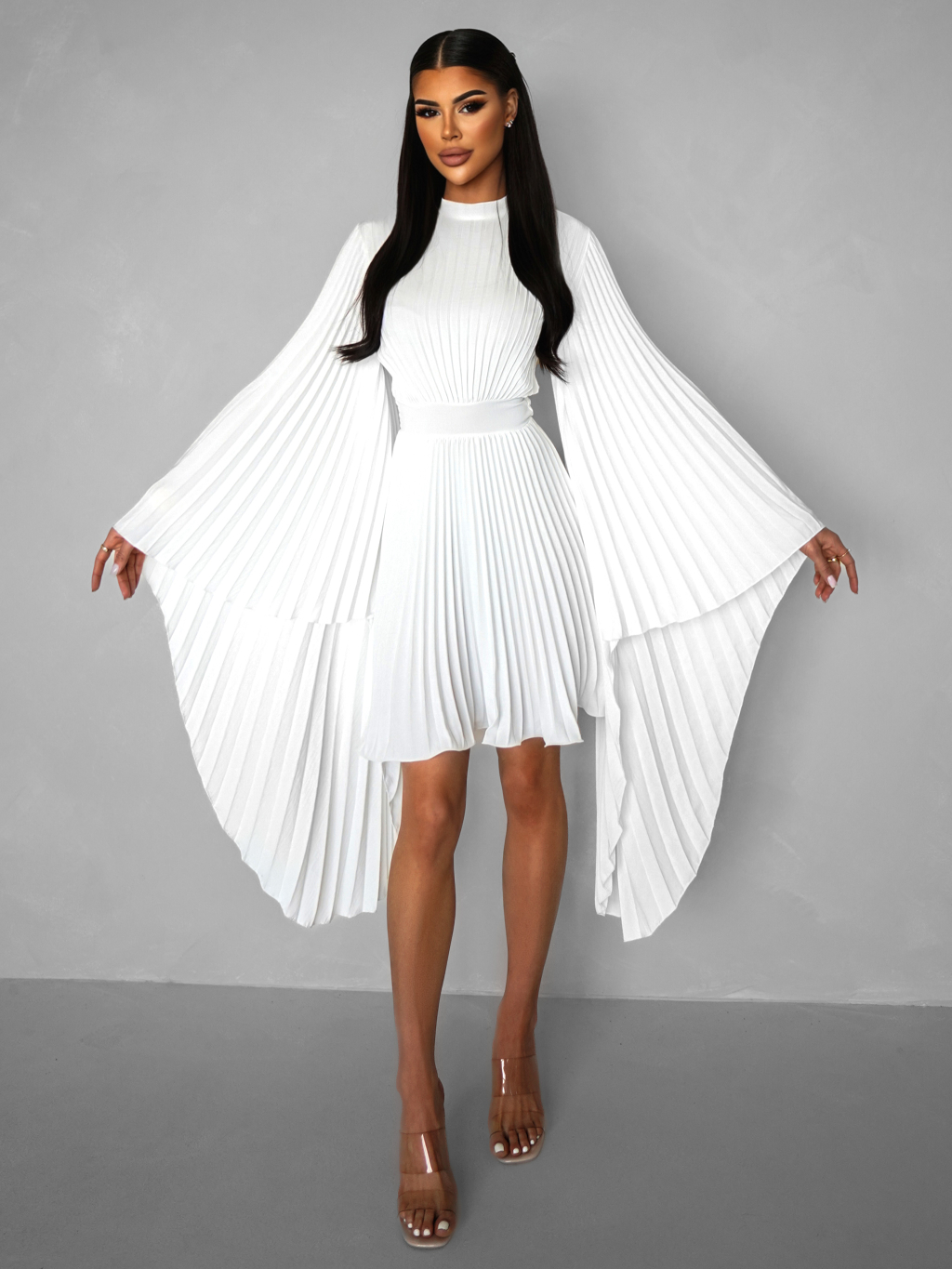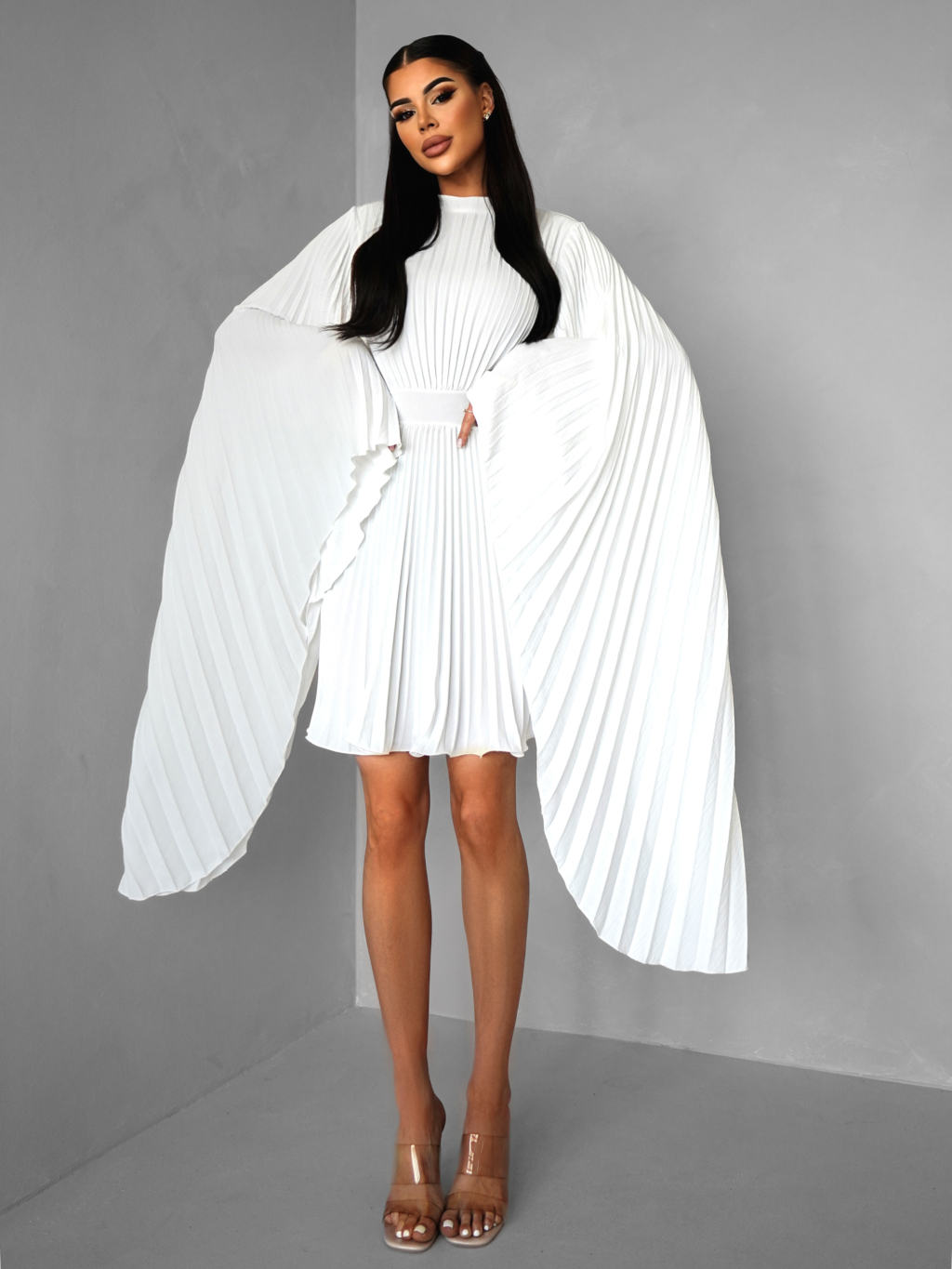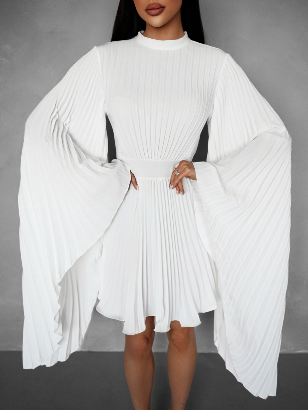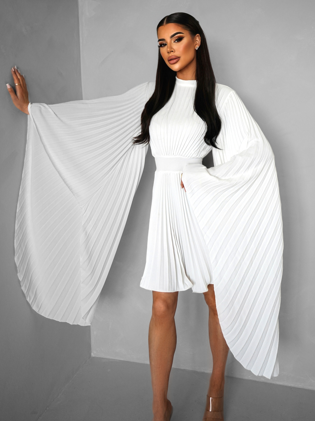 Biele elegantné šaty KRAGERO s dlhým rukávom