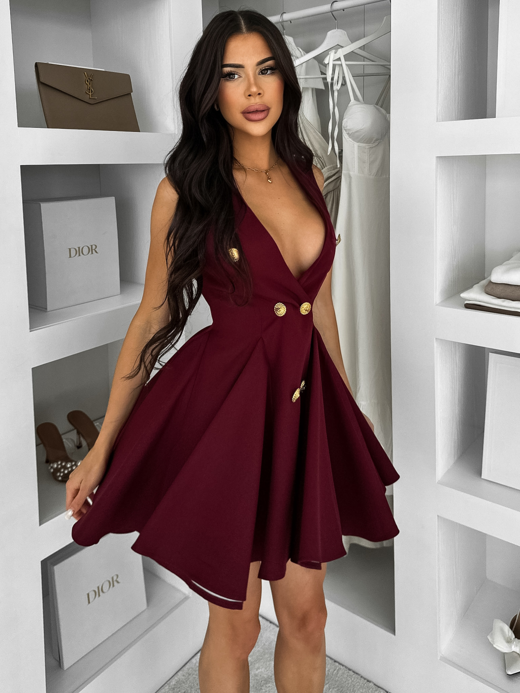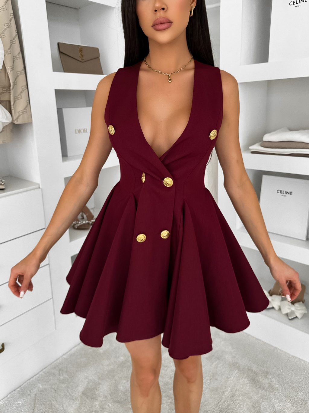 Bordó áčkové krátke šaty ENYALA s gombíkmi
