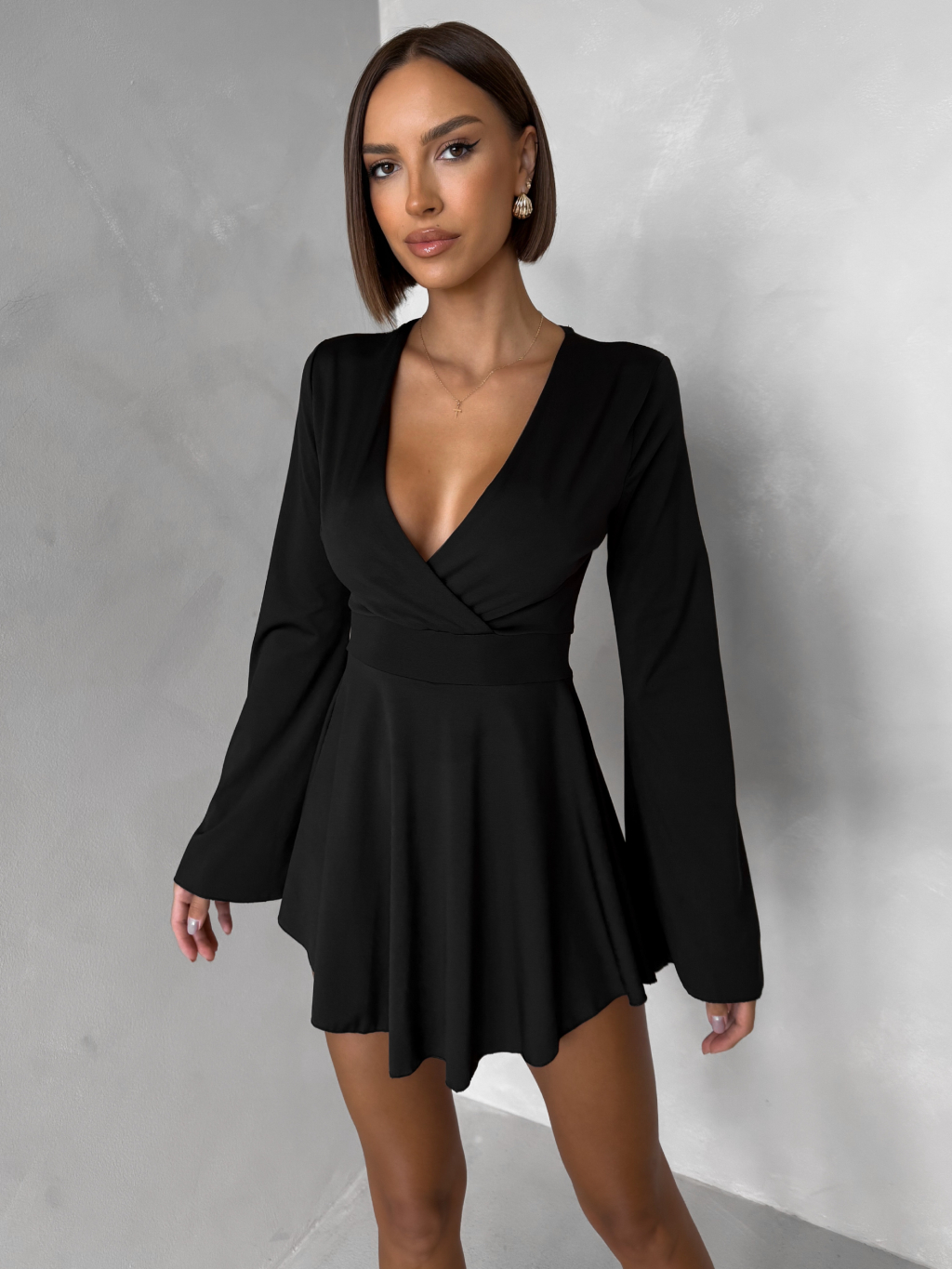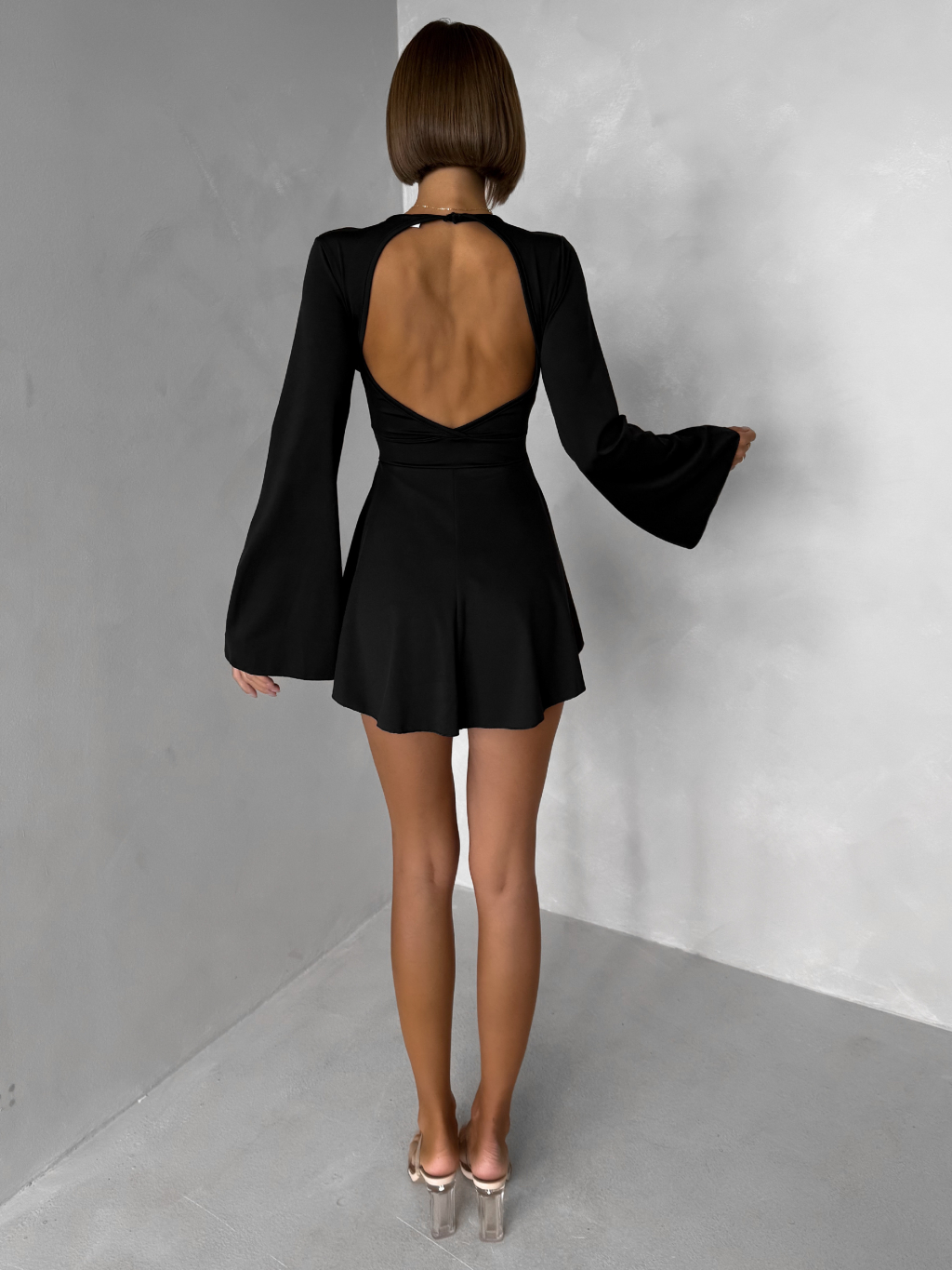 Čierne elegantné mini šaty STREGH s dlhým rukávom