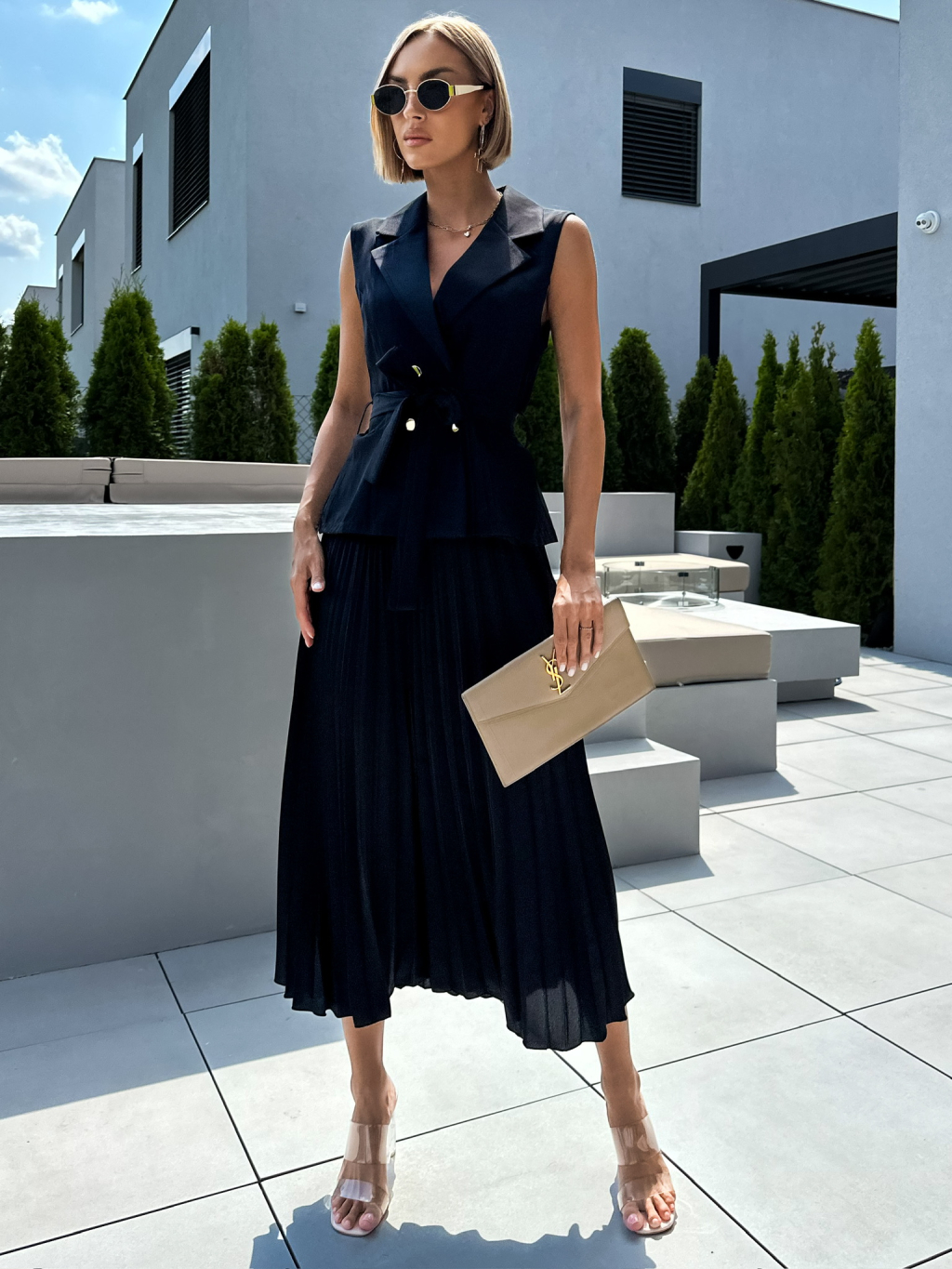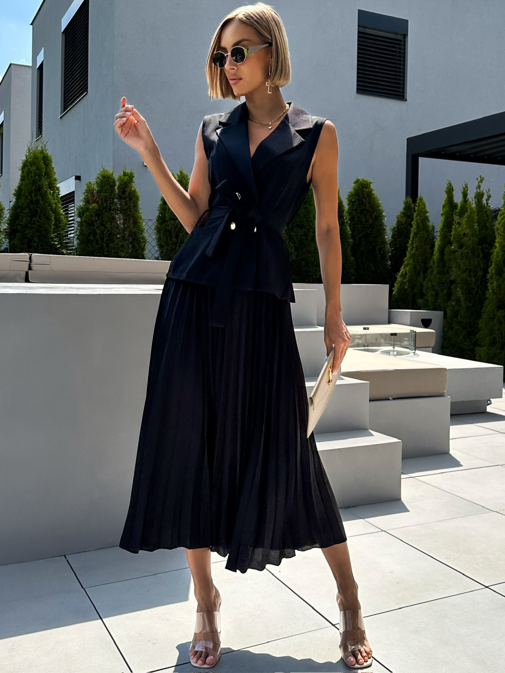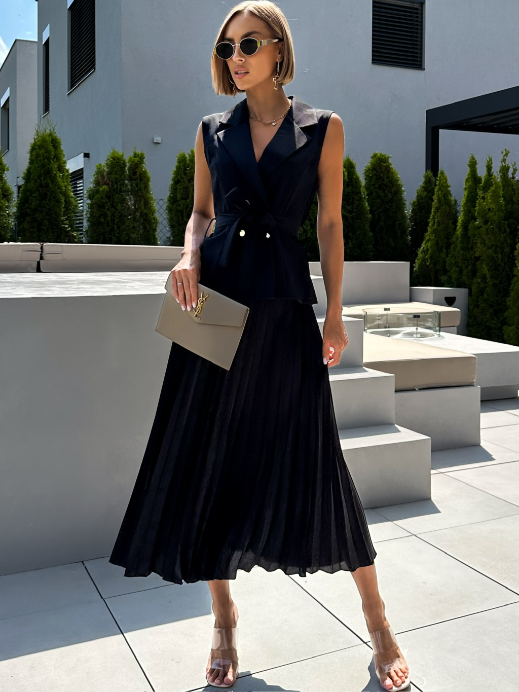 Čierne štýlové šaty SYNGAPOR s plisovanou sukňou